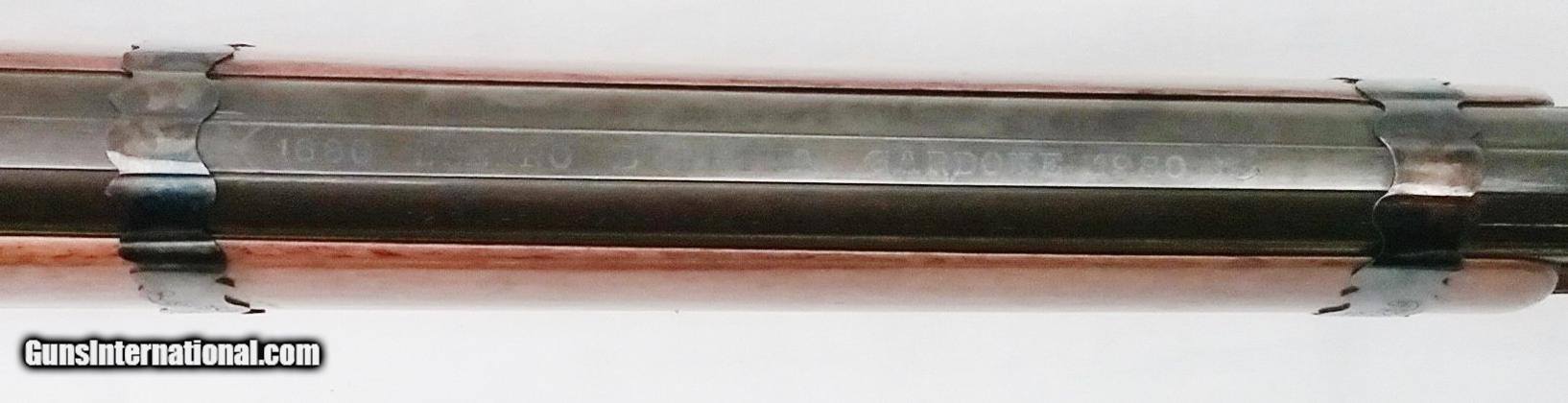 Description: This 12 gauge Over/Under percussion shotgun has 30" browned tapered round cylinder bore barrels that are smooth and shiny. Stamped on the top flat of the barrel is 1680 Pietro Beretta Gardone 1980 commemorating Baretta's 300th Anniversary. The P grade European Walnut stock is mounted with factory engraved color case hardened furniture. The color case hardened back action percussion locks have been very tastefully engraved. Please Note: The wood ramrod has been "candy striped" by the previous owner. Length of pull is 14-1/4", overall length is 46-1/2", weight is 6.8 lbs. Factory wood to metal fit - made by Baretta. Condition: Very Good. Our stock number is P-28-85. Will ship anywhere in the United States. Buyer pays freight and insurance. SOLD Manufacturer: Baretta Model: Double O/U Percussion Bore: Smooth Condition: Very Good Metal Condition: Very Good Wood Condition: Very Good Bore Condition: Very Good Barrels: Two Barrel Type: Tapered Round Action: Percussion Triggers: Double Set Gauge Info: 12Ga Stock: European Walnut LOP: 14-1/4 in Finish: Browned Weight: 6.8 lbs |