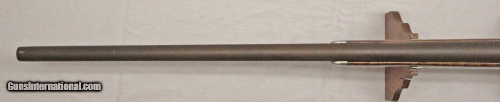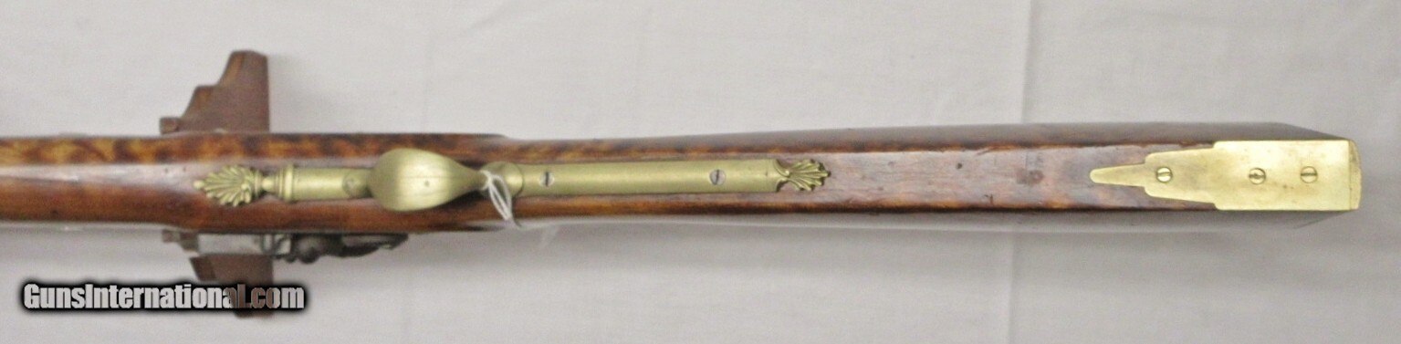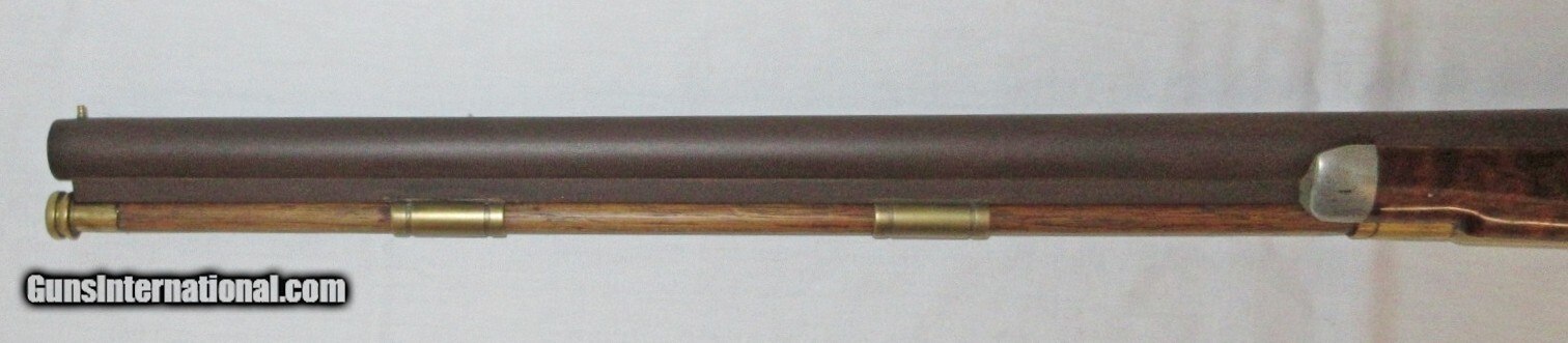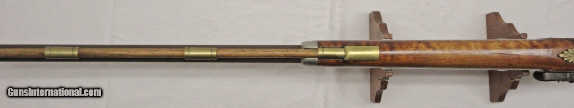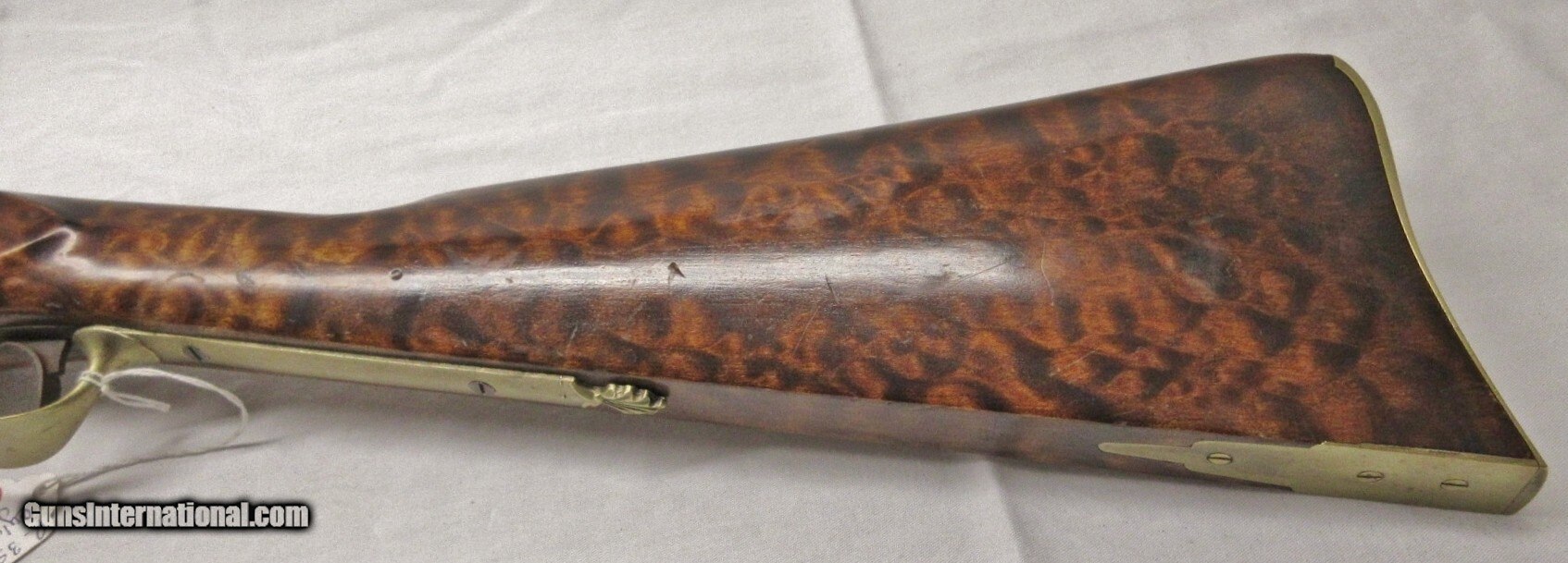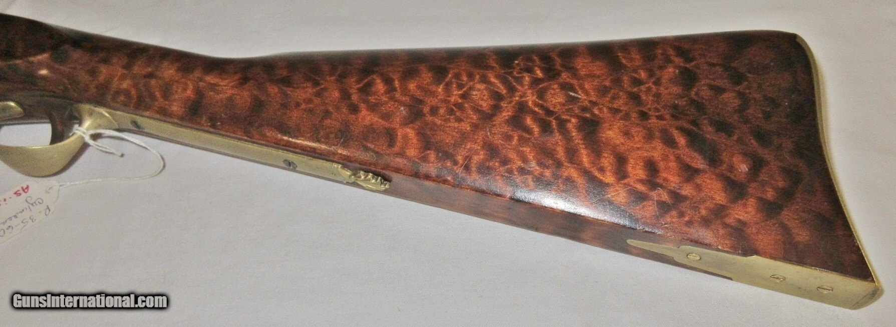 Description: This custom 12 Ga Half Stock Fowler has a browned 30” tapered octagon to tapered round 1” to 1-1/8” to 13/16” smoothbore cylinder bore barrel that is fitted with a brass bead front sight. A plaque on the left flat reads Whisky Flat Rifle Shop. The bore is smooth and shiny. The P++ grade Maple stock is mounted with brass furniture, including a custom side plate and a poured Pewter nose cap. The stock has scattered handling dents but is sound, without cracks or missing wood chips. A browned L&R Manton flint lock is activated by a single trigger. Length of pull is 13-1/4” – Overall Length is 46-1/2” – Weight is 6.2 lbs. Good wood to metal fit – Made by Whisky Flat Rifle Shop – Kernville, CA. Condition: Good. Sold AS-IS Our stock number is P-35-36. Will ship to anywhere in the United States, buyer pays freight and insurance. Shotgun Gauge: 12 Gauge Manufacturer: Whisky Flat Rifle Shop Model: Fowler Barrel Length: 30 Bore Info: Smoothbore Condition: Good Metal Condition: Good Wood Condition: Good Bore Condition: Good Barrels: 1 Barrel Type: Octagon to Round Action: Flint Triggers: Single Stock: Maple LOP: 13-1/4 Finish: Browned Weight: 6.2 lbs Sights: Brass Bead Front Chokes: Cylinder Bore Item Location: Oregon Price: $1,275.00 Buy Now Contact Seller |