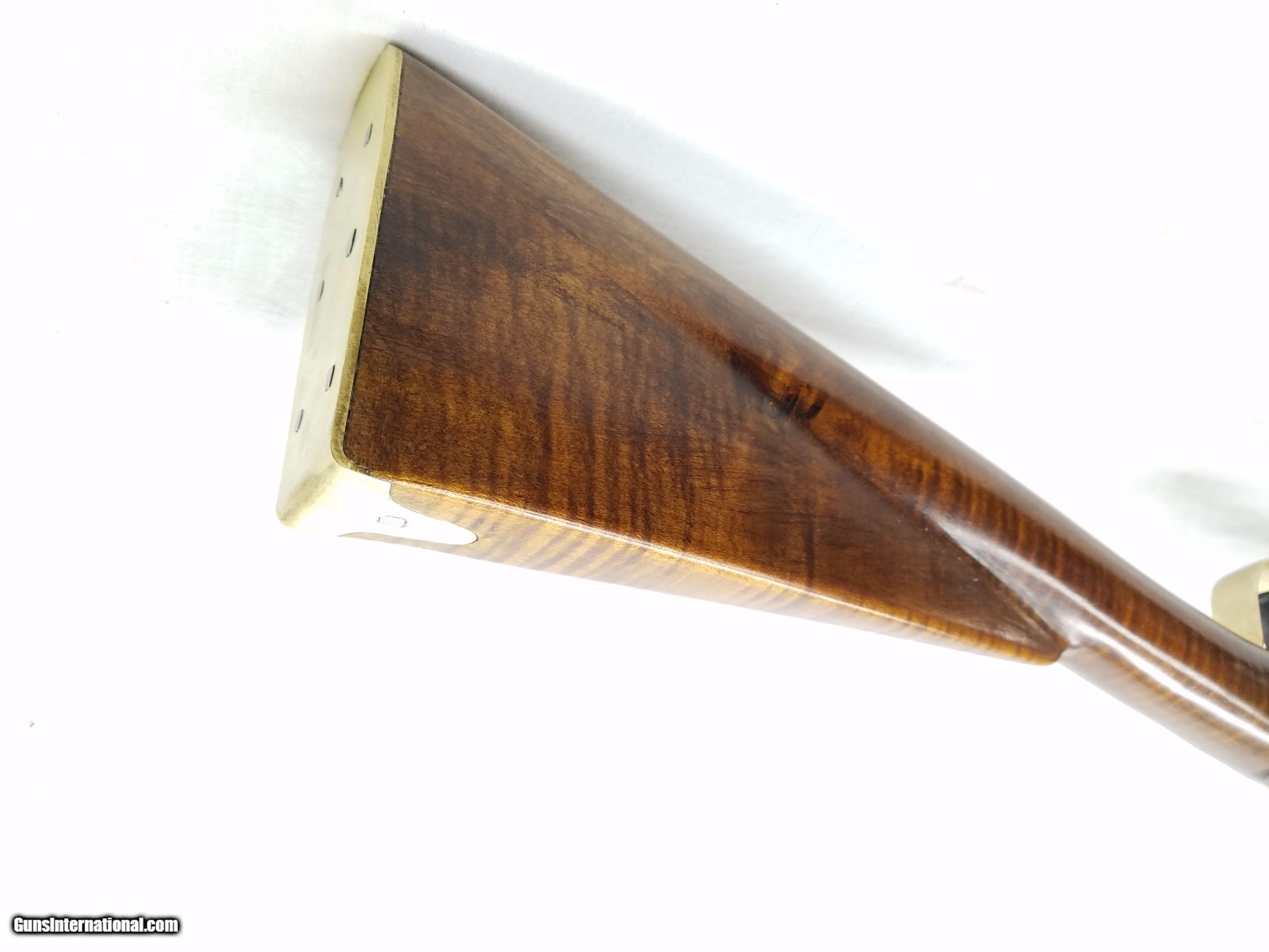 Description: The 20 gauge/62caliber Northwest Trade Gun has a browned tapered octagon to wedding band to 16 flats to round 1" to 13/16" x 36" smooth bore barrel that has a sterling silver pinched heart front sight. The P++ grade Maple stock is mounted with a mix of brass and browned steel furniture. An L&R Trade Gun flintlock is activated by a single trigger. Length of pull is 13-3/4", overall length is 52" and weight is 6.6 lbs. Good wood to metal fit - made by Mark Horvat. Condition: Very good - New - Unfired. Our stock number is #P-27-96. Willing to ship anywhere in the US, buyer pays freight and insurance. SOLD Manufacturer: Mark Horvat Model: Northwest Trade Gun Caliber Info: 20Ga/62Cal Bore: Smooth Bore Condition: Very Good - Unfired Metal Condition: Very Good Wood Condition: Very Good Bore Condition: Very Good Action: Flint Lock Triggers: 1 Gauge Info: 20Ga/62Cal Stock: Maple LOP: 13-3/4 Finish: Browned Weight: 6.6 lbs Sights: Fixed Front |