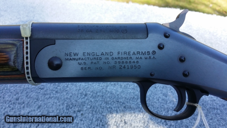 Description: N.E.F. 28ga single shot shotgun. excellent for anyone who doesn't appreciate recoil as much as they used to. 25 1/2" barrel fixed modified choke. laminate stock with genuine immitation gold inlay in buttstock. 14 1/4" length of pull. SOLD |