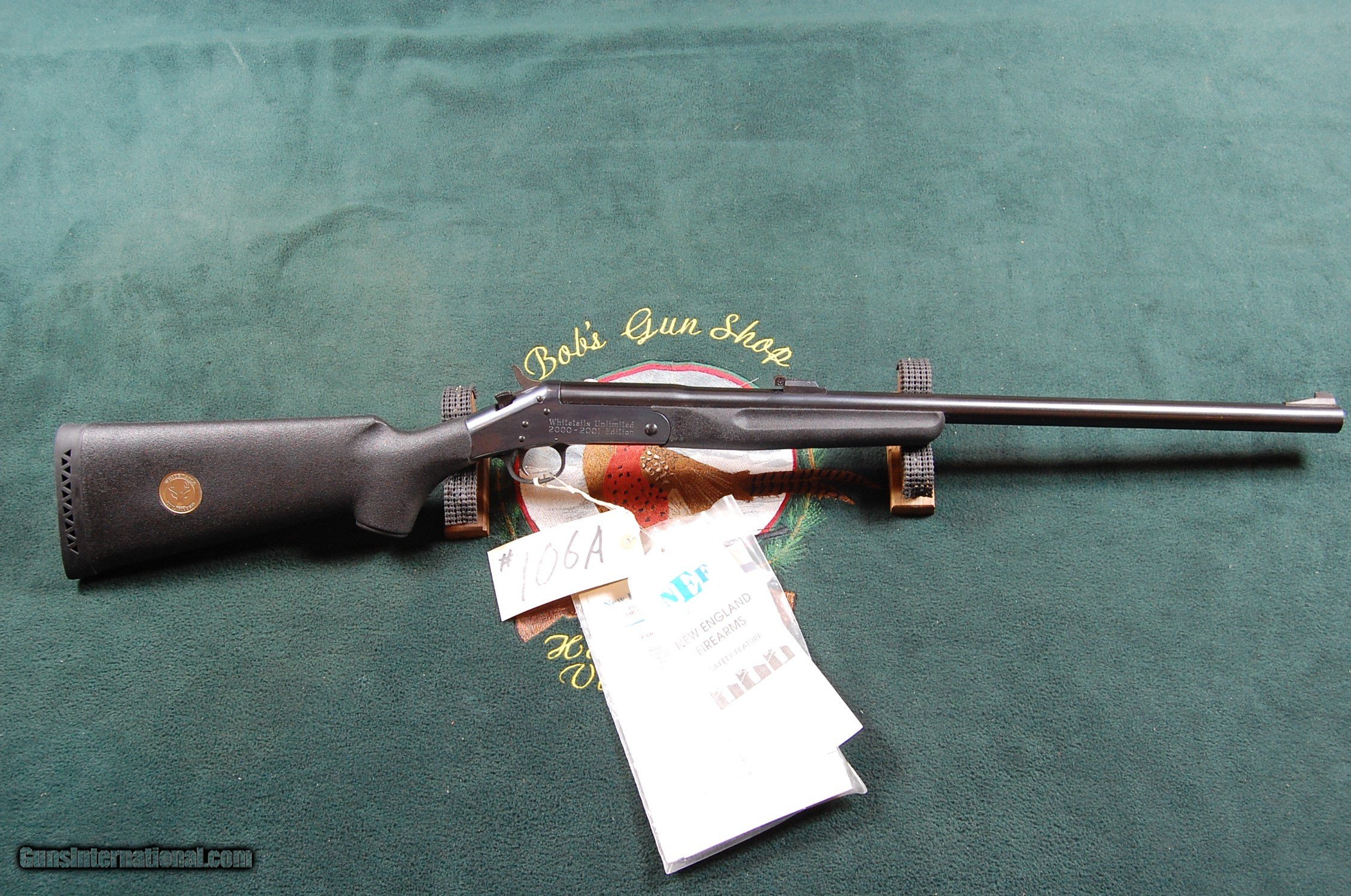 Description: New England Firearms Whitetail Comm. 2000-2001 Single shot 12GA fully rifled. New with hanging tags. SOLD Manufacturer: New England Firearms Model: Whitetail Commemorative Serial Number: NP 377983 Condition: New Metal Condition: New Bore Condition: New |