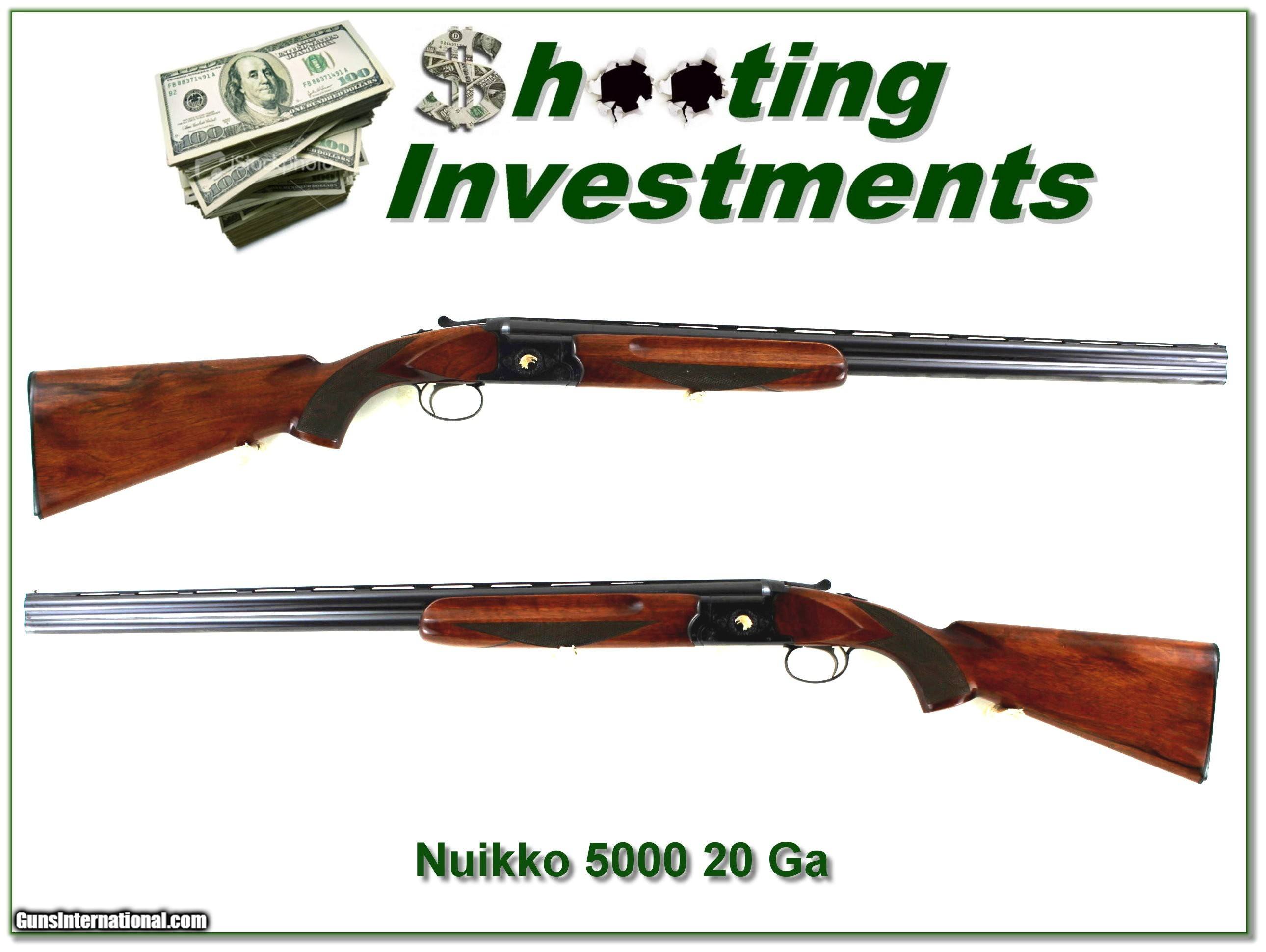 Description: Shooters, hunters and collectors, this is an excellent condition and beautiful Nikko 5000 20 Gauge. Nikko made many guns from Winchester to Weatherby to Browning. This one is much like a Winchester 101 or Browning Citori. It has beautiful wood and a hand engraved receiver with gold birds. It has 26in barrels choked IC and Mod and ejectors. It will make a classic field gun with top quality workmanship! It is a Shooting Investment. I am selling this one on consignment and as such lay-a-way can’t be used. It does of course have the standard 3-day inspection. Shipping and insurance is $49. Please email me with any questions or larger pictures. (Consign your quality firearms with Shooting Investments for only 12%! Let me know if you have any you would like to sell!) 23-0998 Payment: Payment is by Money Order, Cashier’s Check or Personal Check. I can now also accept Credit Cards (MasterCard, Visa, Discover & American Express) with a 3% convenience fee. Shipping: The shipping charge will be listed in each description. It is $49 for most firearms. Some heavy guns or those insured for over $2000 will be higher. Shipments to Alaska and Hawaii are higher because air shipment is required. Most firearms are shipped on Tuesday and Thursday and usually in 5 days of receipt of payment. We package all shipments carefully and insure them. Optics are shipped Priority Mail and most other non-firearm shipments are shipped First Class. Returns: Our return policy is simple. If for any reason you are not pleased with your purchase, you may return your item for a full refund of purchase price. Ammunition cannot be returned. It is important to us that you are happy. Guns cannot be fired or dissembled before returning them and they must be returned in the same condition as received. Notification of a return must occur within 3 days of receipt at your dealer. Shipping, convenience and dealer fees are not refundable and are the responsibility of the buyer. Lay-a-way: If needed, we offer a 60 day lay-a-way option on most firearms. It is 1/3 now, 1/3 in 30 days and 1/3 in 60 days. Lay-a-way firearm sales are final and cannot be returned. If a lay-a-way is not completed the first payment cannot be refunded. Consigning your firearms with Shooting Investments: We will help you get top dollar for your firearms. While most local guns shops charge 20% or more, our fee is only 12% with a minimum of $75. At your local gun shop it might take months to sell. Selling on-line provides instant access to thousands of interested buyers. You won’t find any other on-line dealer willing to sell your firearms for only 12% or listing every gun on 3 separate s. Selling through an House typically costs the seller 15% and the buyer an addition 15% (so 30%) and you have to wait several months to sell and longer to receive funds. If properly priced, we will sell your firearms within a few weeks. Send us an email or give us a call and we’ll explain how easy it is for you to get top dollar. Trading: Trading for us is really just buying your gun to re-sell. If you have a gun you want to trade, please email a picture and we will let you know what we can give for it. You will always get more if we sell it for you on consignment. SOLD |