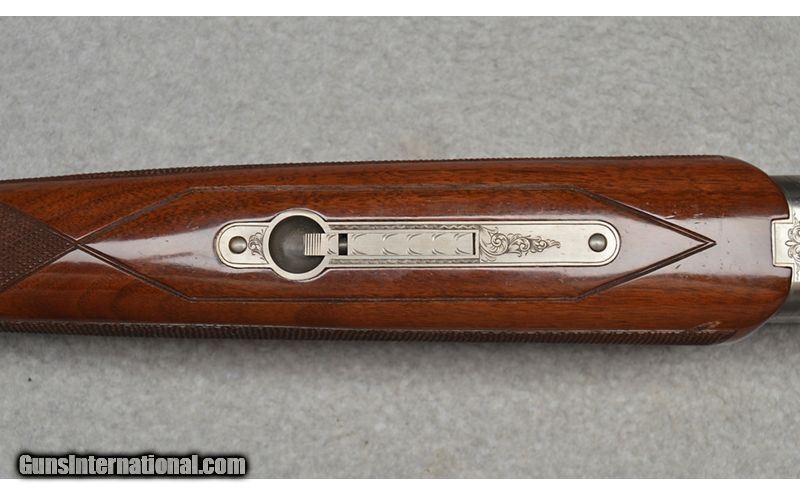 Description: Manufactured in the early 1970's. Vent rib barrels with fixed chokes, 2 3/4" chambers and ejectors. Scroll engraving on the action, single select trigger, checkered walnut forearm and pistol grip stock with a Pachmayr White Line recoil pad. Only minor signs of handling. SN: K461339 12 Gauge SOLD Chambers: 2 3/4 Metal Condition: Excellent Wood Condition: Excellent Bore Condition: Clean Barrels: 28' Triggers: Single Select Stock Dimensions: 14 1/4" LOP Butt Pad: Rubber Recoil Weight: 7 lb 9 oz Sights: Two Bead Chokes: "MOD, CYL Item Location: Fort Worth, TX |