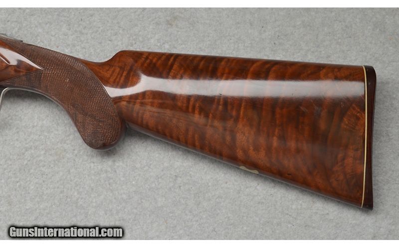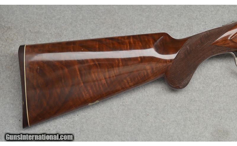 Description: Nikko 812 over/under shotgun chambered for 12 gauge is in very good condition. This shotgun has 27" blued barrels, choked for Improved Cylinder (U) and Modified (O). The barrel is ribbed with a mid and front bead sight, the receiver has beautiful floral engraving all over. The barrel and stock have small handling marks. SN: K421466 12 Gauge SOLD Chambers: 2 3/4 Metal Condition: Excellent condition with handling marks Wood Condition: Very good condition with handling marks Bore Condition: Clean and shiny Barrels: 27 Triggers: Single Stock Dimensions: LOP 13 3/4 Fore End: Wooden with a checkered pattern Butt Pad: Checkered butt plate Weight: 7 LB 5 OZ Sights: Dual sights Chokes: "Modified, Improved Cylinder Item Location: Fort Worth, TX |