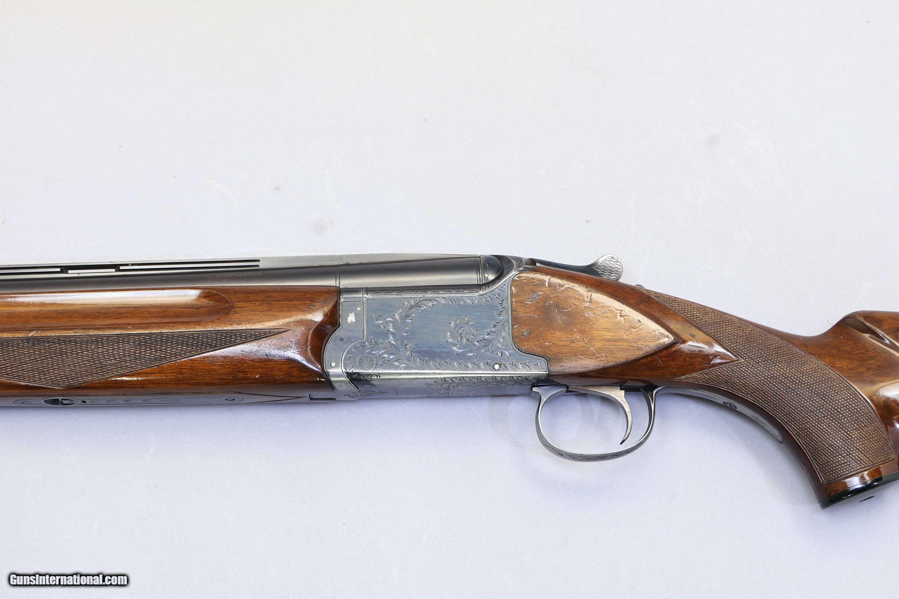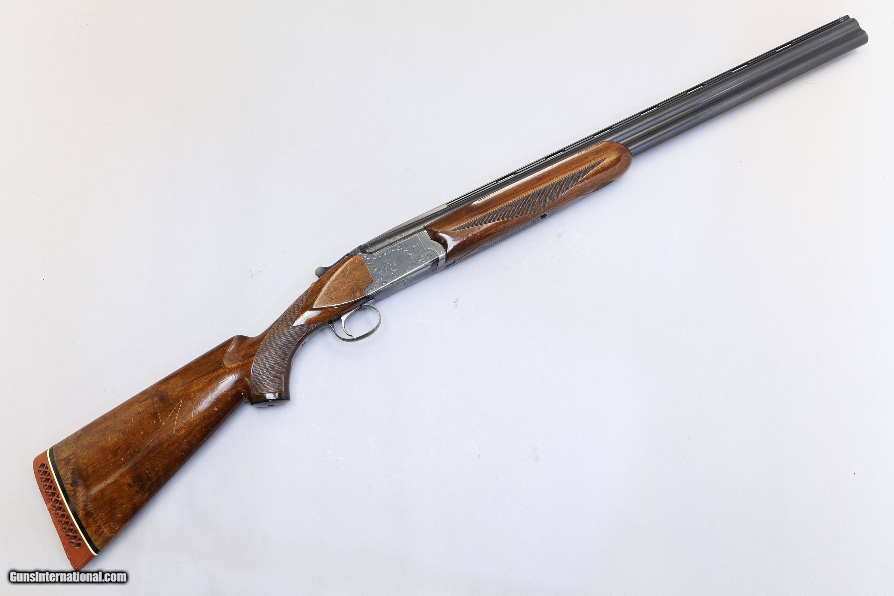Description: Nikko Shadow Over/Under Ejector, 12 Ga, 27 1/2" Barrels Nikko Shadow Over/Under in 12 Ga, a field-ready shotgun known for dependable build, smooth cycling, and lively balance. It combines a strong action with a single trigger, a positive manual safety with in-safety barrel selector, and crisp ejectors to support fast follow-up shots and versatile performance for clays or upland birds. Overall condition is fair to good. Some varnish rubbed away on the left-hand side of the stock with a few insignificant handling marks. Bluing on the receiver has worn a little on the underside but remains good on the sides. Barrels are in almost pristine condition. Silver bead sight. Smooth break action and ejectors firing well. Dating to 1972 in Japan, this example has 27 1/2" barrels with 2 3/4" chambers and fixed chokes (Bottom: IC; Upper: Mod). It wears a parallel ventilated rib measuring 8 mm and smoothbore tubes. The wood pistol-grip stock is cast Right with LOP 14 1/2", LOP to wood 13 1/2", DAC 1 1/2", and DAH 2 1/2". Overall length is 45", and weight is 7 3/5 lbs.