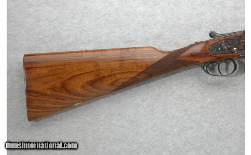 Description: Case colored receiver and bottom tang are beautifully engraved with border and scroll. SOLD Caliber Info: 12 GA Chambers: 3 inch Metal Condition: Excellent but does have some minor handling marks. Wood Condition: Excellent but does have some minor handling marks. Bore Condition: Very clean, bright and shiny. Barrels: 26 inches with a solid rib. Triggers: Double Stock: Checkered walnut straight stock. Stock Dimensions: LOP 14 1/2 inches. Fore End: Checkered walnut Splinter. Butt Pad: Cross checkered solid wood. Weight: 6 lbs. 10 oz. Sights: Brass front bead. Chokes: Fixed Imp. Cyl. and Mod. Item Location: Noblesville, IN |