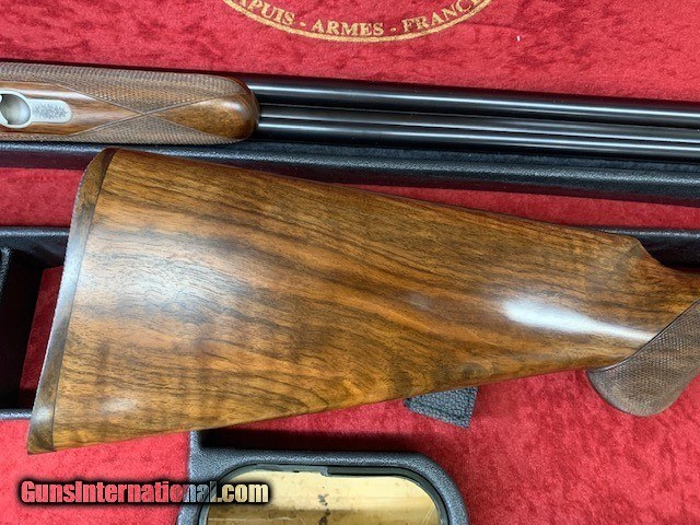 Description: Chapuis Orvis Classic 28 gauge 28" Excellent 28 gauge Chapuis Orvis Classic. This gun has seen very little use at all, maybe a round of clays. There are some handling marks and a small bump on the forearm was raised and had the checkering chased and finish touched up. Otherwise, pristine. Knockout piece of wood just makes it better. Not making any more of these, so get this one! THIS GUN IS LOCATED AT ORVIS PURSELL FARMS IN ALABAMA. CALL CHUCK BAKER FOR ADDITIONAL INFORMATION. 256-245-3165. SOLD Shotgun Gauge: 28 Gauge Manufacturer: Chapuis Armes Model: Orvis Classic Serial Number: 65068 Barrel Length: 28 Chambers: 2 3/4 Ejectors: Yes Condition: Excellent Metal Condition: Excellent Wood Condition: Very Good to Excellent Bore Condition: Excellent Triggers: Single Non-Selective Stock Dimensions: 1 1/4" 2 3/8" 15 Stock Cast: 1/8" off Butt Pad: Factory Original Wooden Weight: 5 3/4 lbs Sights: Front bead Chokes: Full Set Factory Case: Factory Hard case Item Location: Alabama |