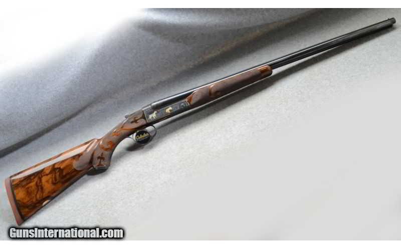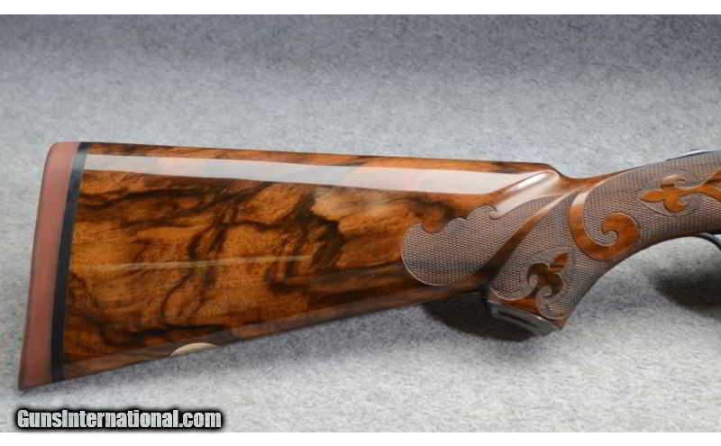 Description: This CSM Grand American has many Factory Upgrades. This is 2 of a 2 gun 28 and 20 gauge set. This outstanding shotgun is built on a true 20 gauge flat side frame and has 6 multicolor Gold, Silver and Platinum inlayed animals (4 dogs and 2 birds). The remainder of the frame has very nice scroll engraving and gold line work. The grip cap and forearm iron have gold line work and pleasant looking engraving. The engraving was done by Jere Davidson to the finest detail. The hand selected best Turkish walnut is as good as you can find. The checkering is a very nice Fleur-de-lis pattern and the butt is a red Winchester rubber butt pad. The barrels are also engraved for the first 3 inches and at the muzzle. If you want one of the finest sets CSM has ever made this is it. $100.00 shipping charge due to insurance costs. SOLD Caliber Info: 20 Gauge Chambers: 2-3/4 inch Metal Condition: LNIB Wood Condition: LNIB Bore Condition: LNIB Barrels: 28 Inch Triggers: Single selectable gold trigger Stock: Best quality Turkish walnut with best quality checkering Stock Dimensions: LOP: 14-1/4 inch DAC: 1.35 inch DAH: 1.95 inch Fore End: Matching beavertail Butt Pad: Red rubber Winchester pad Weight: 7 lb. - 2 oz. Sights: Ventilated rib with white and gold beads. Chokes: Interchangeable screw-in chokes Extras: Leather and oak case, chokes, wrench, oiler bottles, cleaning rod. Item Location: Fort Worth, TX |