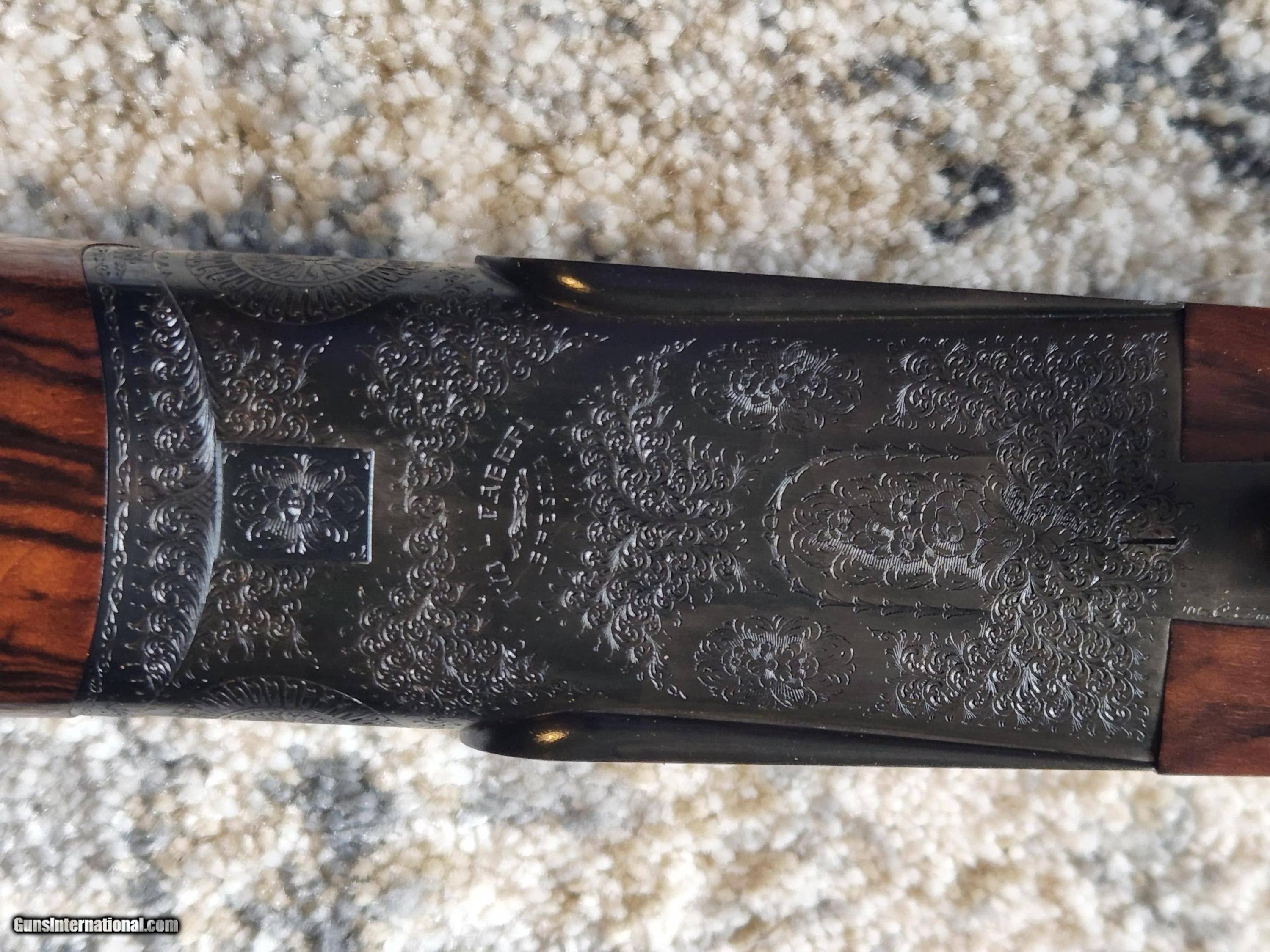 Description: Case colored Ivo Fabbri matched consecutive pair of 12 ga. shotguns. 28 inch Vacuum Arc Remelting (VAR) barrels with ventilated step ribs. Gun #1 is upgraded with teague chokes, Gun #2 is fixed choked at .700 top and .710 Bottom. Rose & Scroll engravings by Iora, Stocks by Paul Hillmer with ISIS recoil systems and R/H palm swells. Shipped in Leather, 2 gun case. Also includes soft combs for the stocks and 15 Teague chokes . Excellent condition as pictured. Serial numbers 3460 and 3461 Best Offer. DAC 1 5/8" DAH 1 5/8" LOP 14 3/8" Cast off 3/8 SOLD Shotgun Gauge: 12 Gauge Manufacturer: Fabbri |