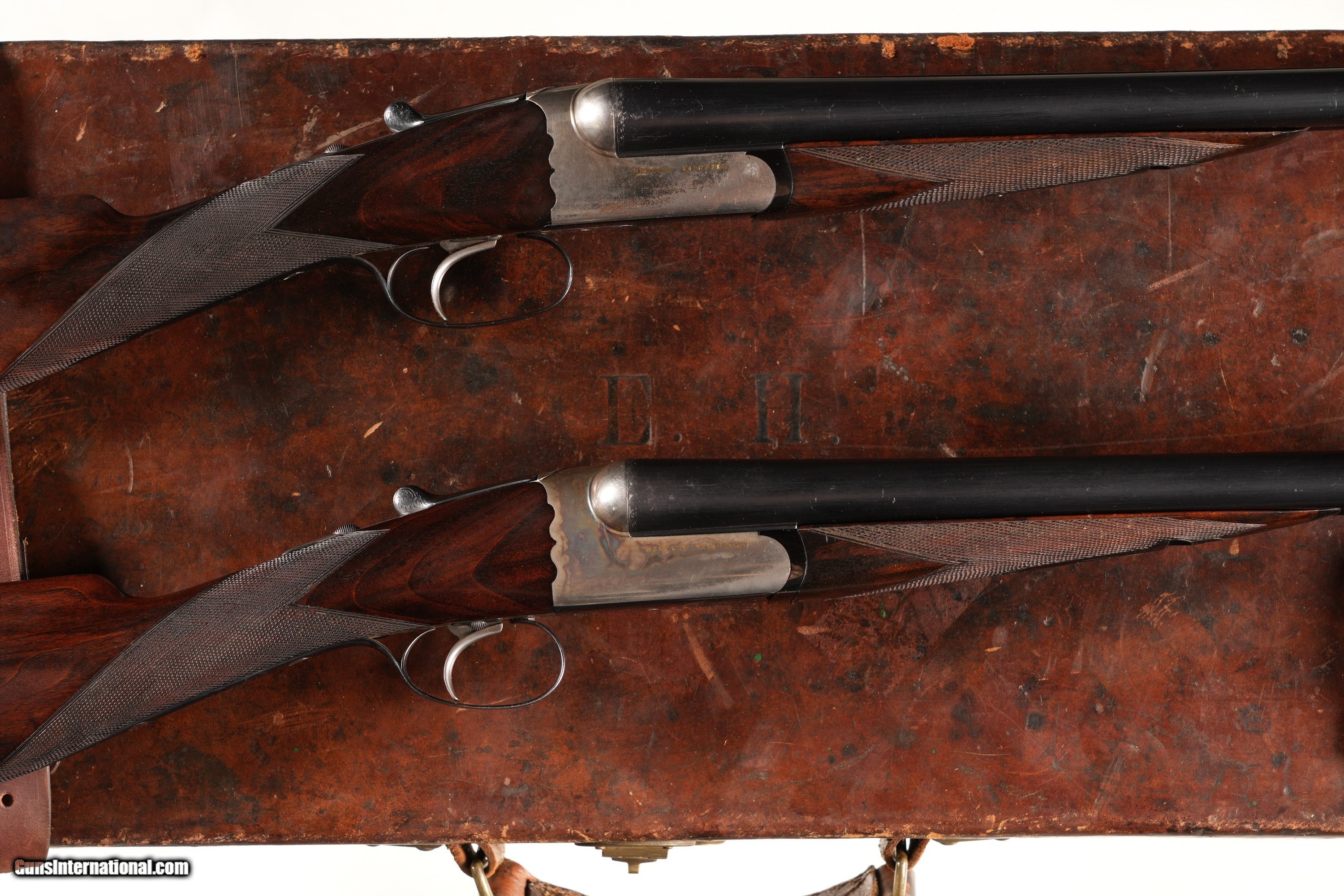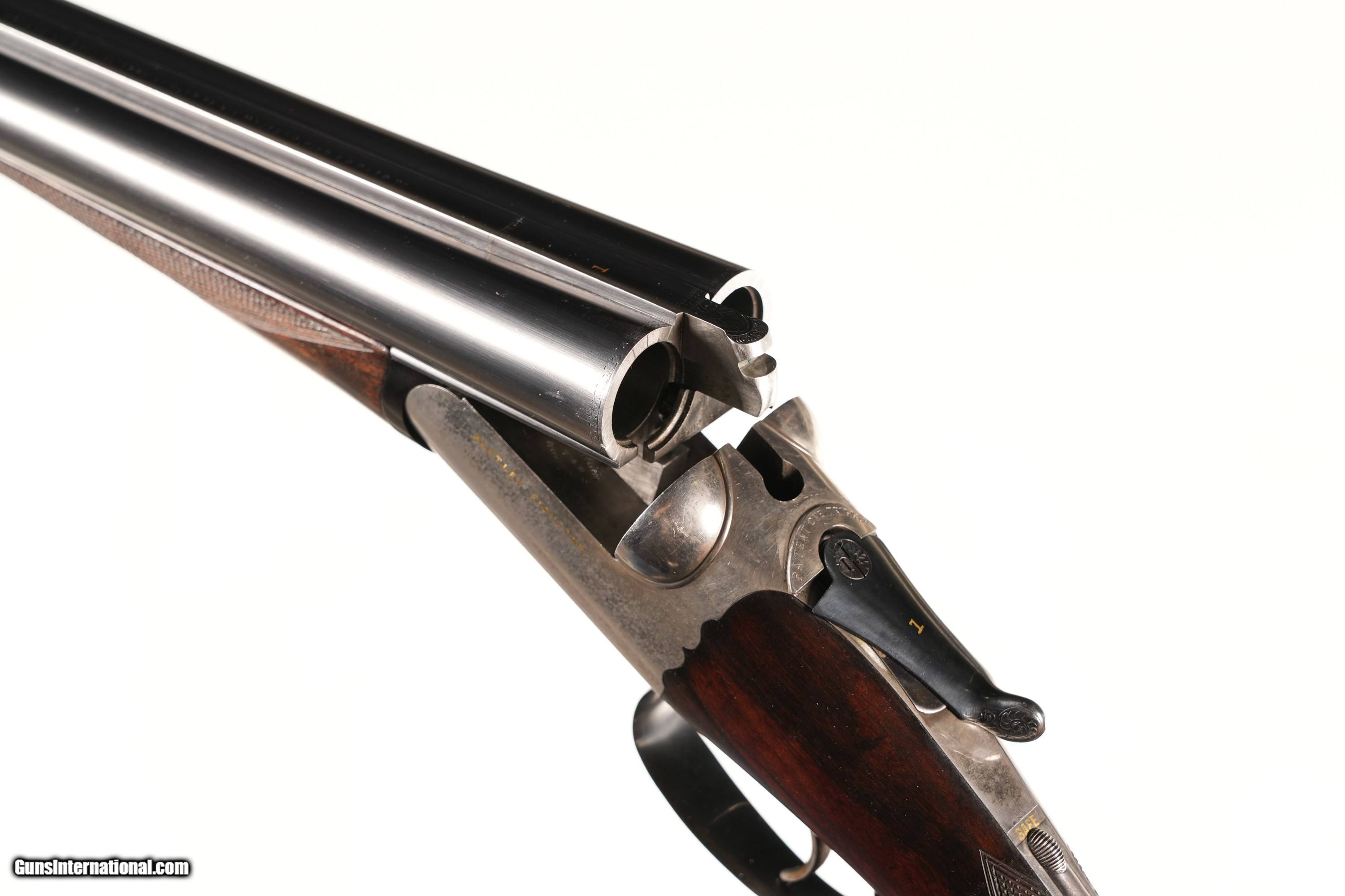 Description: Pair of Consecutively Serialized Westley Richard Detachable Lock Boxlock Ejectors Shotguns 12 GA Shotgun 1) 12 GA Serial # 8911 Westley Richards Gold Name Detachable Lock Box Lock Ejector 12 ga with 30" Bbl 2 1/2" chamber Choked Mod & IC with single selective "Patent One" trigger and ejectors. Toplever , Breech and forearm iron marked "1" in gold. 14" LOP 1 1/2" DAC 2" DAH Cast off 5mm 5 lbs 15 oz. Barrel thickness RT: .025 LT:.023. Condition, Extremely fine as refreshed with brilliant bore and finishes. Crisp legends and checkering. Detachable locks retain all their engine turned polish. Mechanically excellent Barrel 30 C&R Shotgun 2) 12 GA Serial # 9248 Westley Richards Gold Name Detachable Lock Box Lock Ejector 12 ga with 30" Bbl 2 1/2" chamber Choked Mod & IC with single selective "Patent One" trigger and ejectors. Toplever , Breech and forearm iron marked "2" in gold. 14" LOP 1 1/2" DAC 2" DAH Cast off 5mm 5 lbs 15 oz. Barrel thickness RT: .024 LT:.026. Condition, Extremely fine as refreshed with brilliant bore and finishes. Crisp legends and checkering. Detachable locks retain all their engine turned polish. Mechanically excellent Barrel 30 C&R • Free Shipping, No Credit Card Fees. • Lay-a-way available for this firearm. • 1/3 Down, a 1/3 in 30 Days 1/3 in 60 Days. SOLD Curio/Relic: Yes Manufacturer: Westley Richards Model: Boxlock Serial Number: 48300/48301 Barrel Length: 30 |