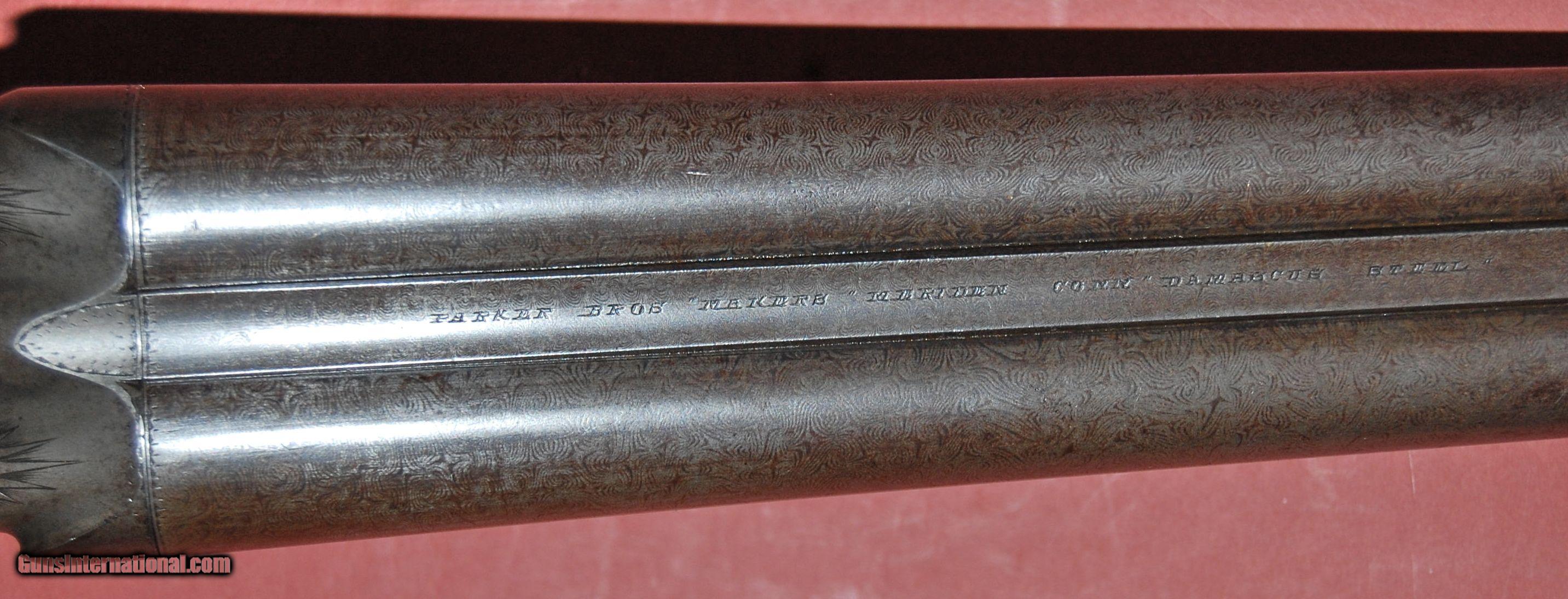 Description: Parker Bros.12 gauge grade 2 lifter action hammer gun built in 1878.This gun is in outstanding all original condition.It retains 60% of the original case colors,80% of the damascus pattern,and 90% of the original wood finish.The barrels are 30" damascus steel choked mod and full with bright bores free of rust,dents,or pits.The minimum wall thickness is .040" so this gun is safe to shoot with reasonable loads.The wood is sound with no cracks or damage.The barrels are on face and lock up tightly with no play.This gun is in remarkable condition for a 140 year old gun.Classified as an antique so it can legally be shipped direct.A true piece of sporting history that you can still use. SOLD Antique: Yes Manufacturer: Parker Model: Lifter Hammer Serial Number: 12024 Chambers: 25/8 Metal Condition: excellent Wood Condition: excellent Bore Condition: excellent Barrel Type: damascus steel Action: double barrel Triggers: Double Gauge Info: 12ga Manufacture Date: 1878 Choke Left: full Choke Right: modified |