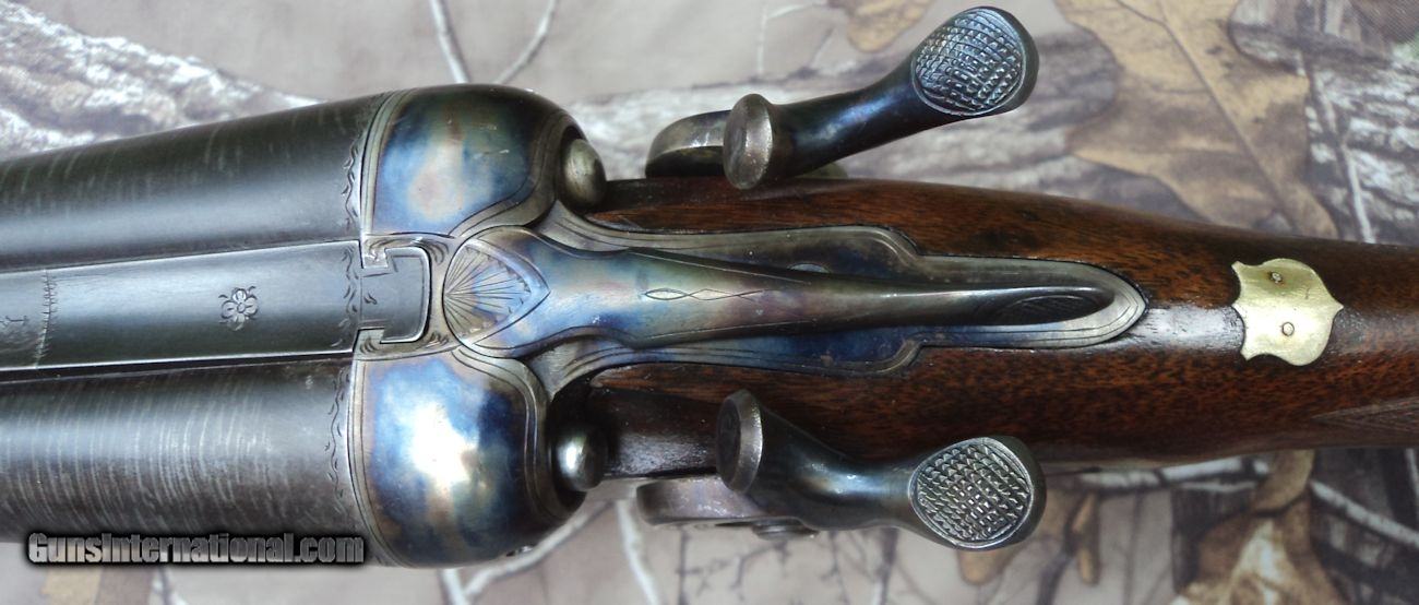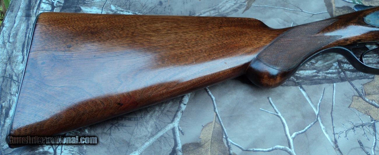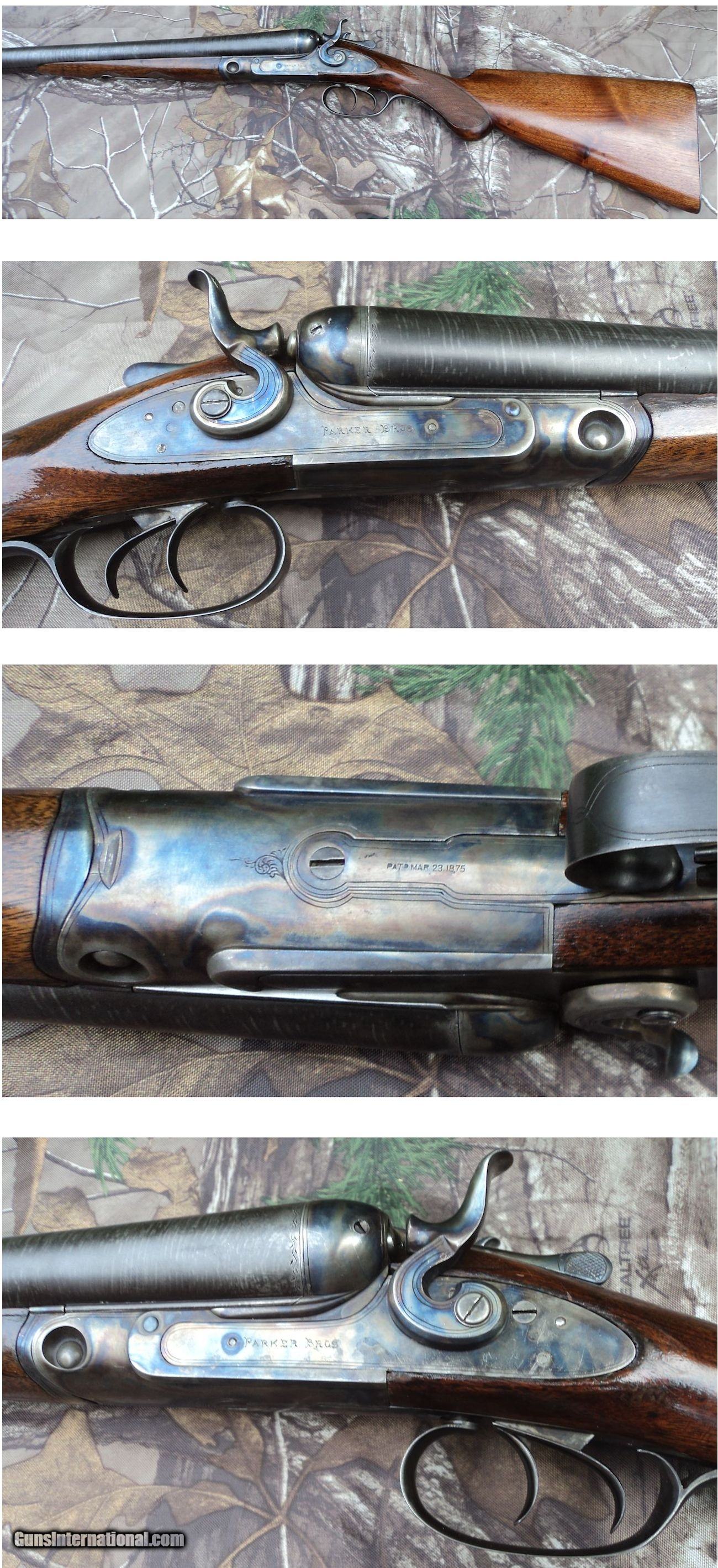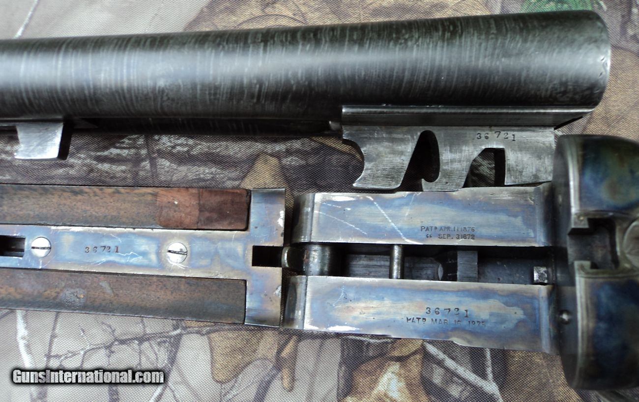 Description: *** SOLD *** SOLD *** Beautifully restored 1883 Parker hammer shotgun (serial # 36721) with 30" flawless twist steel barrels with no dents or dings on the barrels or top rib, shiny bores, choked improved cylinder right barrel & left barrel choked skeet. The wood has been refreshed with hand rubbed stock oil finish and the checkering recut. The line engravings on the receiver, side plates, and hammers, as well as the vine pattern on the barrels and flower in the top rib, have been refreshed as well. The color case hardening is brilliant, as redone by Turnbull. Barrels have 2 5/8" chambers and all parts have matching serial numbers. LOP is 14 1/4", DAH is 3" and DAC is 2". and it weighs in at 7 lb 14 oz. What a great 135 year old Parker to take afield this fall with your favorite RST low pressure shotshells. $50 S&H to most of the lower 48. Eight far west states at $60 S&H. Post office money orders for payment. Consignment gun-no return. No FFL required, I will ship this antique shotgun directly to you. SOLD Antique: Yes Manufacturer: Parker Brothers Model: hammer gun Serial Number: 36721 Chambers: 2 5/8 Ejectors: no Metal Condition: very good Wood Condition: very good Bore Condition: very good Barrel Type: twist steel SxS Triggers: double Gauge Info: 12 Stock Comb: 2 Stock Heel: 3 LOP: 14 1/4 Weight: 7 lb 14 oz Sights: single bead Manufacture Date: 1883 Choke Left: skeet Choke Right: I.C. |