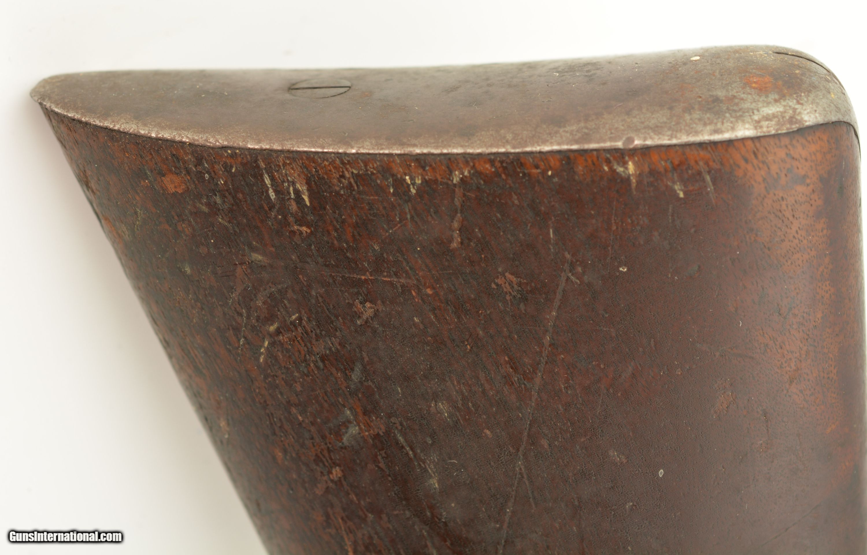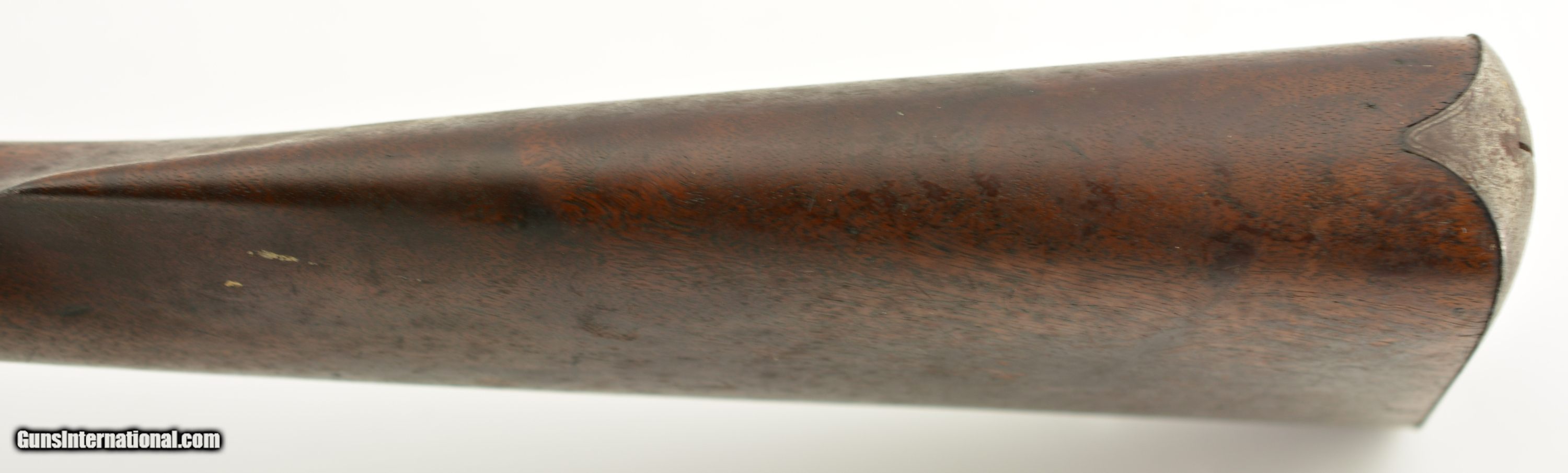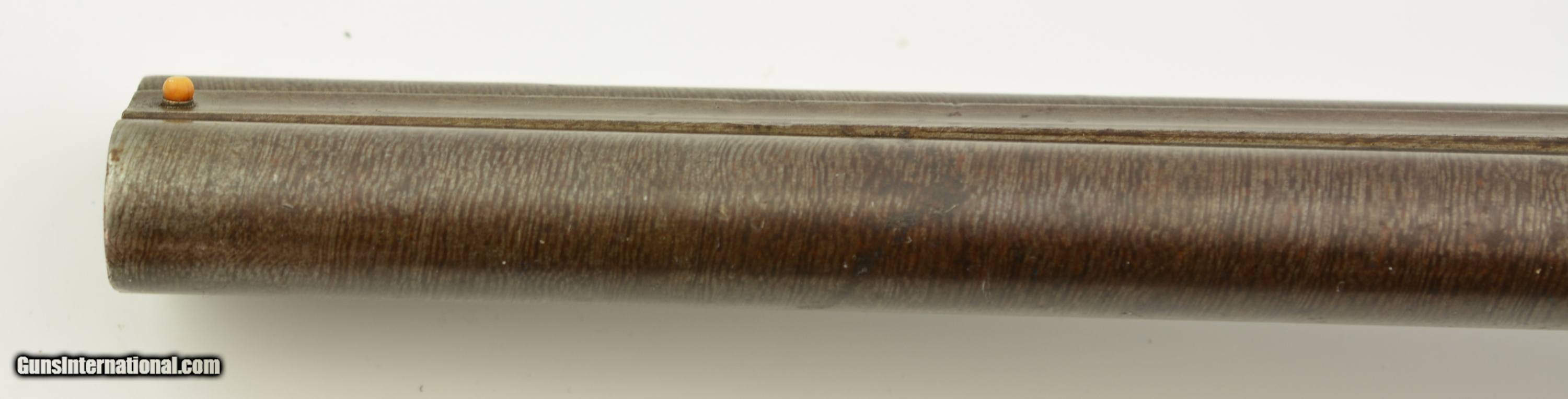 Description: Serial #41622, 12 GA (2 5/8" chambers), 30 inch Stub Twist Damascus steel barrels with pitted bores choked about improved cylinder in each tube. This is a standard grade external hammer side-by-side manufactured by Parker Brothers with straight grip marked “PARKER BROS" on the side plates built in 1884 on a #2 frame. The classic double is in very good condition with solid rib, Stub Twist Damascus barrels that read “PARKER BROS. MAKERS MERIDEN CONN. STUB TWIST" showing much of the original twist pattern now a pleasing plum-brown. There is one small dent on the left tube about 11 inches from the muzzle that should be seen by a competent gun smith before firing along with some other very small use marks and impact marks around the muzzle. The receiver is mostly an aged plum brown with clear markings. The stock and forearm have worn smooth the original checkering with two large cracks on the left side of the wrist near the trigger guard and lock plate. The barrels are very slightly off face but lock up tight with lever resting just left of center. The hammers cock and fire properly. It has a 14 inch LOP with drops of 2 1/4" and 3" at the comb and heel respectively. A very nice old Parker that could be restored to former glory with a little work. Antique SOLD Antique: Yes Manufacturer: Parker Caliber Info: 12ga Gauge Info: 12ga |