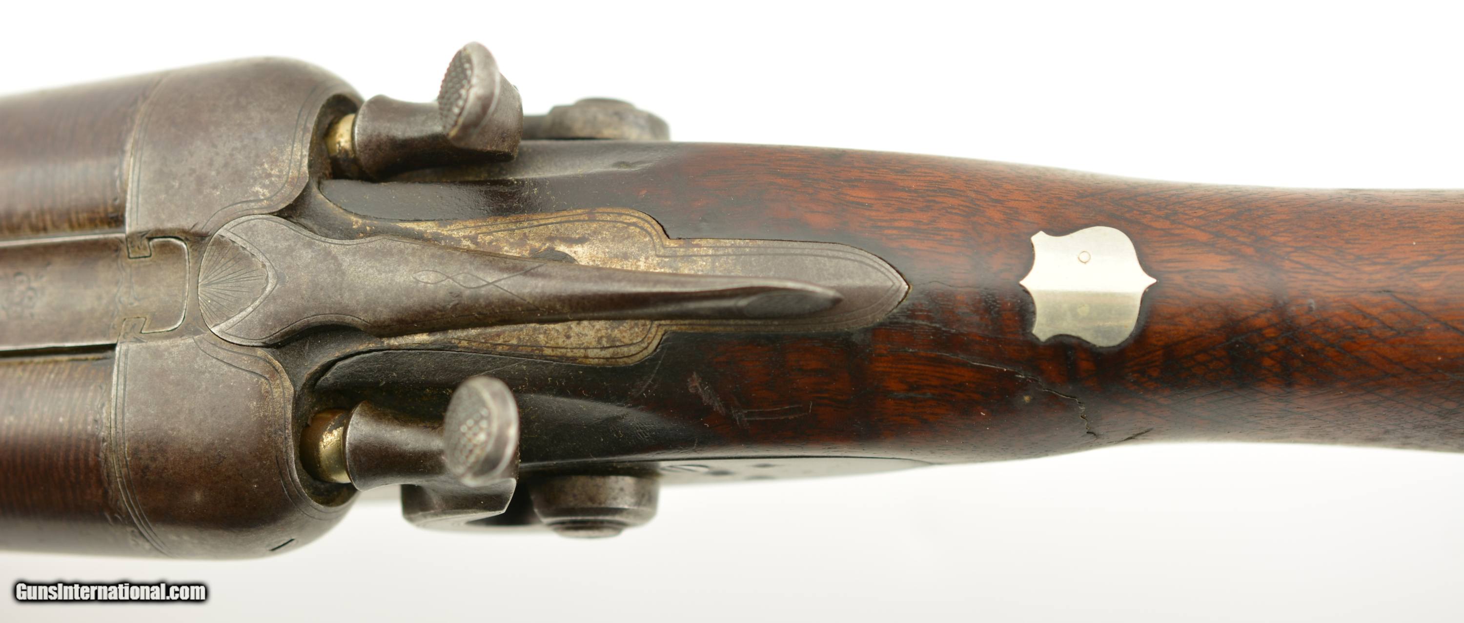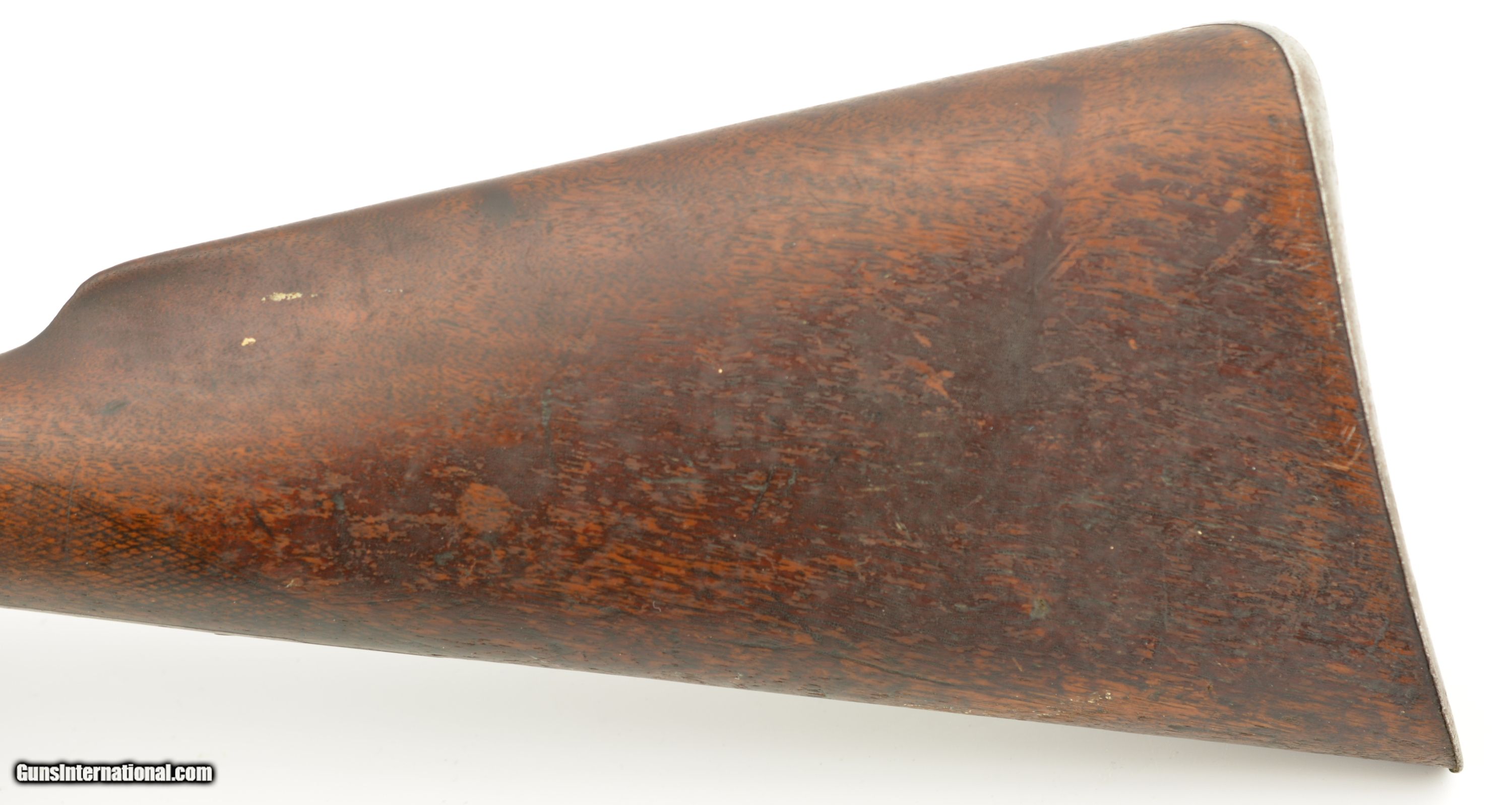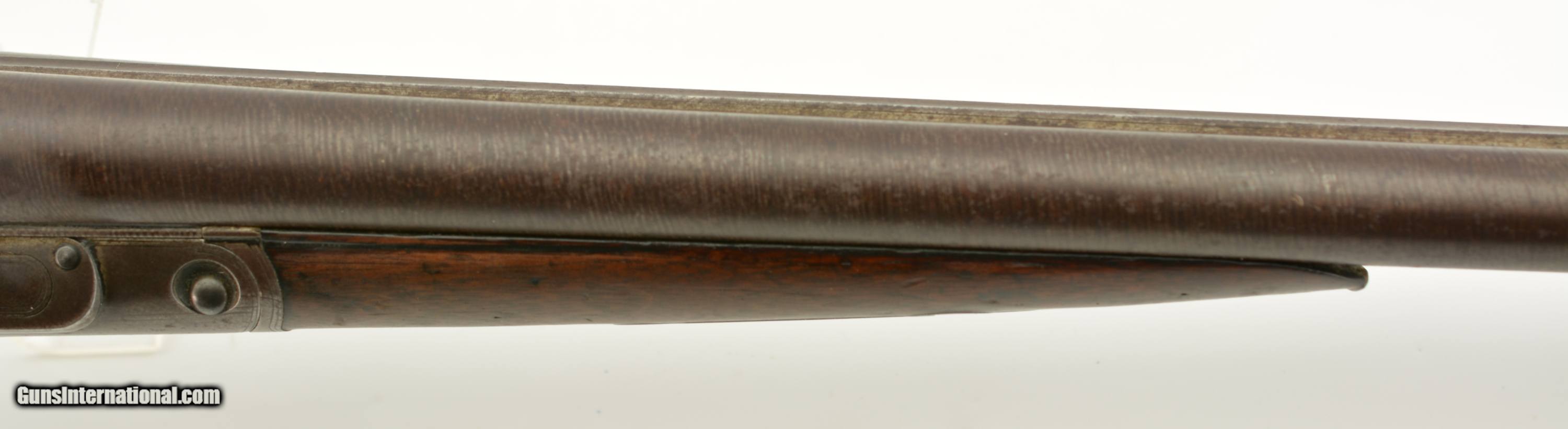 Description: Serial #41622, 12 GA (2 5/8" chambers), 30 inch Stub Twist Damascus steel barrels with pitted bores choked about improved cylinder in each tube. This is a standard grade external hammer side-by-side manufactured by Parker Brothers with straight grip marked “PARKER BROS" on the side plates built in 1884 on a #2 frame. The classic double is in very good condition with solid rib, Stub Twist Damascus barrels that read “PARKER BROS. MAKERS MERIDEN CONN. STUB TWIST" showing much of the original twist pattern now a pleasing plum-brown. There is one small dent on the left tube about 11 inches from the muzzle that should be seen by a competent gun smith before firing along with some other very small use marks and impact marks around the muzzle. The receiver is mostly an aged plum brown with clear markings. The stock and forearm have worn smooth the original checkering with two large cracks on the left side of the wrist near the trigger guard and lock plate. The barrels are very slightly off face but lock up tight with lever resting just left of center. The hammers cock and fire properly. It has a 14 inch LOP with drops of 2 1/4" and 3" at the comb and heel respectively. A very nice old Parker that could be restored to former glory with a little work. Antique SOLD Antique: Yes Manufacturer: Parker Caliber Info: 12ga Gauge Info: 12ga |