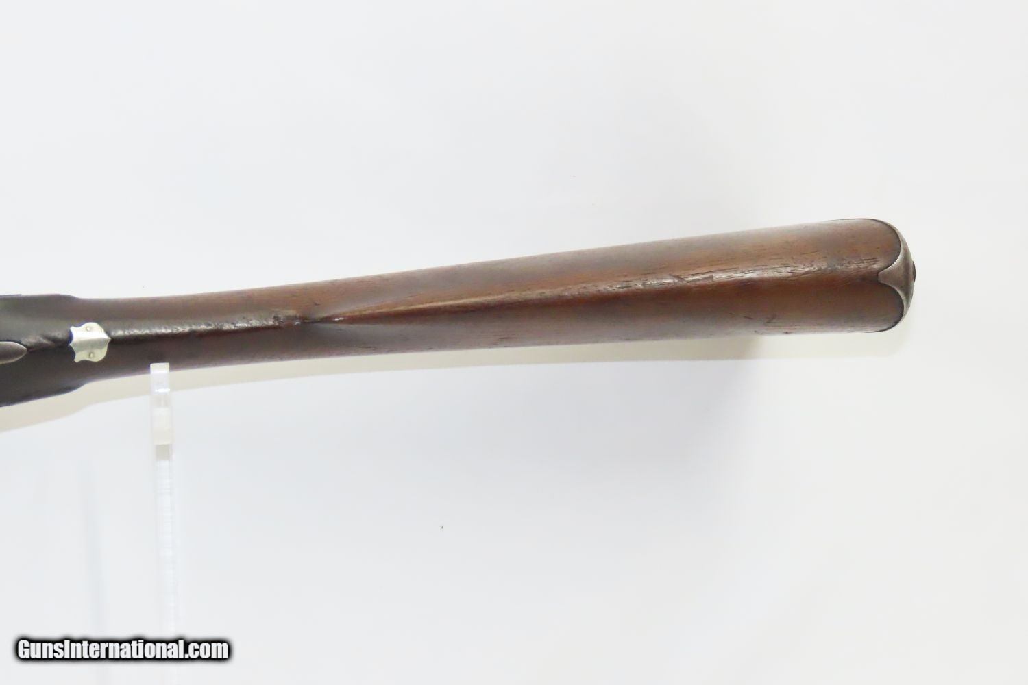 Description: c1877 Antique PARKER BROTHERS Double Barrel SxS UNDER LIFTER HAMMER Shotgun 12 Gauge Side x Side Hammer Gun Made In 1877 Here we present an antique Parker Brothers Hammer Double Barrel Under Lifter Shotgun in 12 Gauge, made circa 1877 in Meriden, Connecticut. Charles Parker was an entrepreneur who began working in U.S. manufacturing in the 1830s. Interestingly, one of his first products was a coffee mill. He also collaborated on several government contracts to make arms during the American Civil War, including one for the Model 1861 and then a truly interesting, rare breech-loading design for the state of Kentucky, called the Triplett & Scott Carbine. Finally, in 1866, after his experience in arms manufacture for the war effort, he and his sons, Wilbur and Dexter, began the company Parker Brothers, making sporting shotguns. This company is considered by many to have been the best manufacturer of fine American shotguns, ever. The company was in business until 1942. The overall condition is good. Reflective bore with light texture throughout. Strong actions. The twist barrels maintain their pattern and show minor dings here and there. Solid walnut stock. There is a stable hairline crack off the back of the left lock. Numbers match. An early Underlifting Parker! Own the original! This is a legitimate antique and not a reproduction. Barrel is 30 inches. Caliber: 12 Gauge Chambers: 2-1/2 inch Chokes: Cylinder/Improved Cylinder Length of pull: 14-1/4 inches. Overall condition as seen in photos. Very Fast. Very Safe. FREE SHIPPING WORLDWIDE. Delivered directly to your door by express mail! Guaranteed AUTHENTIC & Includes CERTIFICATE OF AUTHENTICITY. ancestryguns $1265 #210602 SOLD Antique: Yes |