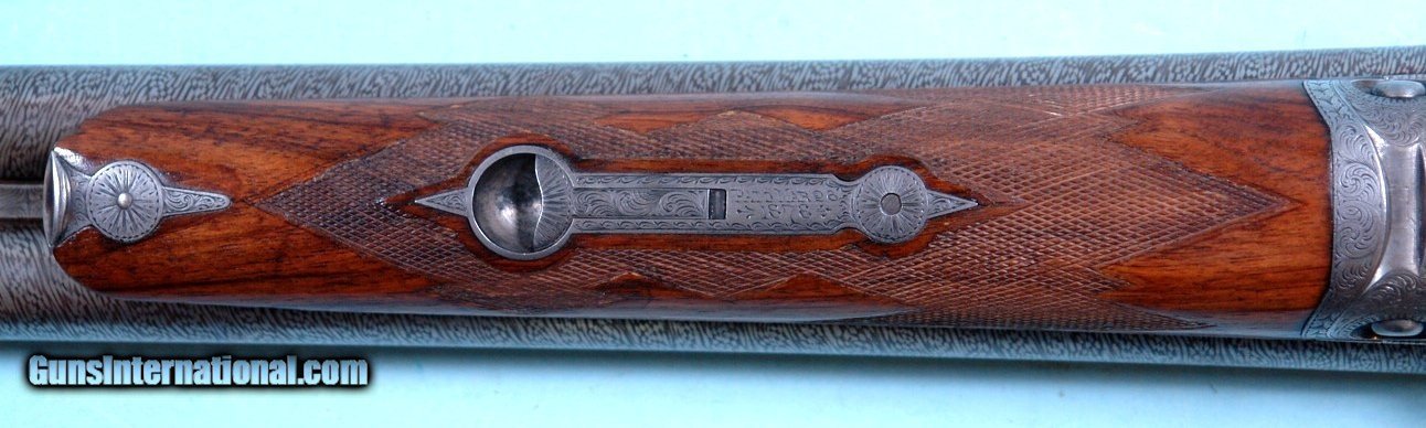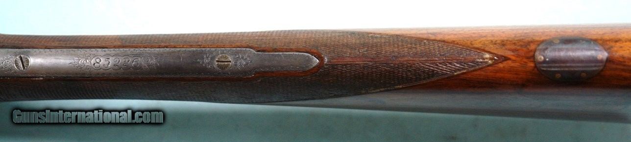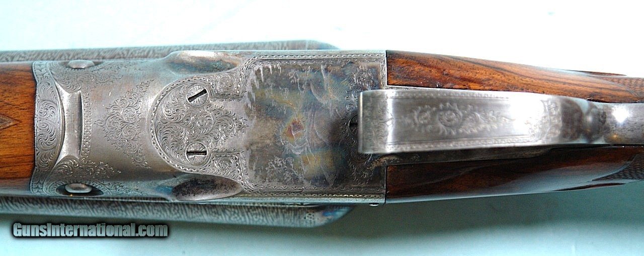 Description: 32975-EARLY PARKER BROS. CH GRADE 12 GAUGE 30” BERNARD TWIST DAMASCUS SIDE X SIDE SHOTGUN MFG. 1896. 3” chambers and choked Modified and Improved Modified. No. 2 frame. Double triggers, auto safety and extractors. Superb game scene engraving only seen on these earlier Parkers. Beautiful metal finish with 60-70% bright case colors on frame and 95% plus of the finest quality Bernard Damascus on barrels. Stock and forend refinished with wood reinforcing dowel on side panels and checkering professionally re-cut. 1 ½”, 2 ½” drop and 14 ½” pull over checkered butt with skeleton steel plate. Very tight working order and extra nice bright bores. Beautiful looking early “C” grade. $4900. Antique: Yes Shotgun Gauge: 12 Gauge Price: $4,900.00 Contact Seller |
