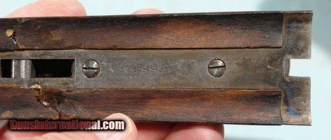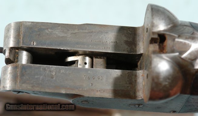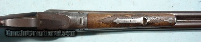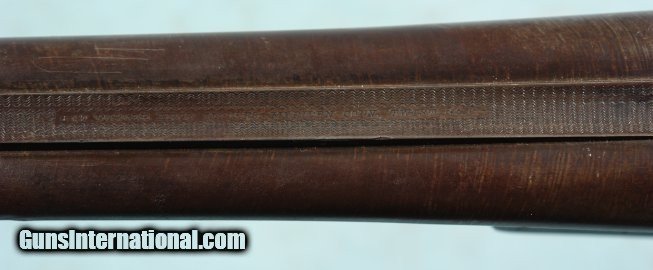 Description: EARLY PARKER BROS. PH GRADE DAMASCUS 12 GA. SIDE X SIDE SHOTGUN CIRCA 1892. 28” Damascus “TWIST” barrels with 2 9/16th inch chambers and choked Improved Cylinder and Cylinder. Number 1 frame. Nicely figured walnut checkered pistol grip stock with original Parker “Dog Head” hard rubber butt plate. 14” pull. Drop 2”, 3”. Checkered forend. Weight 6 pounds, 2 ounces. Very good overall with plum Damascus finish mixed with patina on barrels. Frame and mounts with brown patina and traces of finish. Stock with worn original finish. Forend with old repaired hairline near release lever. Very tight and in perfect working order. Bores with light pitting and fixable dent on left side of left barrel 8” from breech. Nice very early “P” Grade with small No. 1 frame. SOLD Antique: Yes Shotgun Gauge: 12 Gauge |
