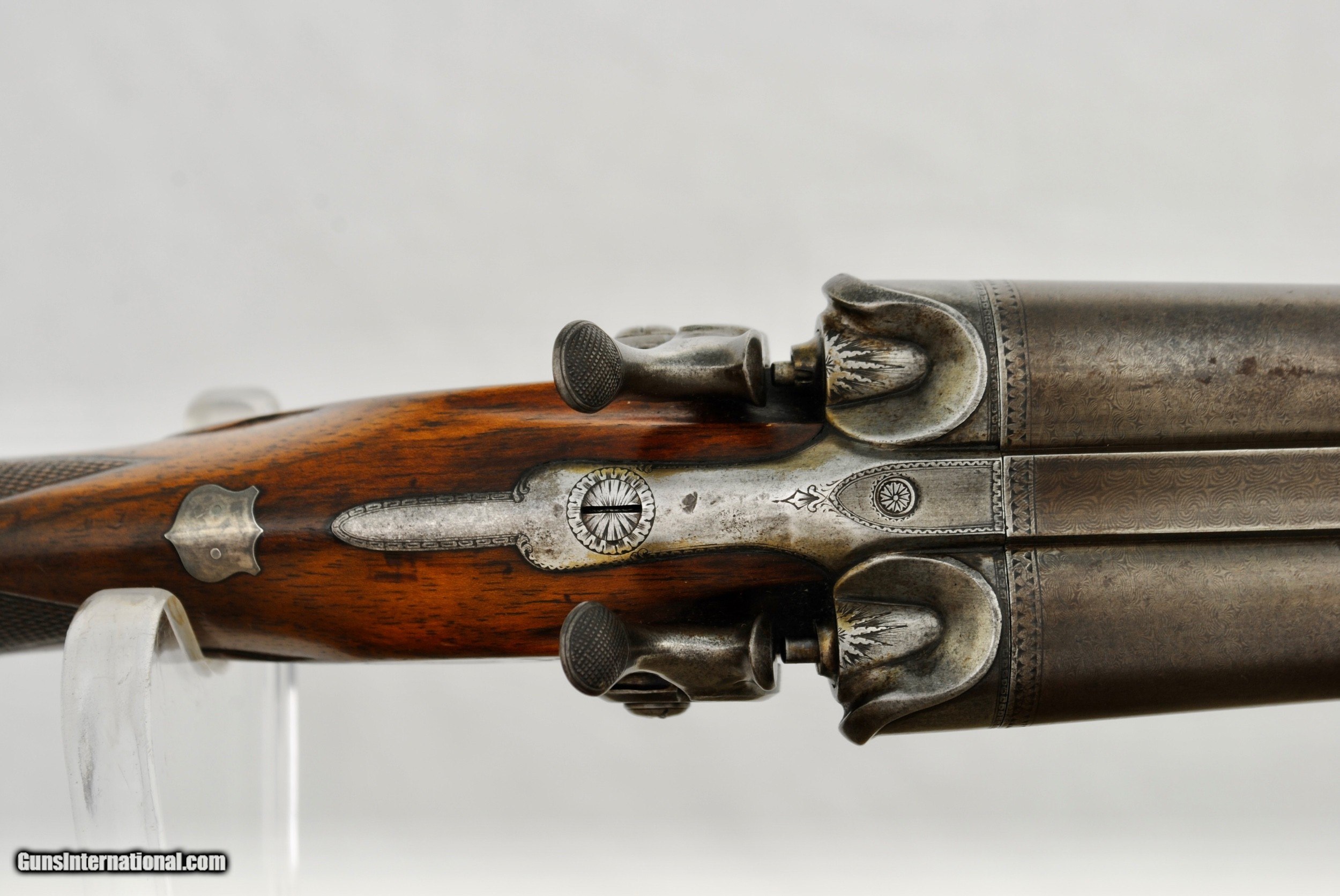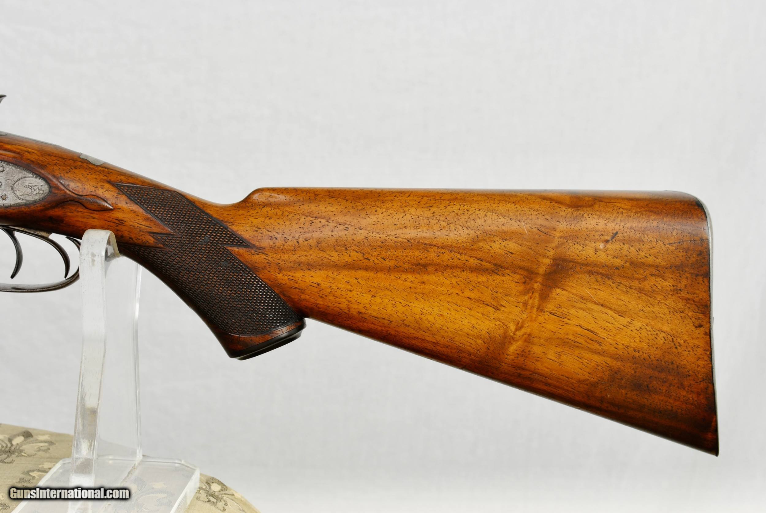 Description: Parker D Grade lifter made in 1874. Engraving is still quite crisp for its age. Checkering is well defined. Wood is free of cracks. Damascus barrels ring nicely. Gun is tight on face. Barrels are 30" and the bores measure .738 in the right and .736 in the left. Bores are in excellent condition with a handfull of very small areas of corrosion. I rate the barrels an "8" on a one to ten scale. Chambers are 2 3/4". Rebounding hammers. Fully functional. Gun is a number 2 frame. Skeleton butt plate. Weight of the gun is 7 LBS 7 3/4 OZ. LOP is 13 3/4". Drop at comb - 2". Drop at heel - 2 3/4". As antique this gun can be shipped directly as local law allows. Shipping is $75. SOLD Antique: Yes Shotgun Gauge: 12 Gauge |