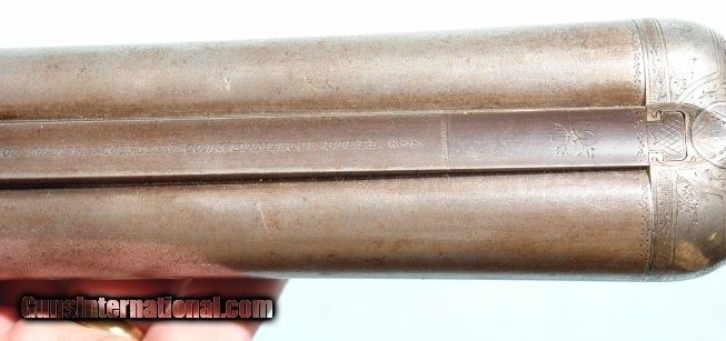 Description: FINE PARKER BROS. GRADE 2 HAMMER DAMASCUS 10 GA. 30” SIDE X SIDE SHOTGUN CIRCA 1884. All original and fine overall. 3” chambers. 41xxx serial range manufactured in 1884. Game scene engraved on locks and frame. High grade walnut checkered pistol grip stock with original Parker “DOG HEAD” hard rubber butt plate. 13 ½” pull. ¼” cast off. 1 7/8th inch, 2 7/8th inch drop. Fine with light handling wear. Original unbroken hammers. Barrels with approximately 60% Damascus finish and frame and locks a silvery patina traces of case in the recesses. Wood with the original finish lightly worn. Very tight and solid and in perfect working order with excellent bores bright bores with only some very light pitting near the breech. Nice Grade 2 at a realistic price. SOLD Antique: Yes Shotgun Gauge: 10 Gauge |