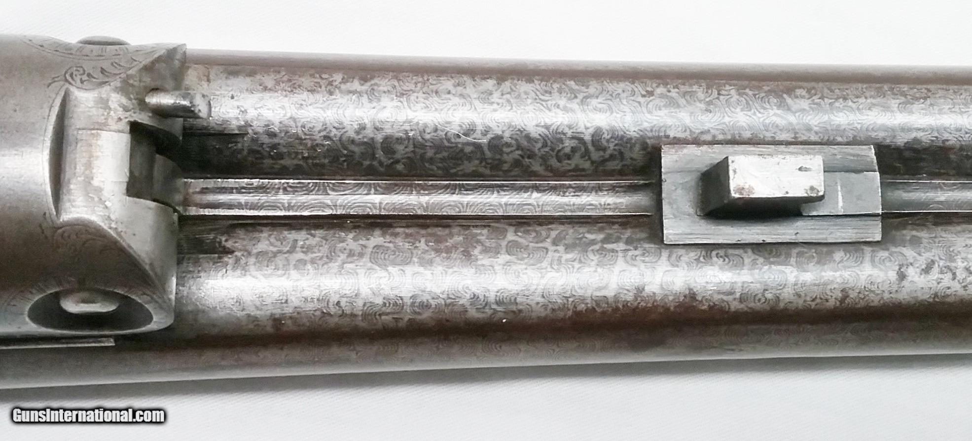 Description: This 12 gauge original Hammerless D2 Grade shotgun has Damascus 30" barrels with Parker Bros Makers Meridan Conn Damascus Steel stamped on the matted barrel rib. The P grade Walnut butt stock and forend are in good condition. It has a pistol grip with a horn cap, checkered butt plate with Parker Brothers stamped on the face, engraved steel insert in the forend and checkered wrist and forend. Inscribed on both sides of the nicely engraved action is Parker Bros and serial number 7XXX3. On the engraved forend release is Pat'D Mar 26 1878. Length of pull is 14-3/16" Overall length is 46-1/4”, weight is 7.6 lbs. Our stock number is P-86-29. Good wood to metal fit - made by Parker Brothers. Condition: Good. Will ship anywhere in the United States. Buyer pays freight and insurance. SOLD Manufacturer: Parker Model: Double Barrel - Hammerless Bore: Smooth Wood Condition: Good Bore Condition: Good Barrels: Two Barrel Type: Tapered Round Action: Break Open Triggers: 2 Gauge Info: 12Ga Stock: Walnut Fore End: Walnut Butt Pad: Horn LOP: 13-1/4", 14 Rib: Matted Finish: Browned Weight: 7.6 lbs Sights: Bead Choke Left: Improved Mod. Choke Right: Improved Mod. Item Location: OR |