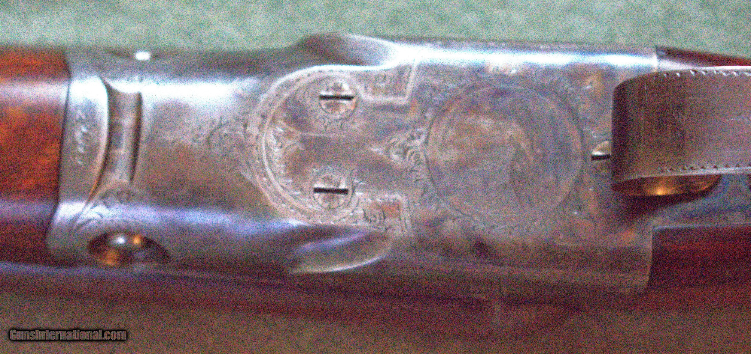 Description: SALE PENDING. Parker Bros. 12 gauge GH grade built in 1892 on a #1 frame. This gun is in excellent original condition. It retains 50% of the original case colors,98% of the original wood finish,and 90% of the original damascus pattern. The 30" damascus steel barrels have excellent bores and wall thickness. The chambers are unaltered at 25/8". The top lever is the early style fish tail lever. The barrels are on face and lock up tightly to the action with no play. The receiver has excellent G grade engraving that is typical of the early guns. The barrels are choked improved modified (.025") and full (.035"). According to the factory letter it was shipped to T.B.Davis of Portland,Me in July of 1892.This is a classic Parker that is safe to shoot with proper loads. A great addition to any collection and ready for another 130 years of shooting. Classified as an antique so it can be shipped direct. SOLD Antique: Yes Shotgun Gauge: 12 Gauge Manufacturer: Parker Bros. Model: GH Serial Number: 70927 Barrel Length: 30 Chambers: 25/8 Ejectors: extractors Condition: excellent Metal Condition: excellent Wood Condition: excellent Bore Condition: mint Barrel Type: Damascus Steel Action: Double Barrel Triggers: Double Butt Pad: Factory Dogs Head Manufacture Date: 1892 Choke Left: Full Choke Right: IM |