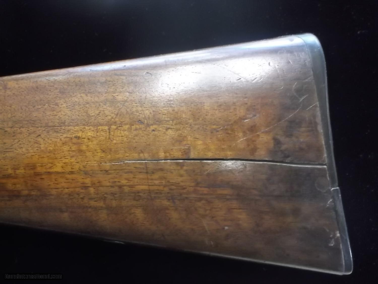 Description: This weapon is in good condition except for a crack in the stock and a cracked butt plate, I want to sell this so make me an offer SOLD Antique: Yes Manufacturer: parker bros. Model: side by side Serial Number: 67639 Bore: 12 Ga. Chambers: 2 Ejectors: yes Condition: good Metal Condition: good Wood Condition: cracked stock Bore Condition: good Barrels: 2 Barrel Type: damascus steel Triggers: 2 Gauge Info: 12 Butt Pad: cracked Finish: blue Sights: 1 Manufacture Date: 1891 Engraving: yes Case: yes Item Location: point pleasant N.J. |
