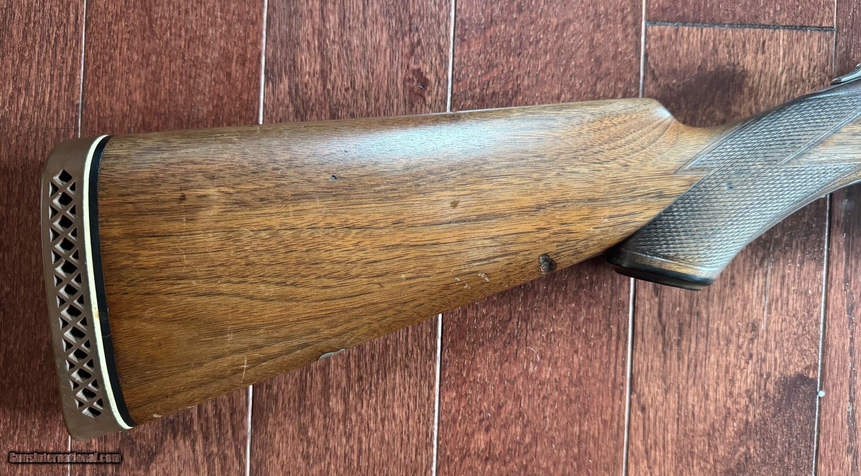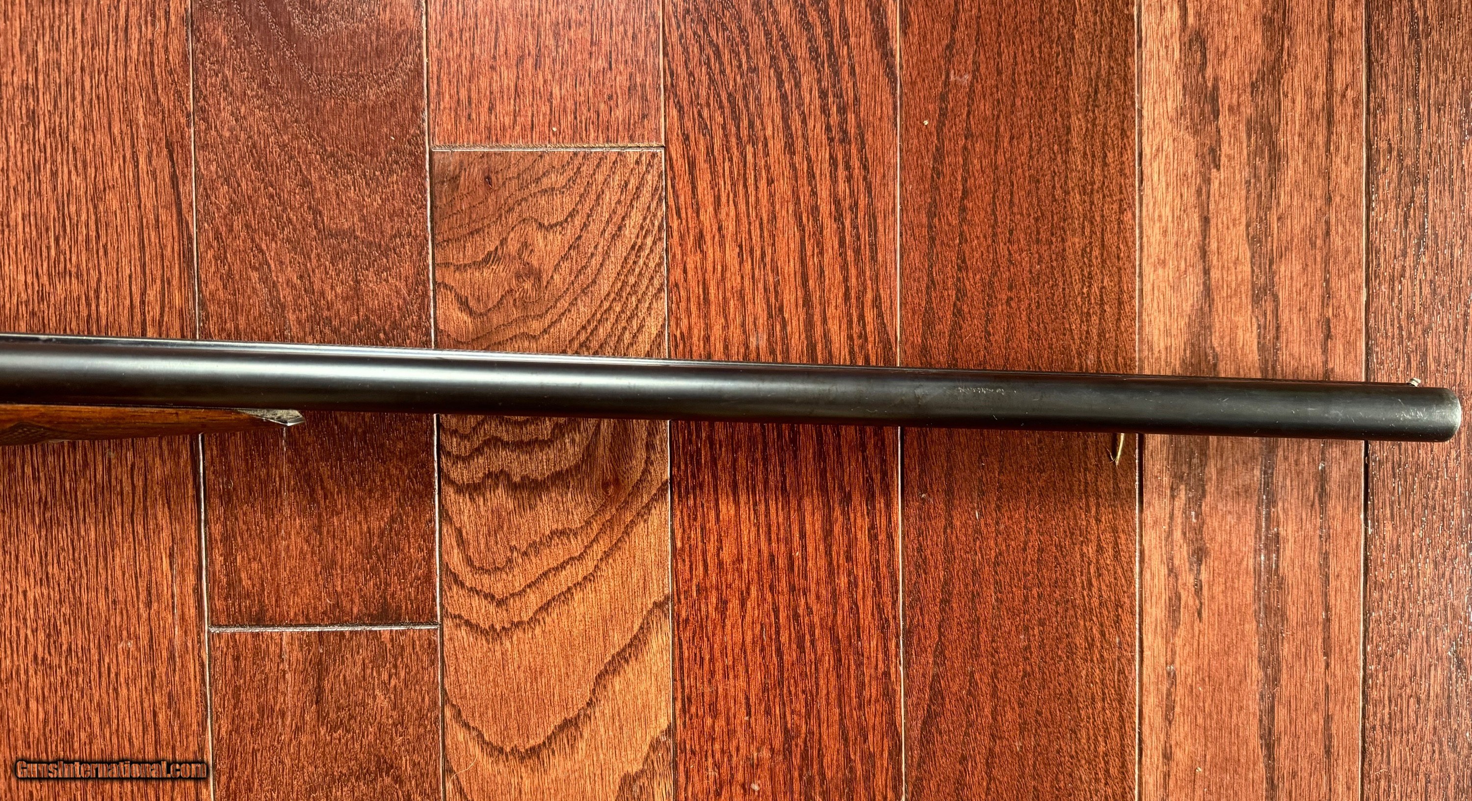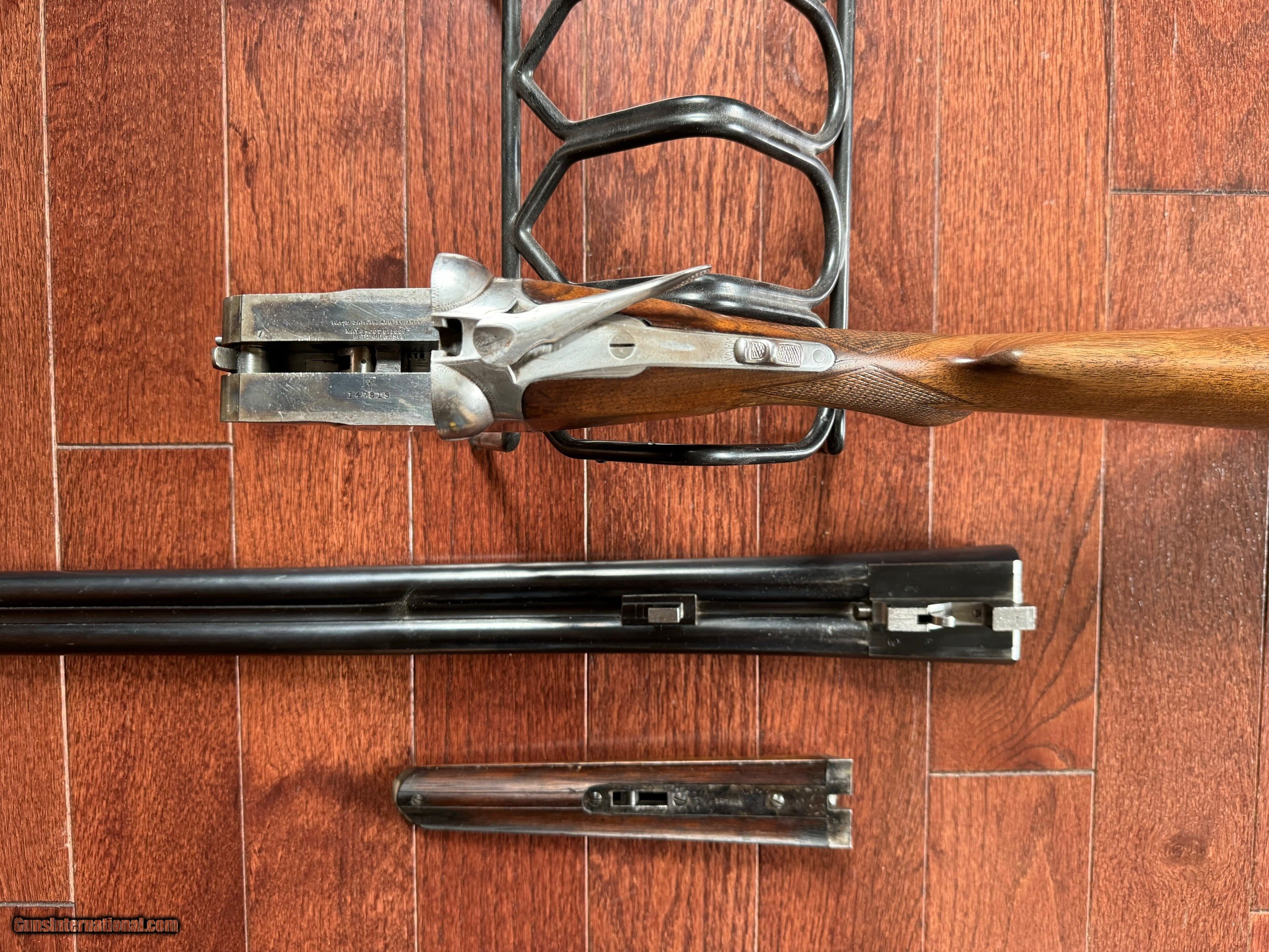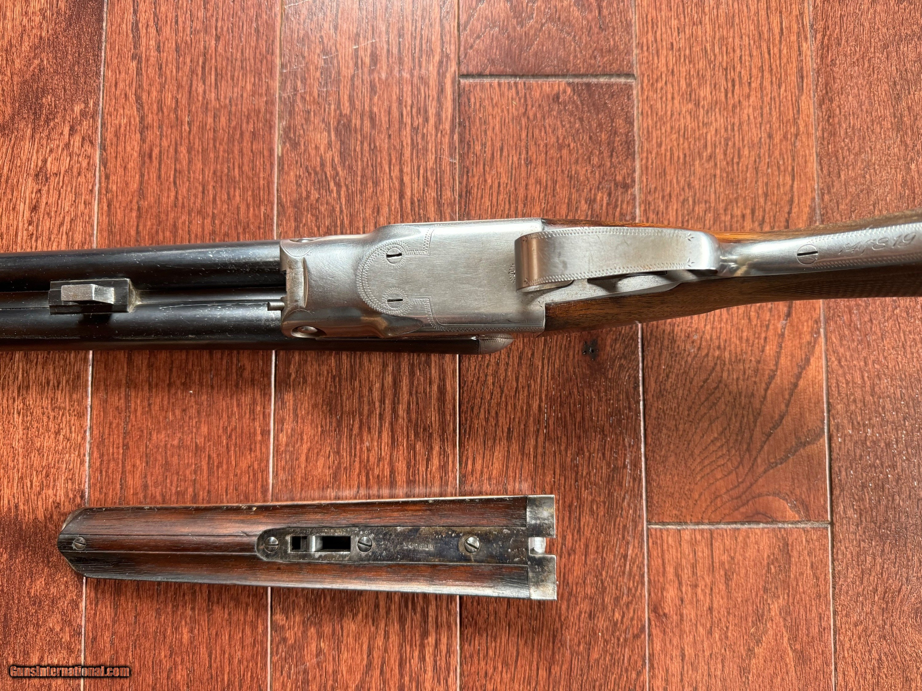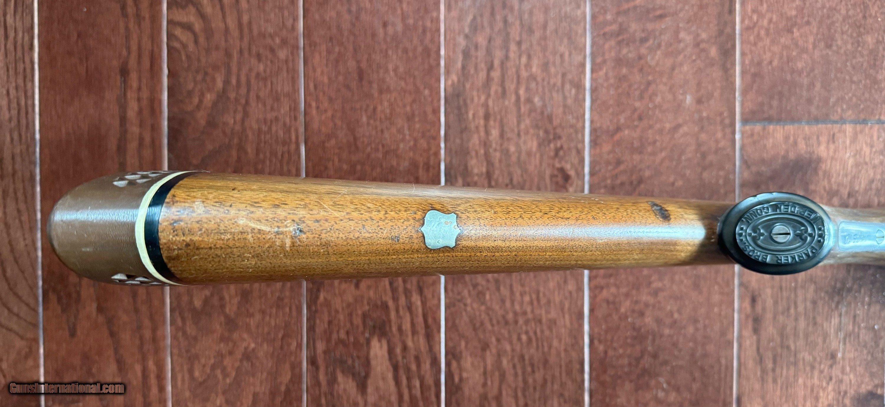 Description: FINAL PRICE REDUCTION!! Parker Brothers 16G V grade side by side shotgun. 2 trigger 26" bbl with silver receiver/action with fine sewing stitch engraving. Barrel address top of rib Parker Brothers, Makers, Meriden, Conn. Vulcan Steel. Extractors. Solid rib with single silver front bead. Case hardened color in protected areas only. Beautiful deep grain walnut wood checkered stock with silver inlaid medalion for initials. Pistol grip with Parker Bros Meriden Conn. cap. Stock length corresponds to factory length - 14.25". Tang safety and bbl release. Frame size 1. 1908 manufacture. Ser. #147xx9. All parts match serial number. Rubber recoil pad. Metal in good condition. Wood in very good condition with minor dings, scratches and one 1/2" long divet on right front of buttstock behind pistol grip. See photos. SOLD Curio/Relic: Yes Shotgun Gauge: 16 Gauge Manufacturer: Parker Brothers Model: V Grade Serial Number: 147xx9 Barrel Length: 26” Ejectors: Extractors Condition: Excellent Metal Condition: Very good Wood Condition: Very good Bore Condition: Shiny, clean Barrel Type: Side by Side Triggers: Two Manufacture Date: 1908 Item Location: Oregon |