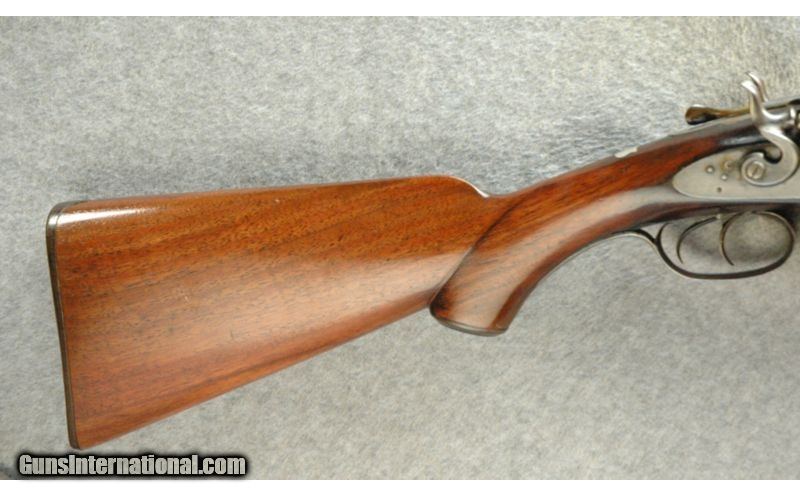 Description: Parker Grade 1 Hammer Gun in 10 Gauge. Manufactured in 1888 (SN: 55595). This old classic 10 gauge Parker Bros double barrel shotgun features 30" Twist barrels ("Twist" marked on rib), 2 7/8" chambers, extractors, double triggers, rebounding firing pins and rebounding hammers, checkered walnut stocks, pistol grip with original cap and butt-plate, checkered with sporting dog relief figure, silver initial shield, splinter forend with decorative metal tip and release lever. This 131 year old (and counting) antique Parker Bros. shotgun is in fair to good condition. The serial numbers are all matching to the action, barrels, forend hardware and trigger-guard. The barrels’ contrasting shades of greys and browns are quite appealing, especially with the protective clear coat, and the barrels chime like church bells! There are some minor exterior scratches and nicks, and some pitting in the bores but there are no deep pits. The action is tight to the buttstock wood, however there is no remaining cased colors and very little patina. The hammers operations, cock, strike and rebound are very good, and the triggers let off/pull are very good as well. The firing pins are in good working order and the return springs are doing their job. The barrels to breech-face lockup is a little loose, which the vast majority of antique double guns are, and most are a bit looser than this gun. The forend and butt-stock wood is very sound with no cracks or deep scratches, but there is a little loss of wood along the edges of trigger-guard. The stocks have been sanded and refinished with a glossy lacquer/varnish finish, which was probably done about a decade or so ago, unfortunately the checkering is nearly completely worn off. On the bright side, the Parker checkered butt-plate with sporting dog figure is in very good shape for its age, but there is some worn checkering at the heel and couple of small worn chips at the toe. Measurements: 14 1/4" LOP; 2" DAC; 3 3/8" DAH; & 1/4" Cast Off. Weight 9 1/2 Lbs. SOLD Antique: Yes Manufacturer: 1888 ~ Serial Number: 55595, all matching to the receiver, barrels, forend and trigger-guard. Caliber Info: 10 Gauge Chambers: 2 7/8" Chambers. Metal Condition: Good but with finish wear, small nicks and scratches. See Description" for additional information. Wood Condition: Original stocks, worn checkering and refinished. See Description" for additional information. Bore Condition: The bores show shallow pitting throughout but there are no deep pits. Barrels: 30" Twist barrels Triggers: Double Triggers Stock: Wanut. Stock Dimensions: 14 1/4" LOP. See "Description" for additional information. Fore End: Walnut. Butt Pad: Parker original butt-plate. Weight: 9 Lbs 8 ozs Sights: Single Silver Bead Chokes: Unknown, as we do not have a 10 gauge choke measuring tool. Item Location: Boise, ID |