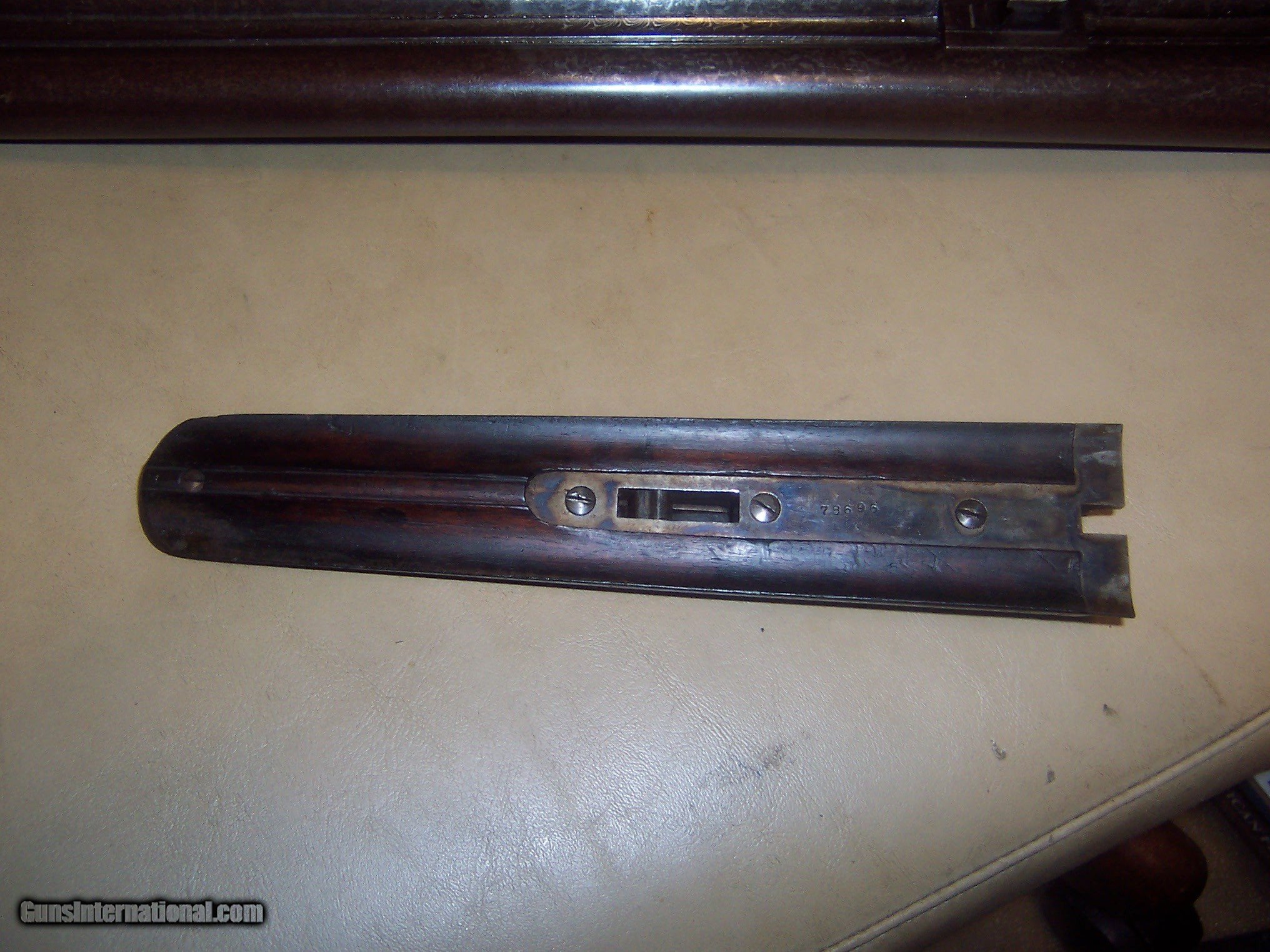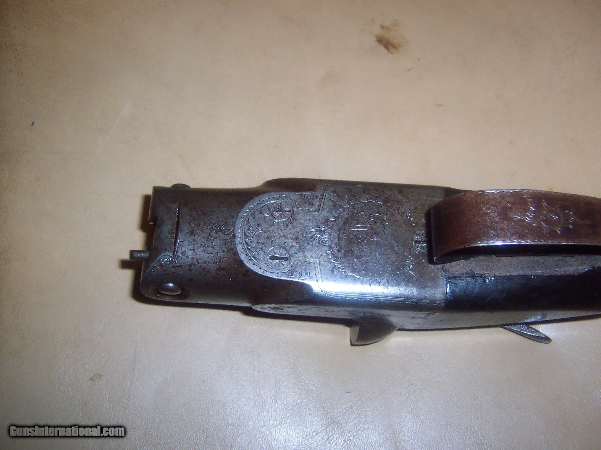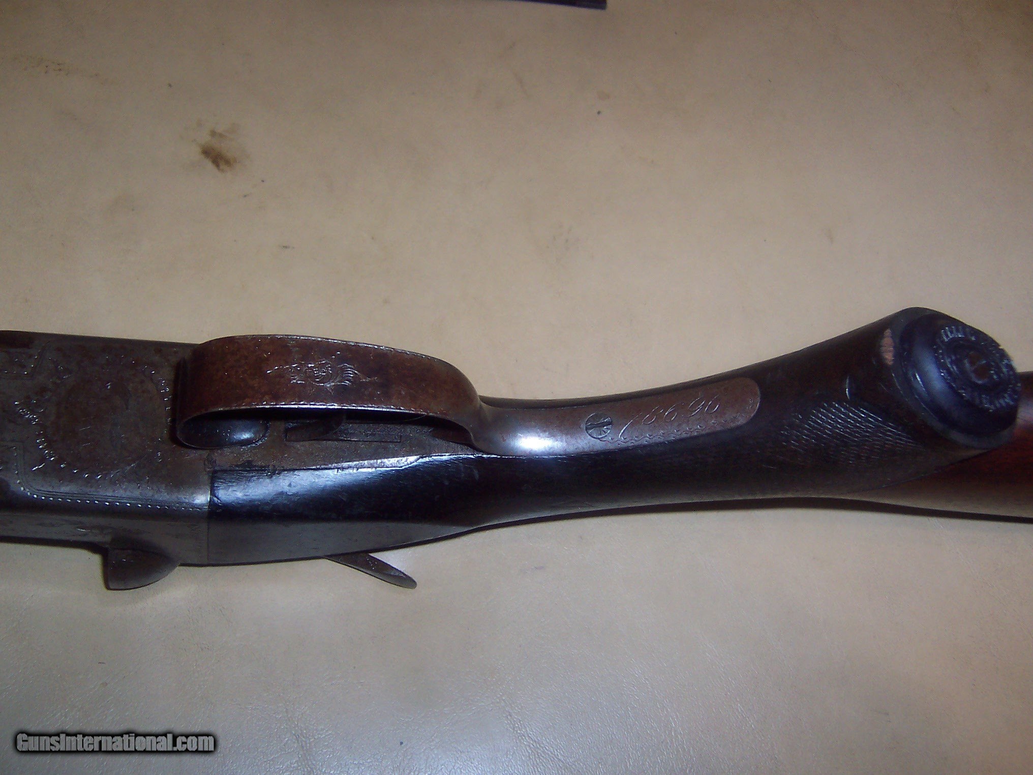 Description: all original / pistol grip cap a replacement // 26 inch barrels with almost mint bores / some microscopic pitting // locks up tight / checkering shows some wear but metal has no pitting / the engraving is crisp / // serial # 78696 matches made 1893// every thing works well// antique ship to your door // great gun for black powder shooting / buy any 2 items & get a 5% discount and free shipping/// see other parkers i have for sale // used but not abused good for another 130 years// extractors // damascus barrels with some damascus pattern visable// $59 sh// center ivory bead sight// solid stock looks un sanded// some case visableb inside of forearm but receiver has silvered out/ FREE CASE SOLD Antique: Yes Manufacturer: parker Model: g |