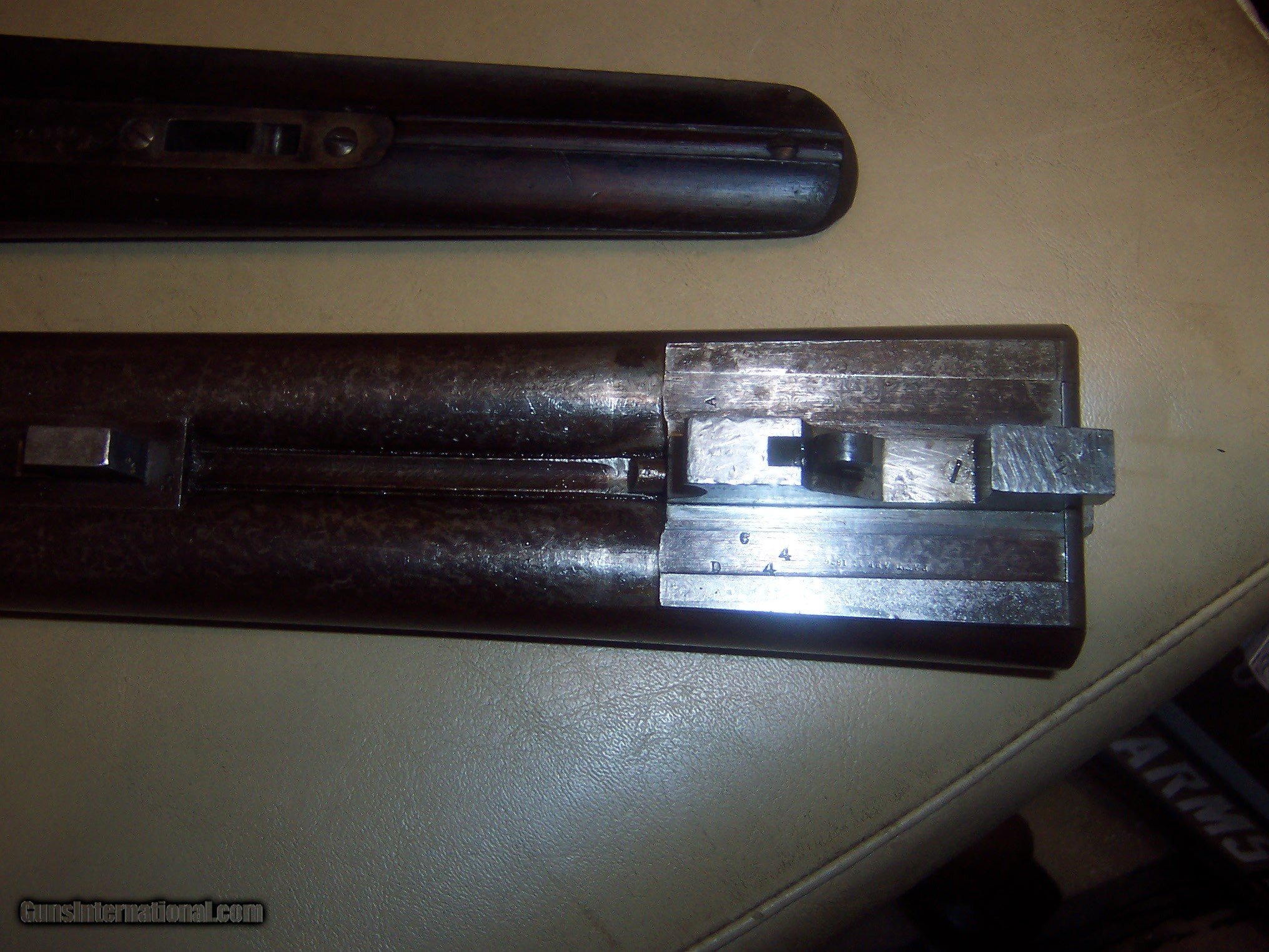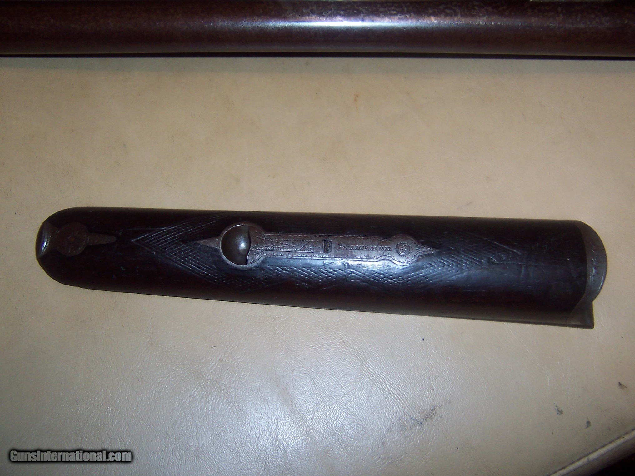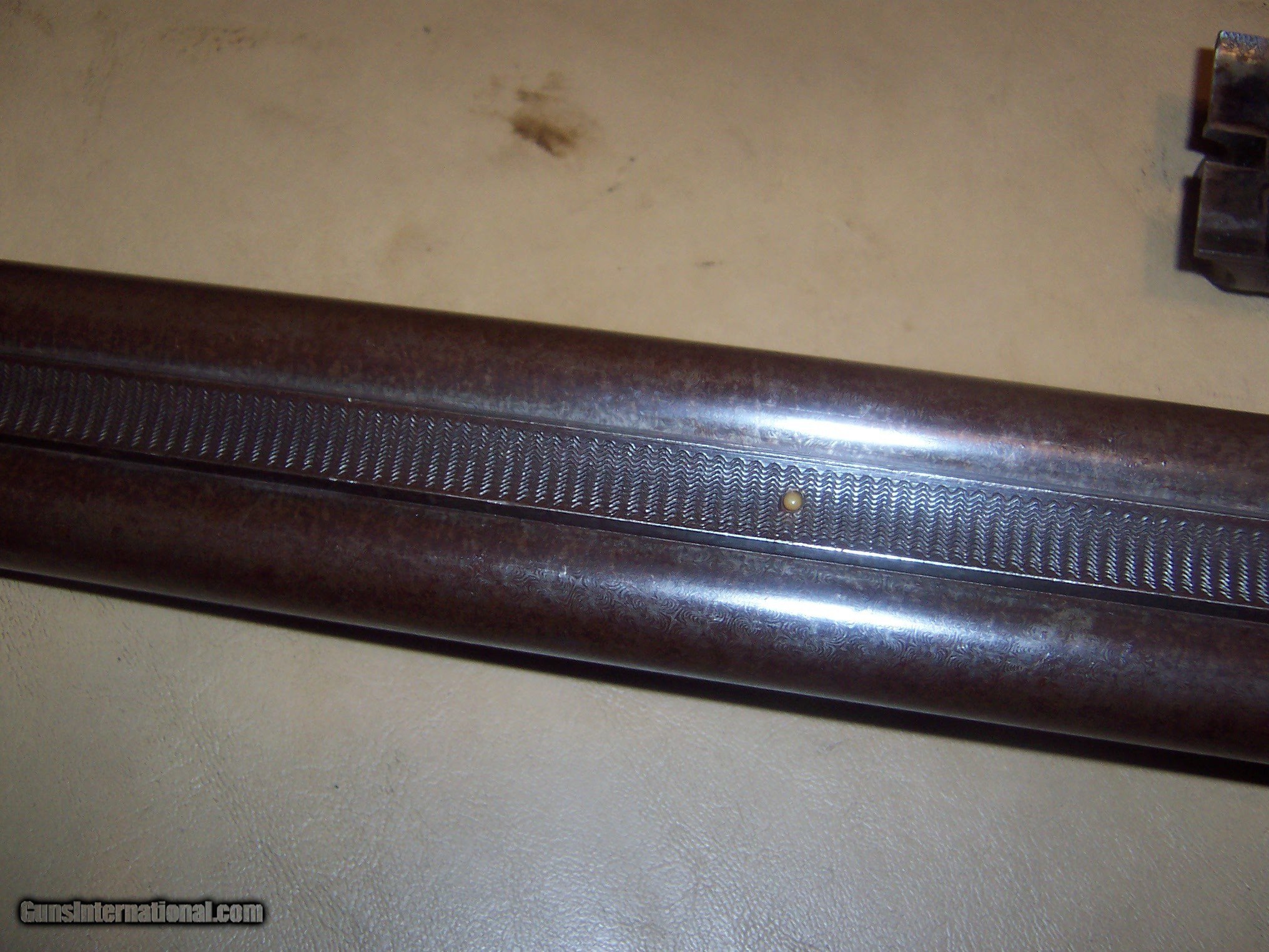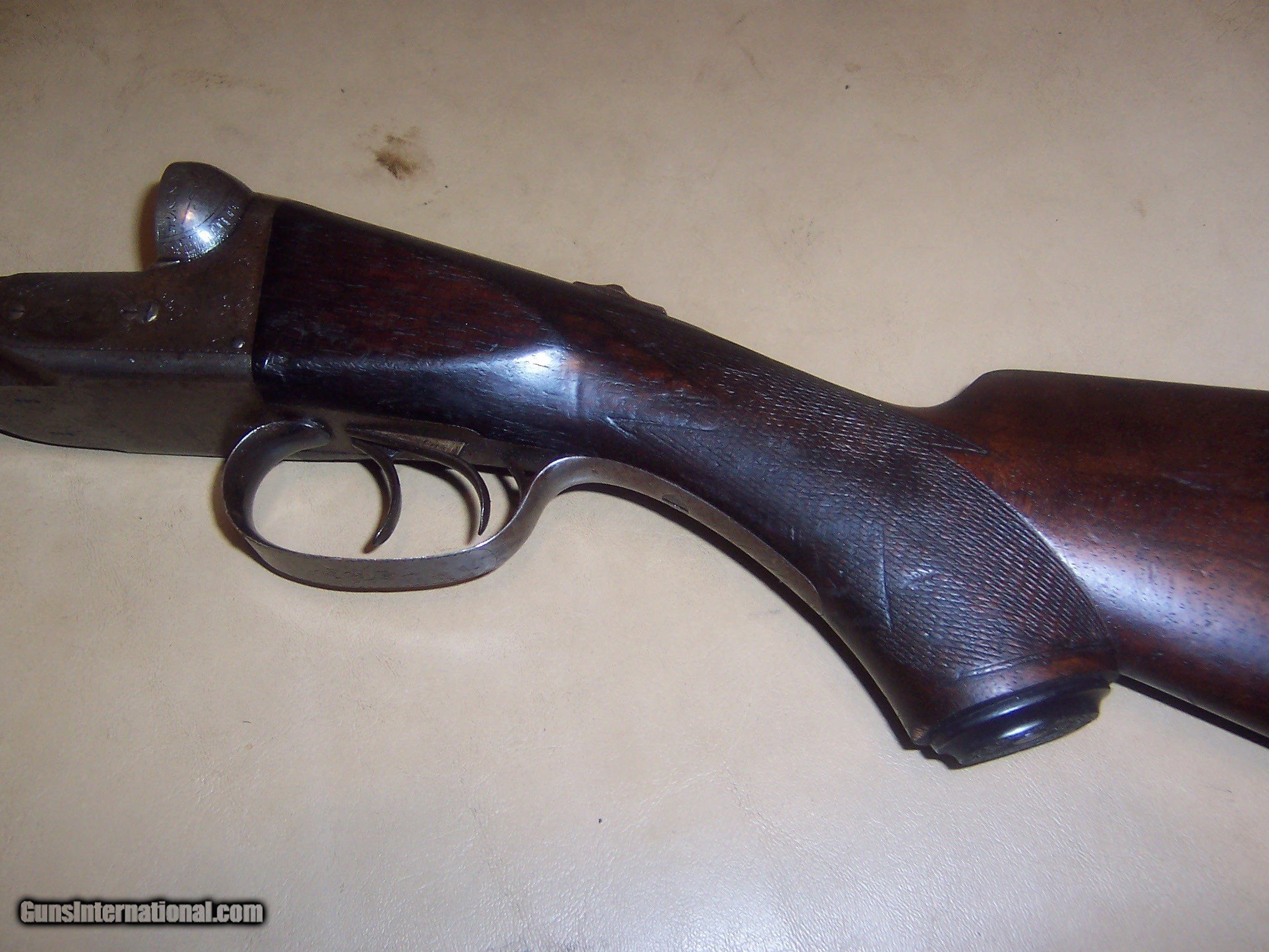 Description: all original / pistol grip cap a replacement // 26 inch barrels with almost mint bores / some microscopic pitting // locks up tight / checkering shows some wear but metal has no pitting / the engraving is crisp / // serial # 78696 matches made 1893// every thing works well// antique ship to your door // great gun for black powder shooting / buy any 2 items & get a 5% discount and free shipping/// see other parkers i have for sale // used but not abused good for another 130 years// extractors // damascus barrels with some damascus pattern visable// $59 sh// center ivory bead sight// solid stock looks un sanded// some case visableb inside of forearm but receiver has silvered out/ FREE CASE SOLD Antique: Yes Manufacturer: parker Model: g |