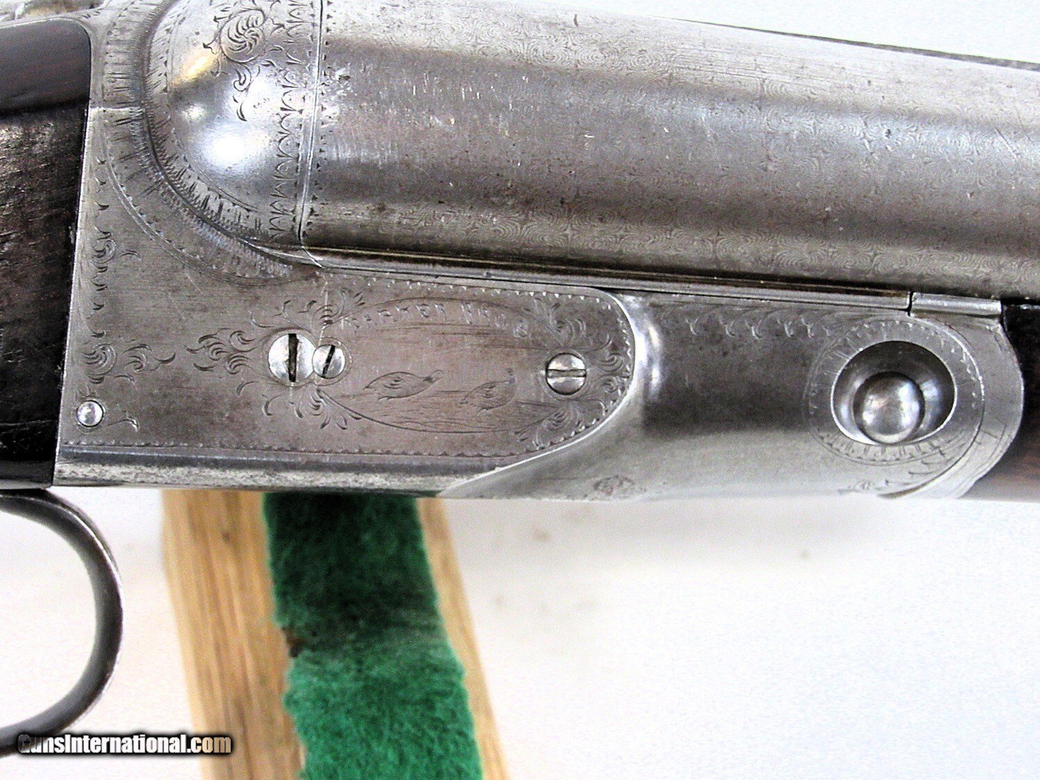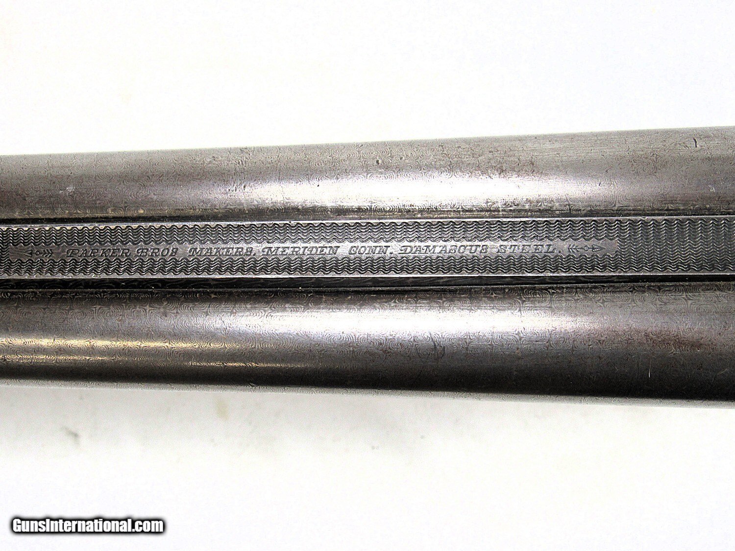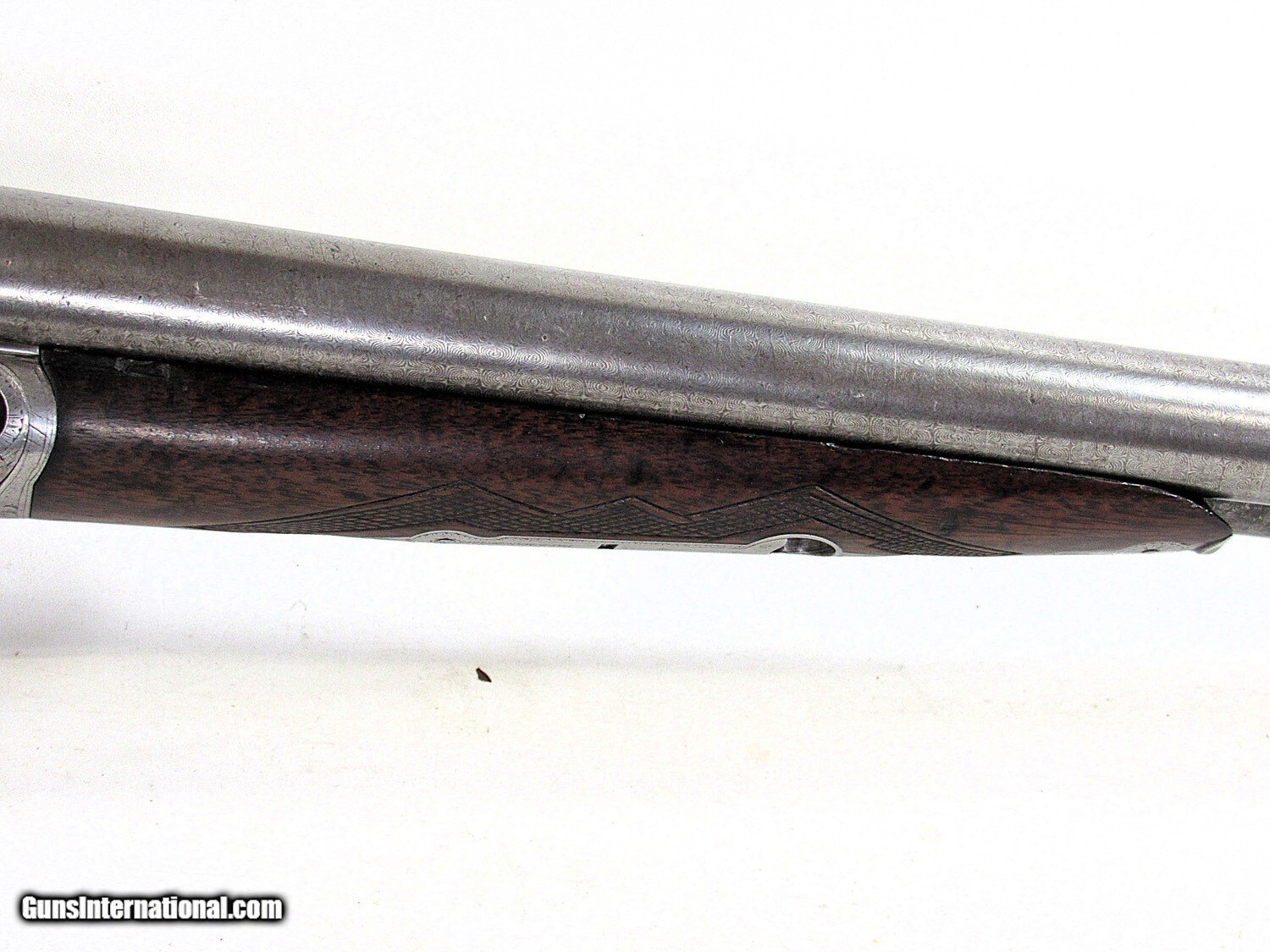 Description: PARKER GH 10GA 32”. GOOD DAMASCUS PATTERN WITH EXCELLENT BORES. NICE WOOD PINNED AT THE WRIST BUT SOWS NO CRACKING AND IS SOLID. RECEIVER HAS FADED TO GRAY. NICE TIGHT SHOOTABLE GUN. NUMBER 3 FRAME. ANTIQUE MADE IN 1891. Antique: Yes Shotgun Gauge: 10 Gauge Price: $1,195.00 Shipping: $50.00 Contact Seller |