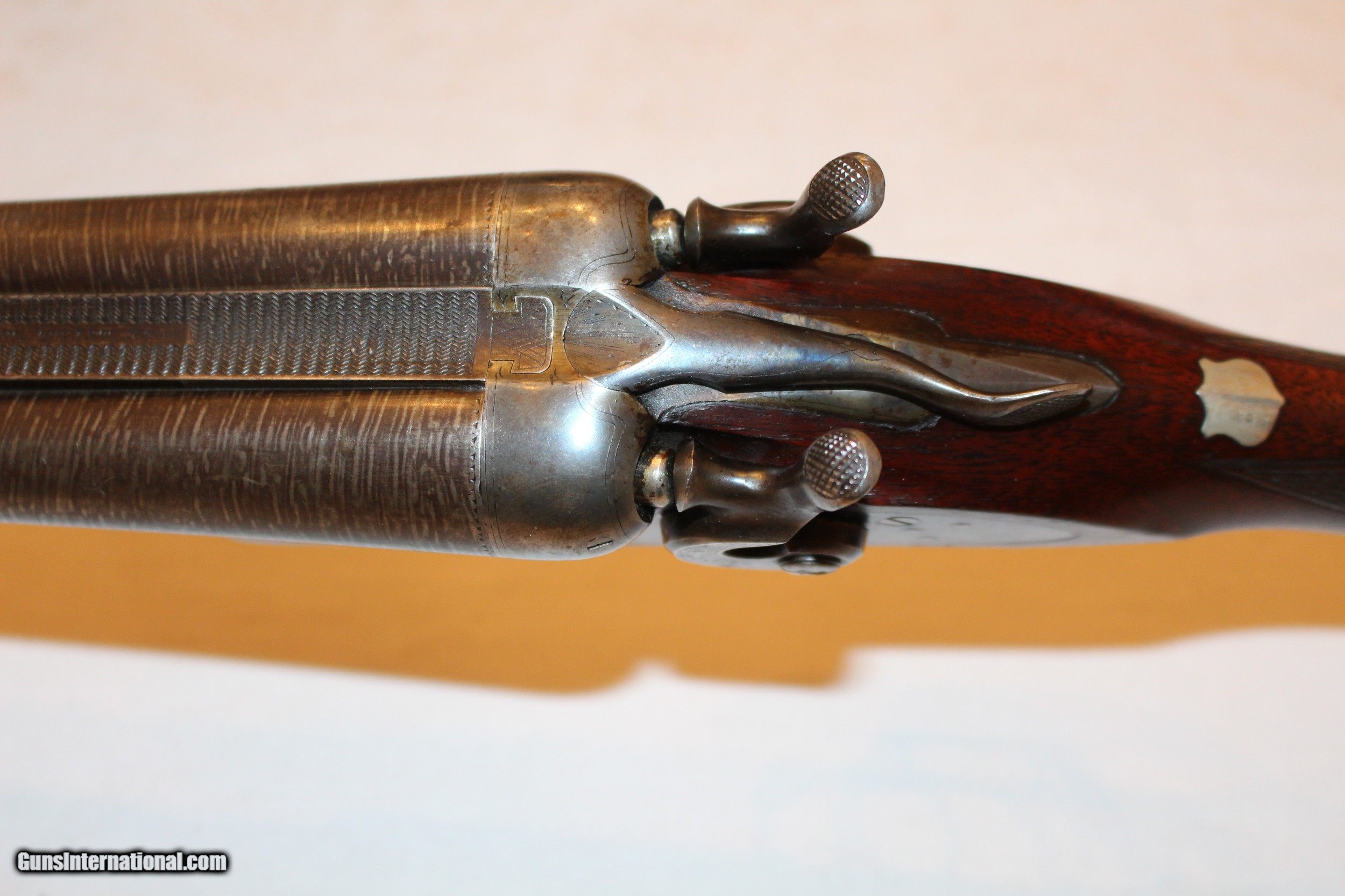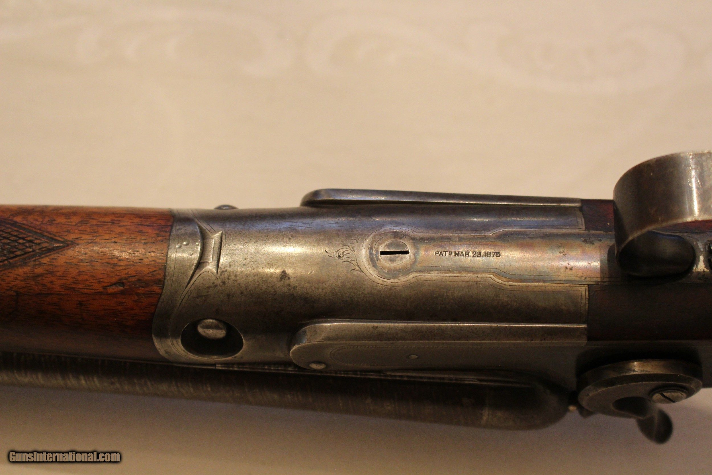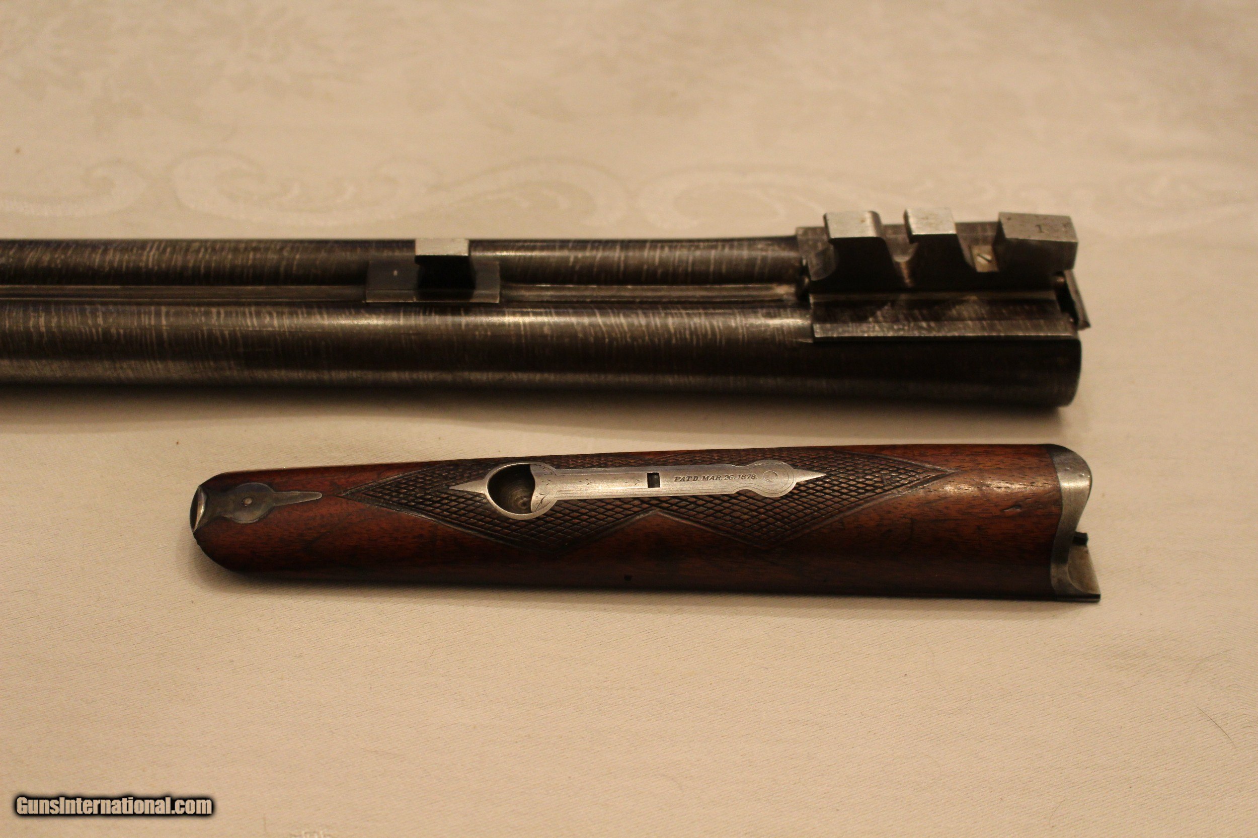 Description: Frame #1 Serial No.: 77473 1893 30" Twist Steel Barrels Pistol Grip Splinter Forearm 7 lbs. 1 oz. 3 1/8" DAH 2 1/8" DAC 13 1/2" LOP Very good condition. Locks up tight. Very solid gun. SOLD Antique: Yes |