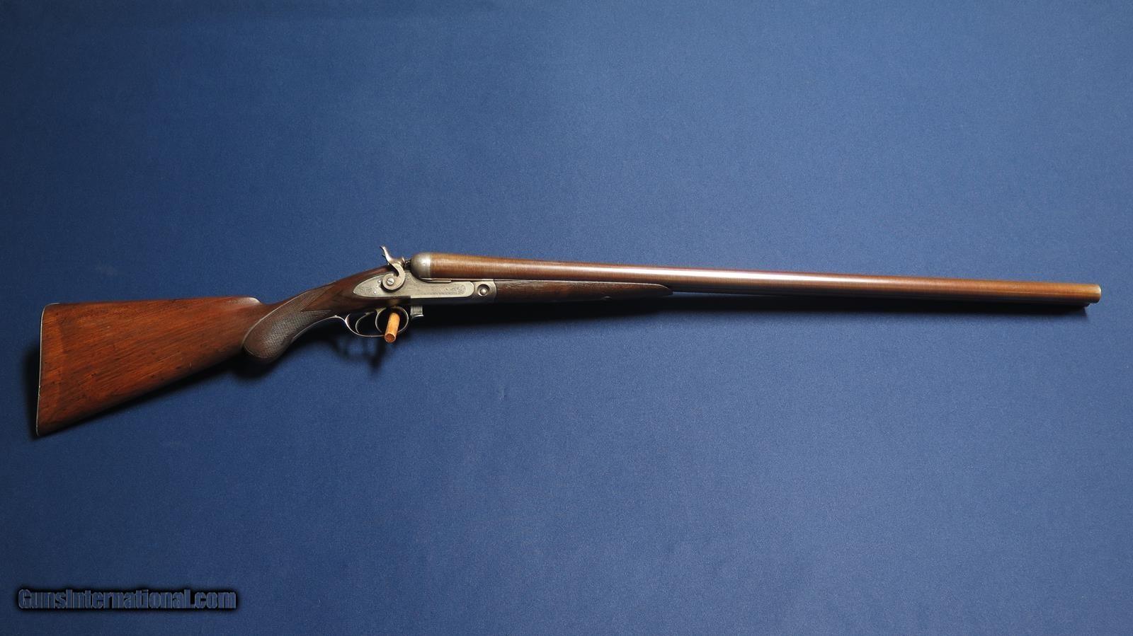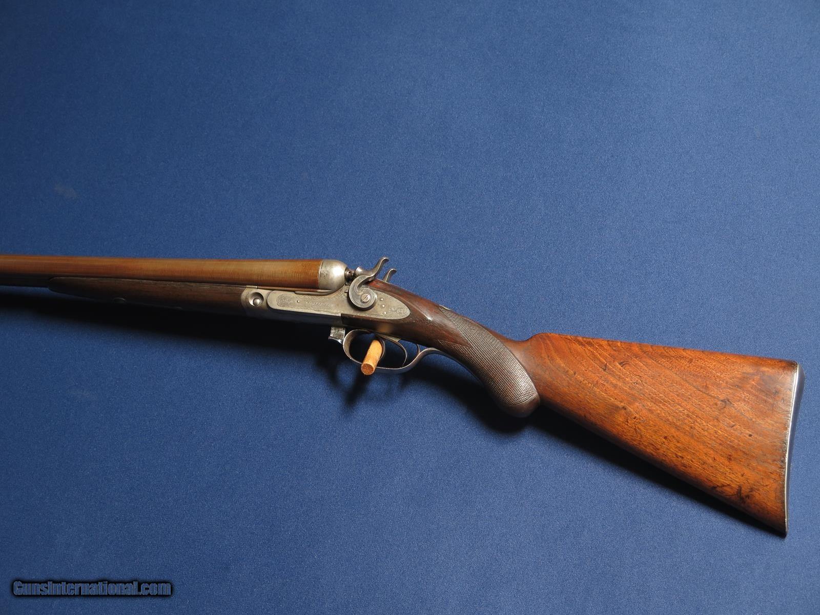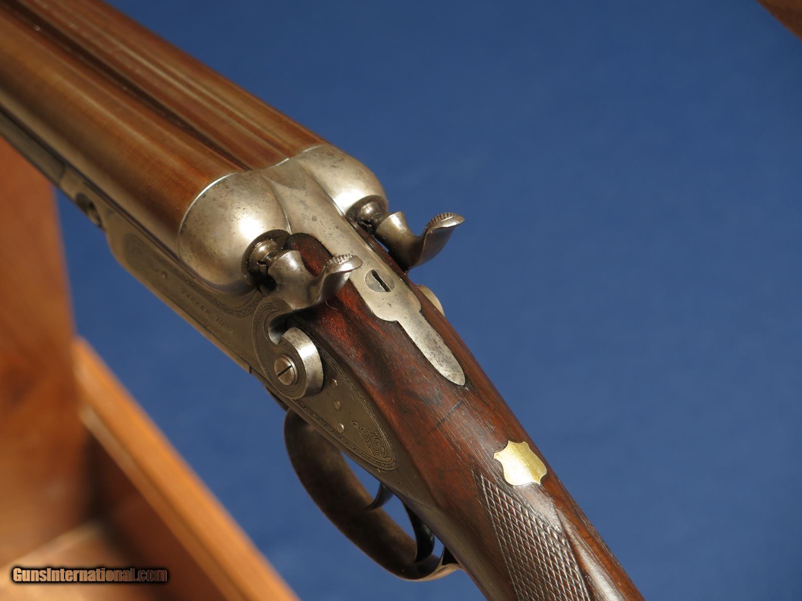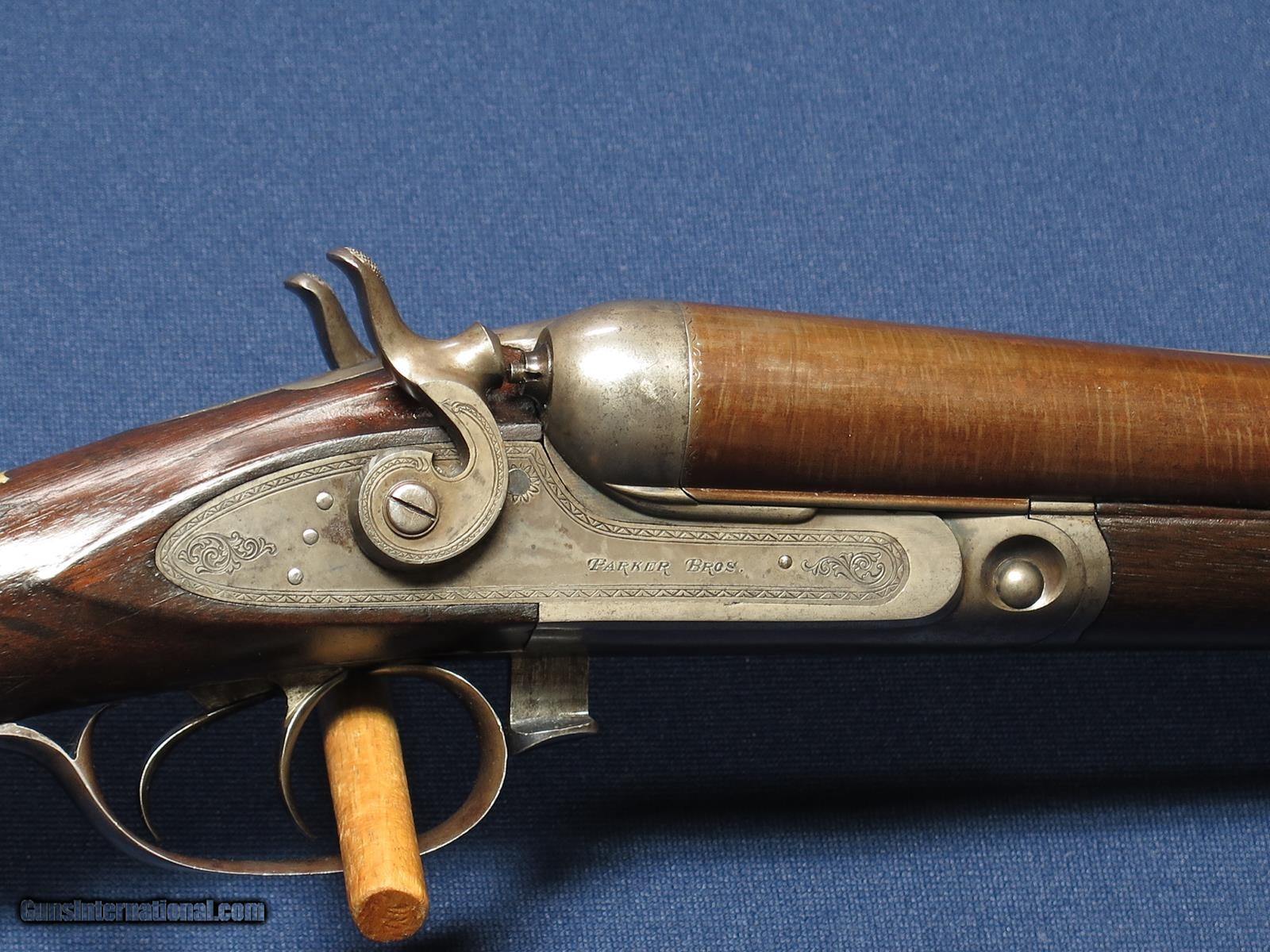 Description: Parker lifter hammer 10ga. SN 22,1XX.1881 mfg date. 30 inch damascus barrels. IC & M chokes. Double triggers. Extractor. 14 1/4 LOP metal butt plate. Very good bores. #3 frame. SOLD Antique: Yes Shotgun Gauge: 10 Gauge |