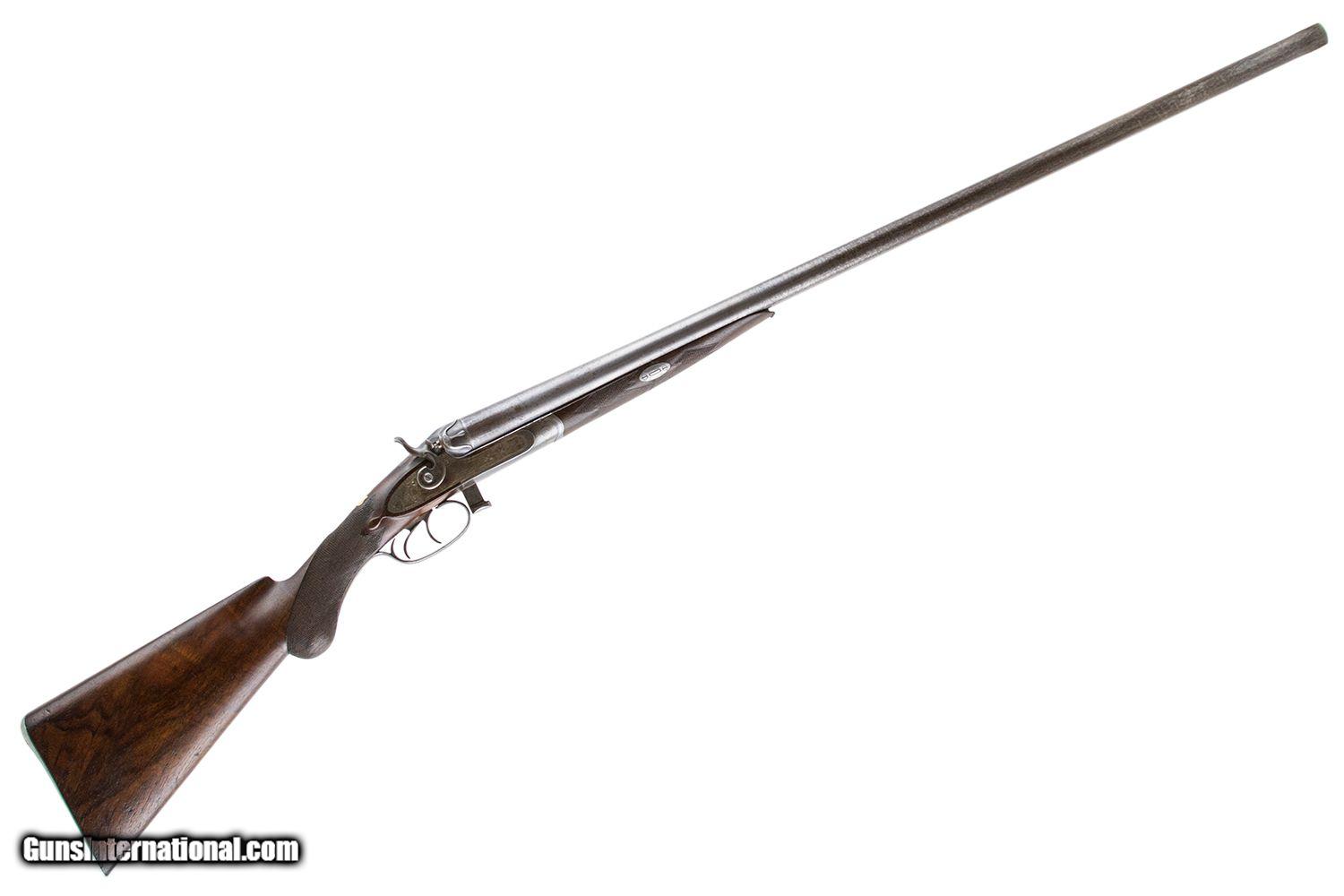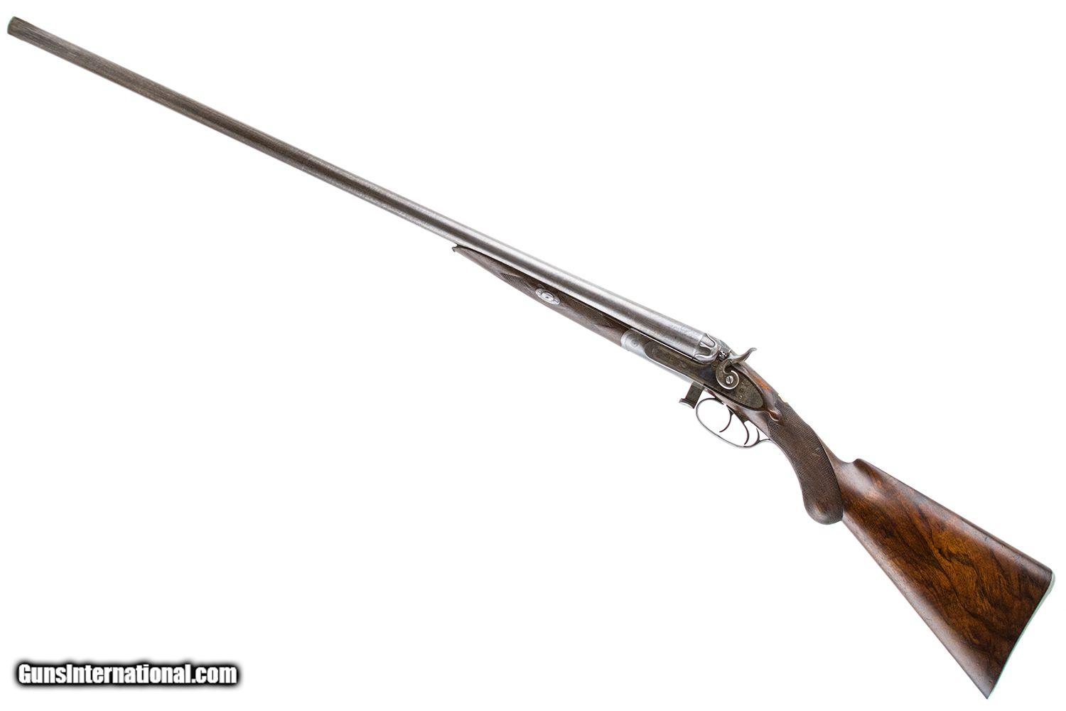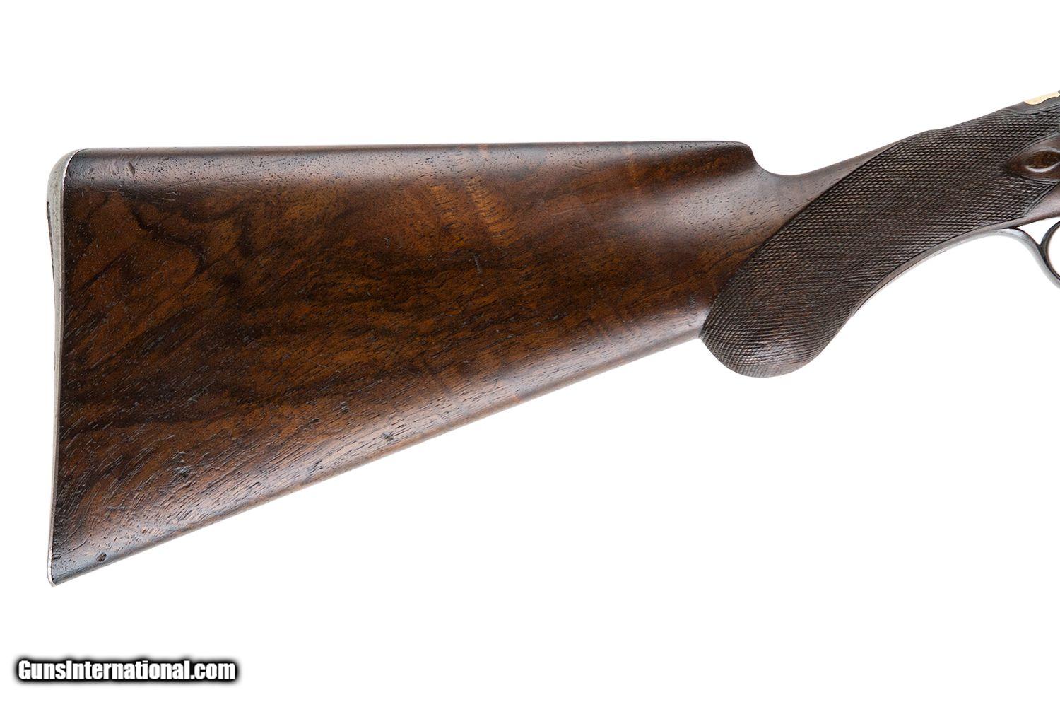 Description: 32" DAMASCUS BARRELS WITH CYLINDER BORES 2 1/2" CHAMBERS BORES ARE GREAT THE GUN IS ORIGINAL AND UNTOUCHED DOUBLE TRIGGER EXTRACTORS SPLINTER FOREARM PISTOL GRIP SKELETON BUTT 8LBS 4 OZ 2 7/8 DAH 2 DAC 14 1/8 LOP SOLD |