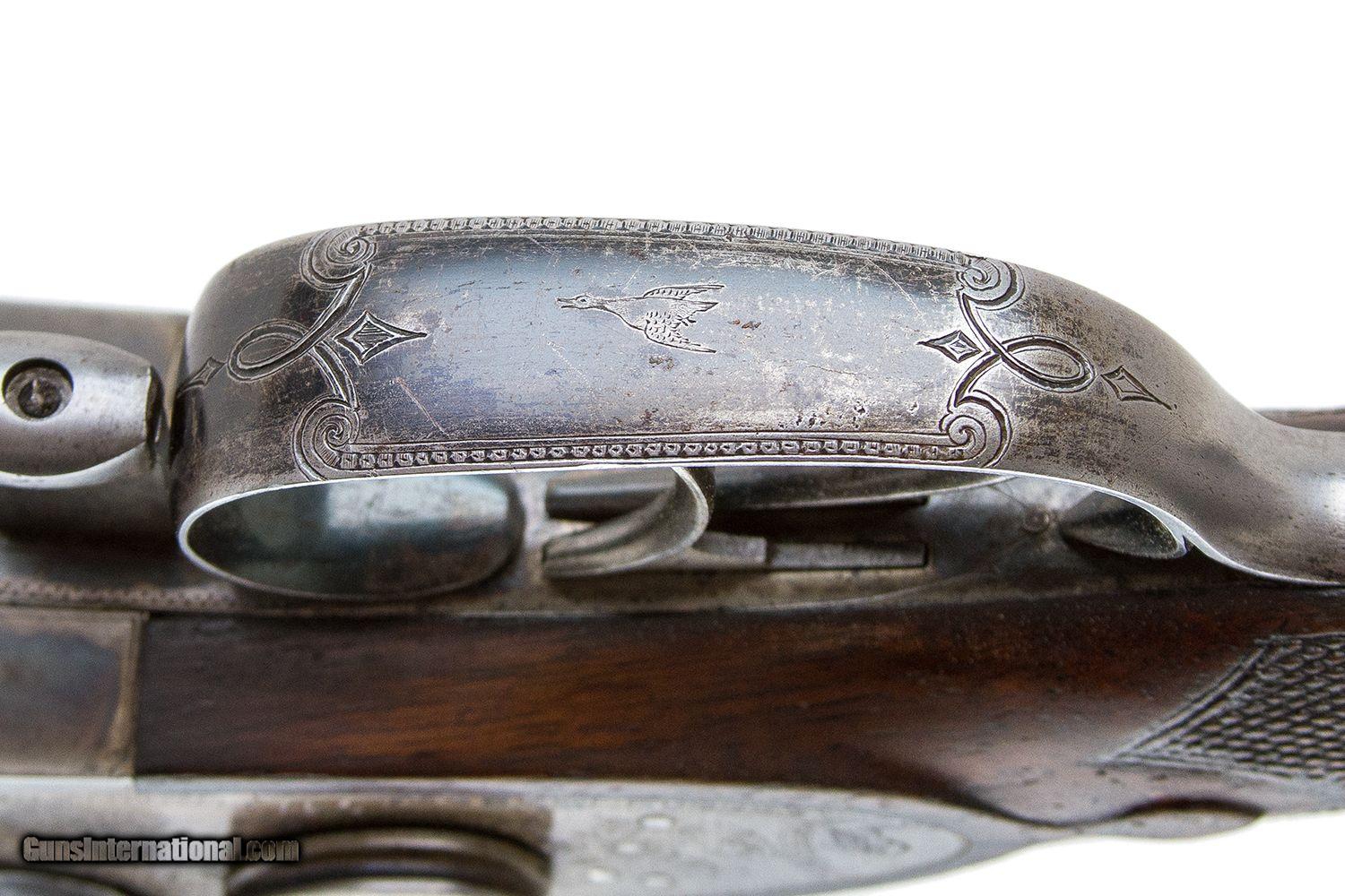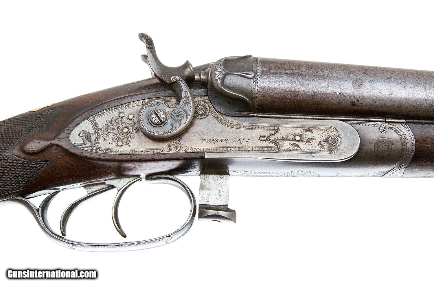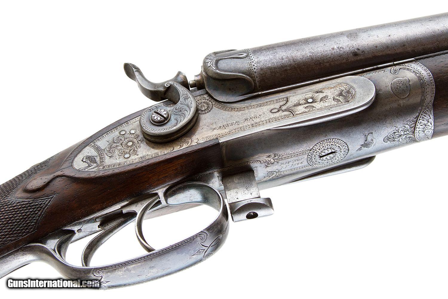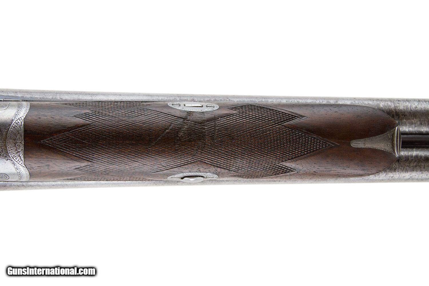 Description: 32" DAMASCUS BARRELS WITH CYLINDER BORES 2 1/2" CHAMBERS BORES ARE GREAT THE GUN IS ORIGINAL AND UNTOUCHED DOUBLE TRIGGER EXTRACTORS SPLINTER FOREARM PISTOL GRIP SKELETON BUTT 8LBS 4 OZ 2 7/8 DAH 2 DAC 14 1/8 LOP SOLD |