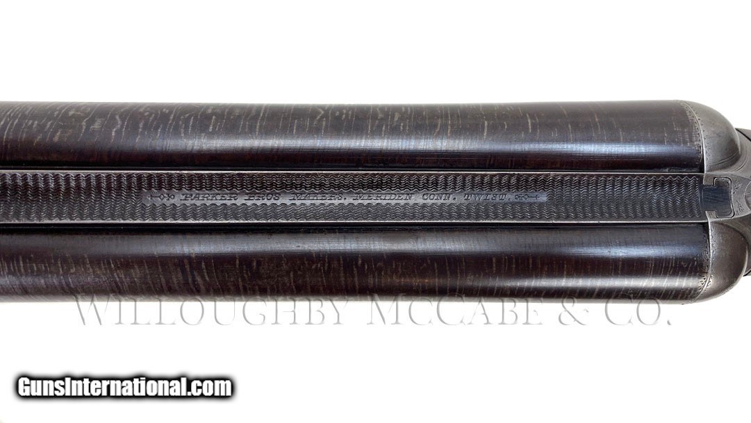 Description: Parker Straight Hand PH 10 Gauge. 32" PH twist barrels with very clean bores, no dents, light frosting in the right barrel ahead of the chamber, thick walls r-.038, l-.036. Chambers measure 2 5/8" right, near 3" left. Bore diameters are r- .809, l- .804 and .039 and .040 chokes right and left. Browning is older and faded with nice contrast showing the length of the tubes. The stock is clean with no observed cracks or oil soaking, chequering is soft, small handling marks throughout the buttstock and fore end, one larger ding in the wood on the bottom of the fore end, there is a small chip missing from the bottom of the dog's head plate. Stock dimensions are 13 5/8" LOP from the front trigger, 2 1/2" drop at heel, 1 3/4" drop at comb. The action is clean with nice triggers, no case color remaining, tight on face, safe is functional, screws are fair, blue worn on guard. This gun has really nice balance and my customer was shooting it with RST 10 ga shells. This is a nice original shooter.0597281 mhss 2100.00 + shipping SOLD Curio/Relic: Yes Antique: Yes Shotgun Gauge: 10 Gauge Manufacturer: Parker Model: PH Barrel Length: 32 Bore: Clean Condition: Good Manufacture Date: 1889 |