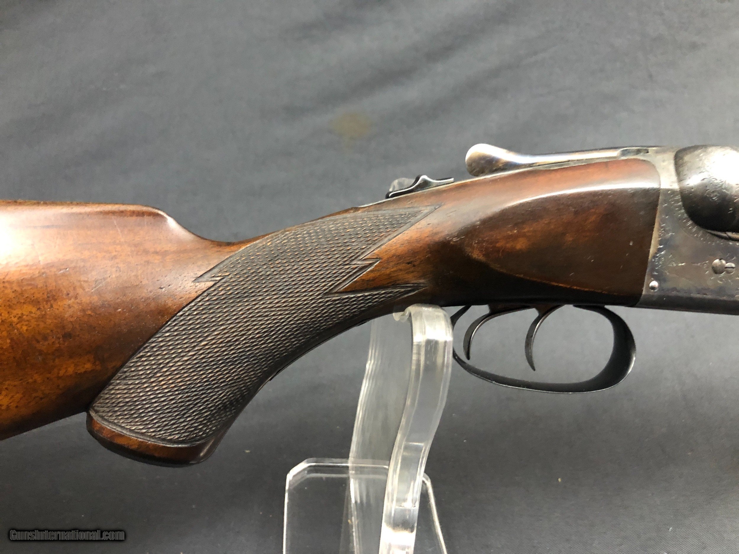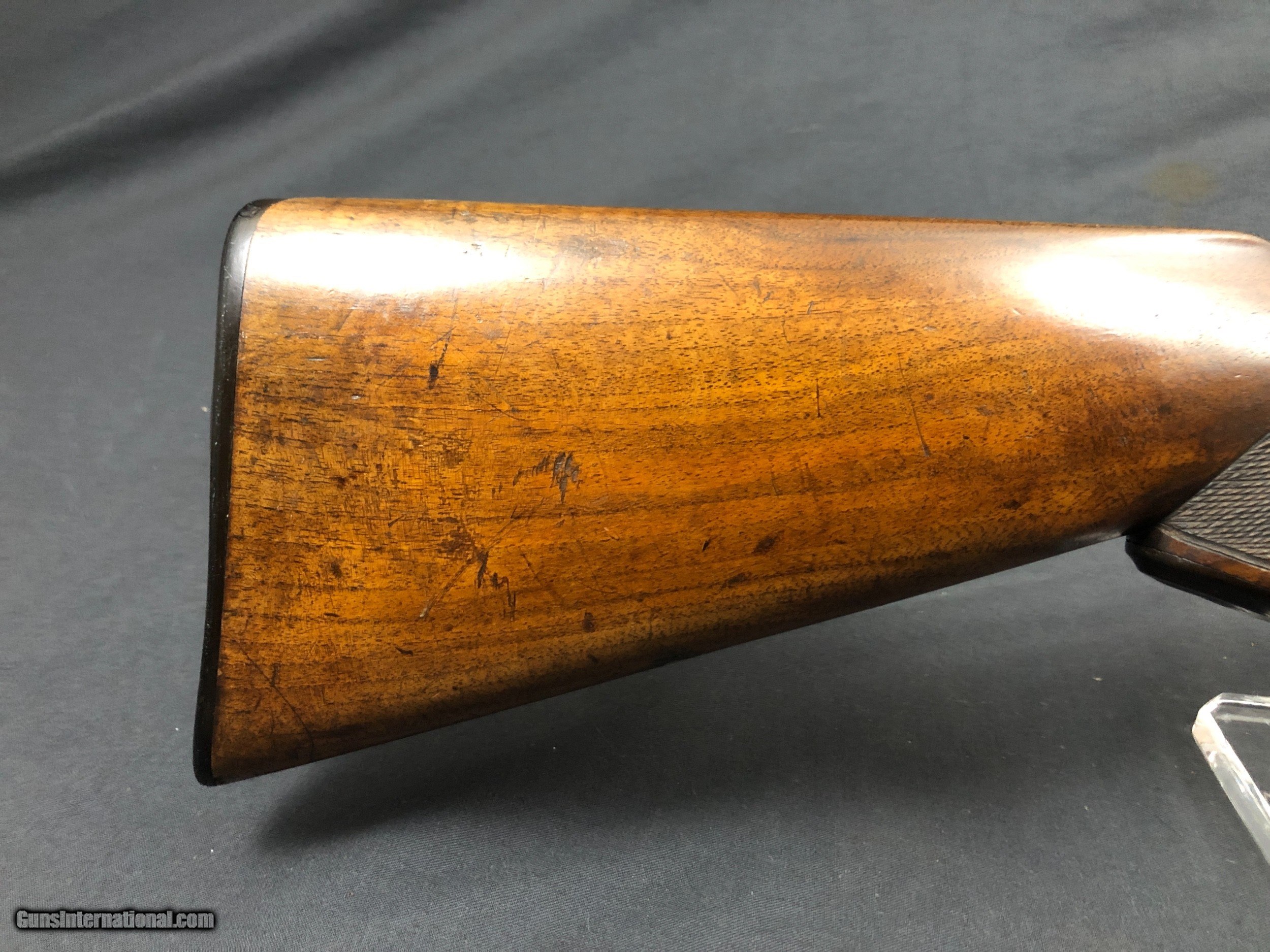 Description: SOLD!!! A Classic American Waterfowl gun. Locks up tight, barrels ,no dents. Bores remain unhoned, Bright with scattered imperfections, very shootable. Please call Mark 715-814-1295 Pack and ship $45 LAYAWAY: Layaway is available with 1/3 down of final total price including shipping/insurance within 7 days . Balance due in 45 days. Layaway Sales and guns modified at time of sale are FINAL with no refunds, no inspections, no returns. Chokes may be opened to your choice at time of sale for $50 per barrel . SOLD Antique: Yes Shotgun Gauge: 10 Gauge Manufacturer: PARKER BROS. Model: EH Barrel Length: 32IN Chambers: 2 7/8IN Condition: VERY NICE Barrel Type: DAMASCUS Stock Comb: 1 7/8IN Stock Heel: 2 15/16IN Butt Pad: DOGS HEAD LOP: 14 5/16IN Weight: 9LBS 3OZ Manufacture Date: 1889 Choke Left: FULL Choke Right: FULL |