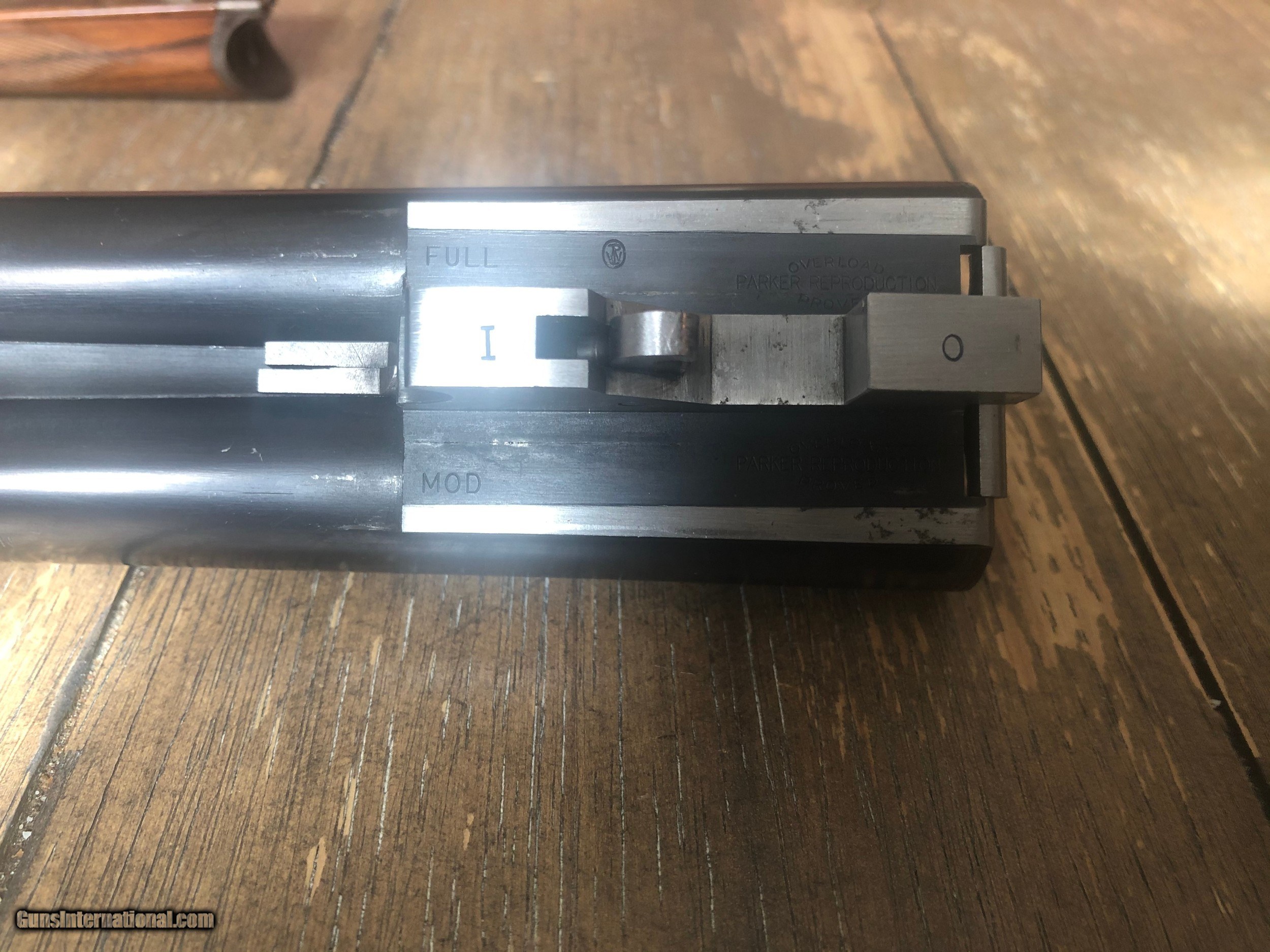 Description: Parker Reproduction DHE 20 gage 28inch 2&3/4 & 3 inch SOLD Manufacturer: Parker Model: DHE Serial Number: 533 Barrel Length: 28 in Bore: 20 gage Chambers: 2 3/4 and 3 in Ejectors: yes Condition: 98% Metal Condition: 99% Wood Condition: 99% Bore Condition: 100% Barrels: 28 in Action: Box lock Triggers: single Butt Pad: DHBP LOP: 14 1/2 Choke Left: Full Choke Right: Modified Case: Leather |
