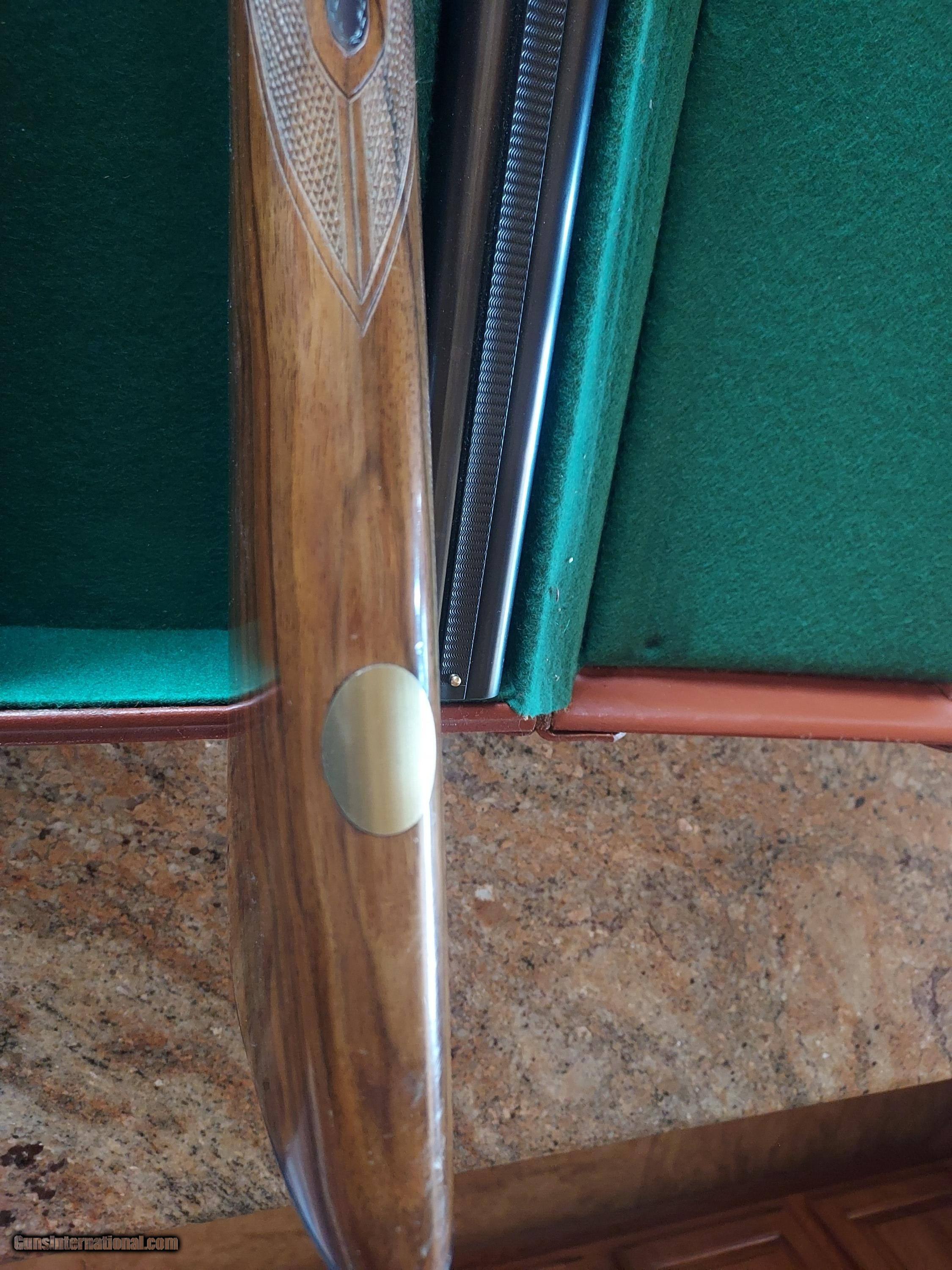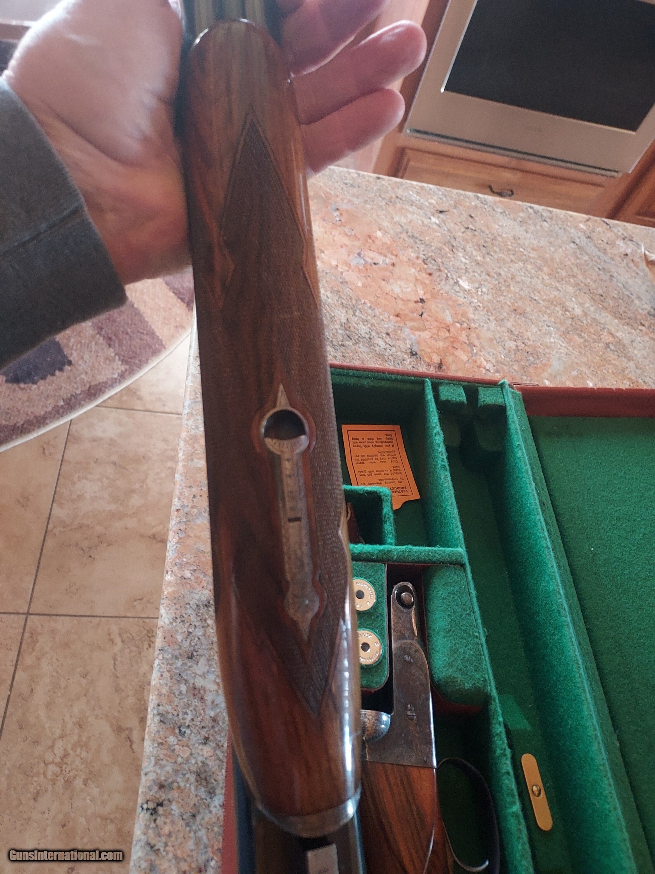 Description: This lightly fired single selective trigger, beavertail forearm 20 gauge comes in the maker's case with the key and snap caps. The case color is very vivid and the tigger stripe wood is exceptional with a few marks on the wood, as shown. Price: $4,400.00 Contact Seller |