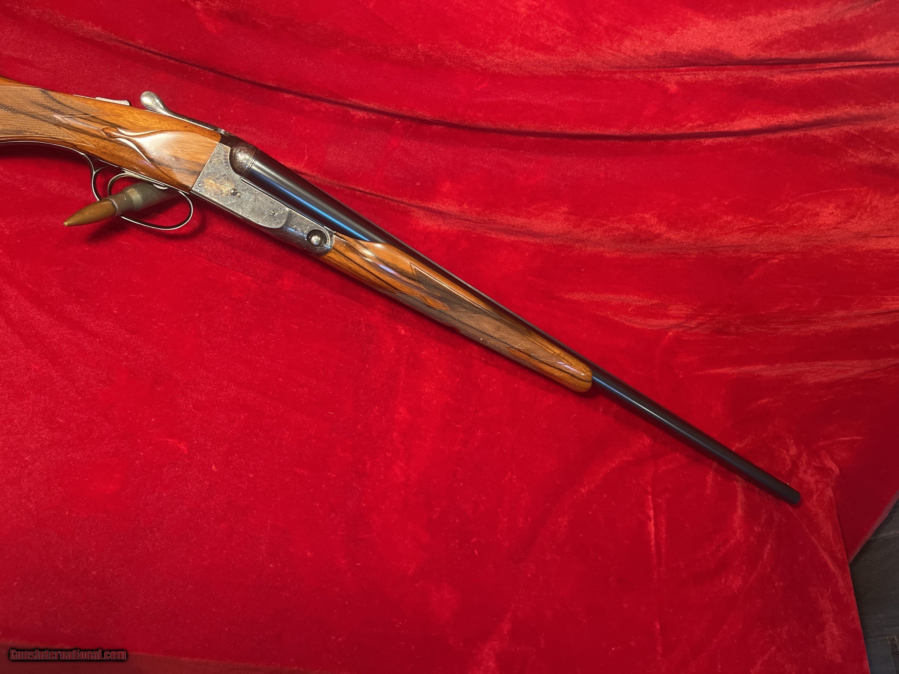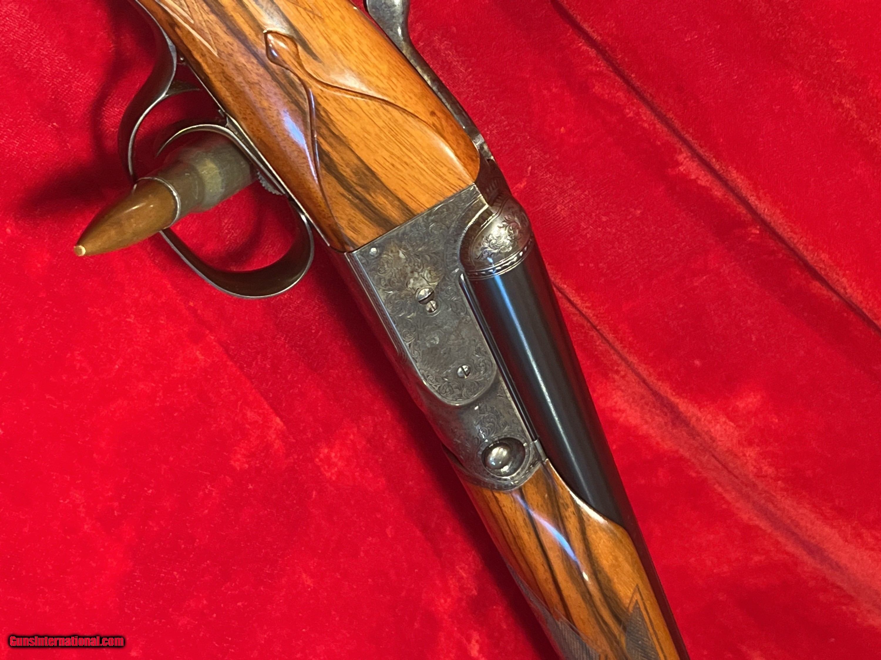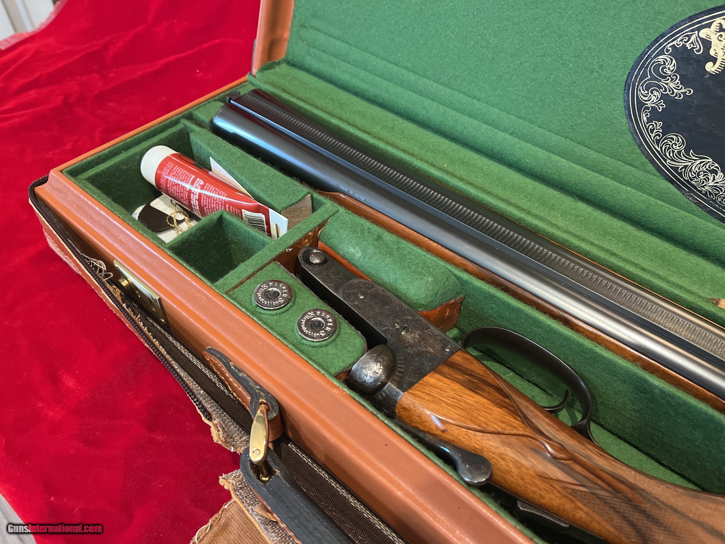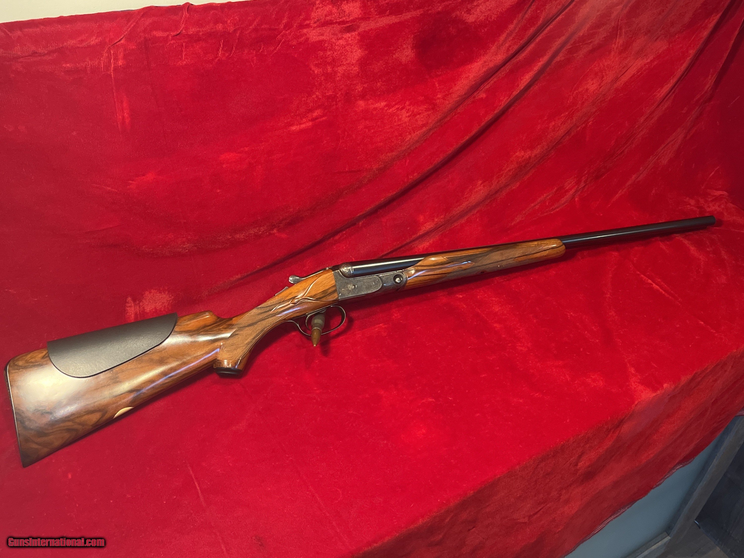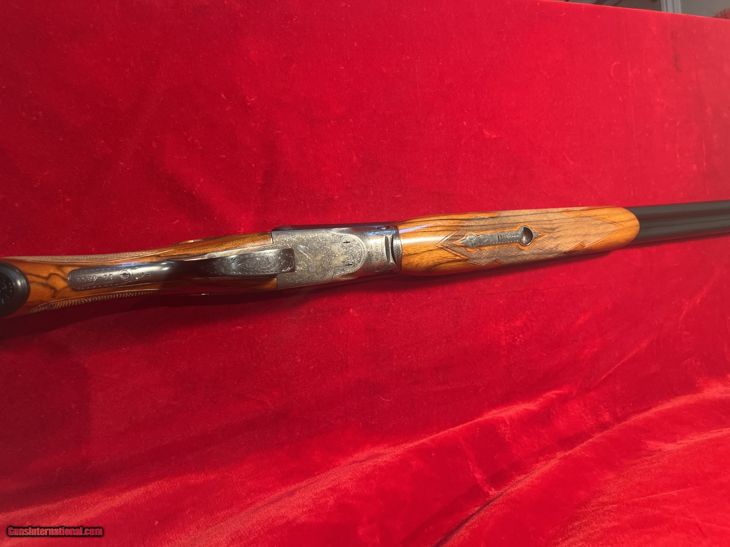 Description: Up for sale we have a beautiful Parker 20 Gauge SXS W/ an engraved, case-hardened receiver. This is a side by side shotgun in fantastic condition that looks to be Like-New and barely fired. The owner added a cheek pad on the stock which can be easily removed however it is comfortable for the average shooter if desiree. . The barrel chokes left to right are Mod/ImpC. The barrel is 26 inches long and chambered for 2 3/4” shells. The length of pull is 14 inches to the buttpad. The drop at heel is 2.5 inches and the drop at comb is 1.5.. This is a cast off shotgun intended for a right hand shooter. The action is smooth and the trigger pull breaks clean. The receiver is engraved beautifully on a case-hardened finish giving it a beautiful tone. Engraved rib. This gun would make a beautiful collection piece or range shotgun. Factory luggage with additional canvas case included as shown. Parker is made by Winchester so this gun is guaranteed to be as quality as any Winchester would. SOLD Shotgun Gauge: 20 Gauge |