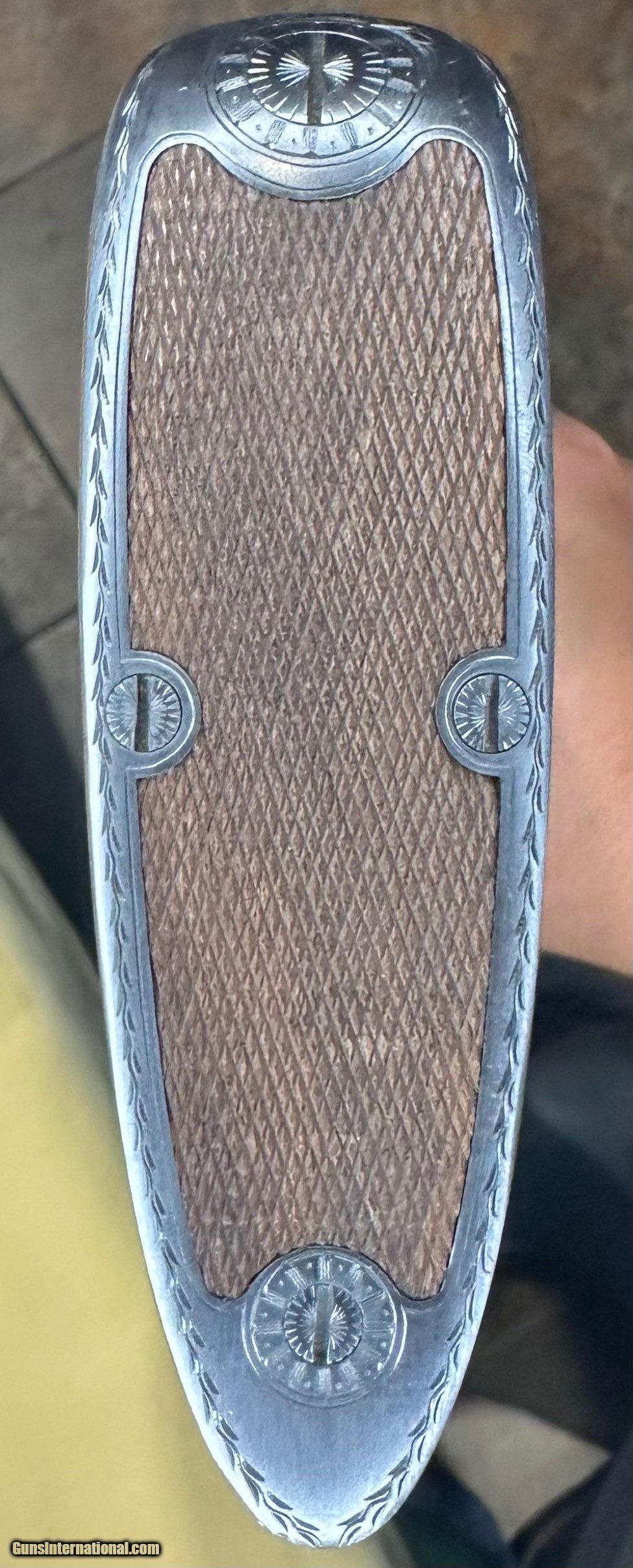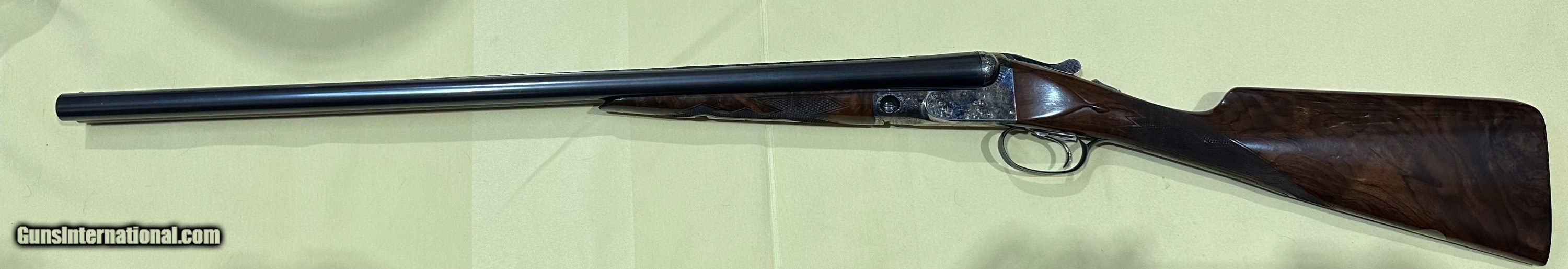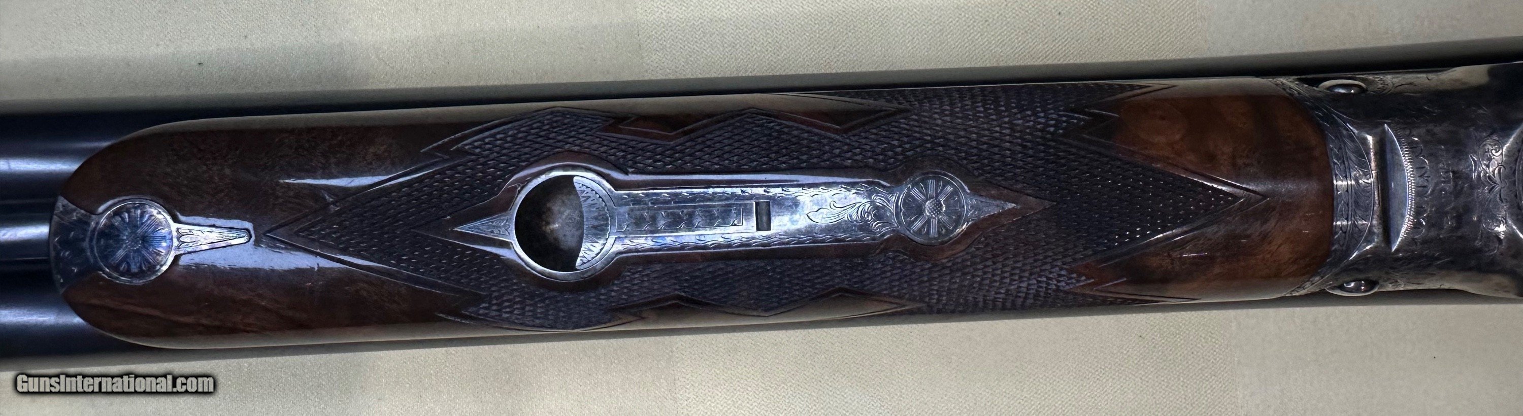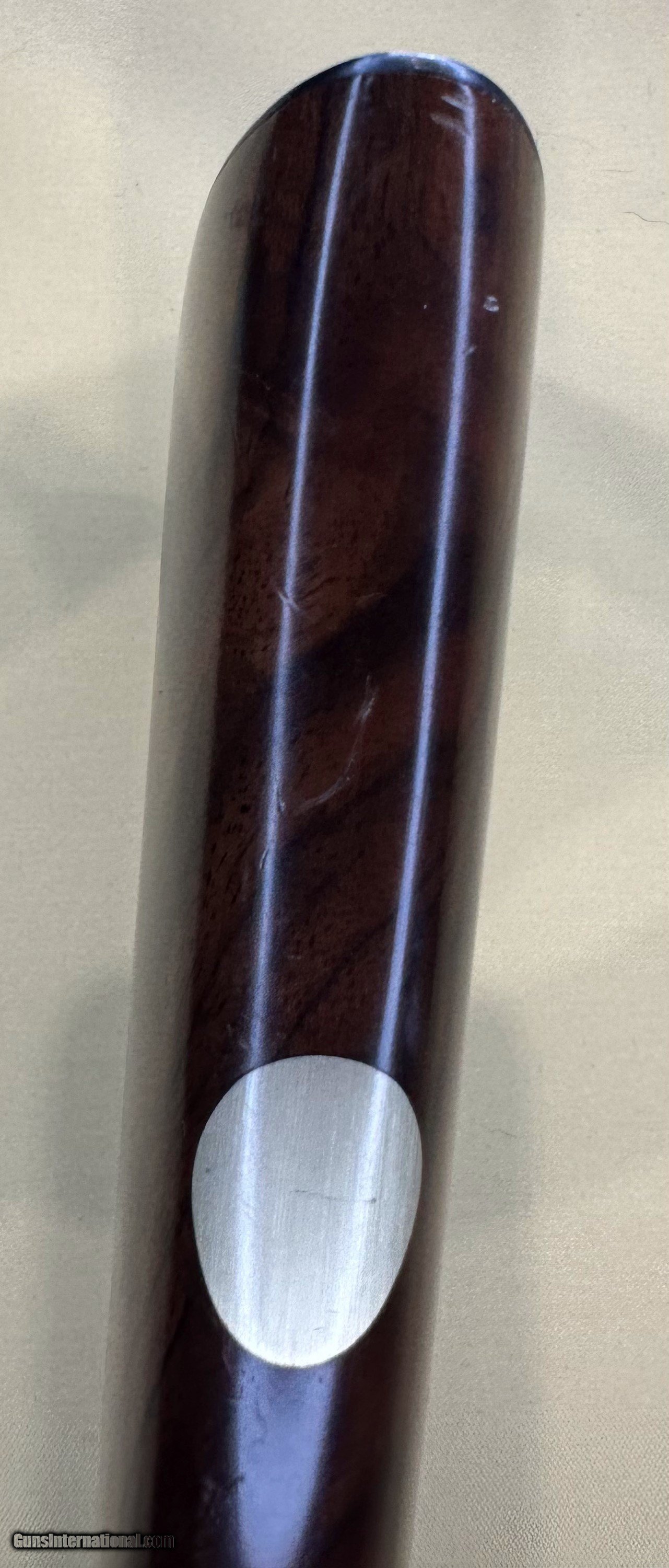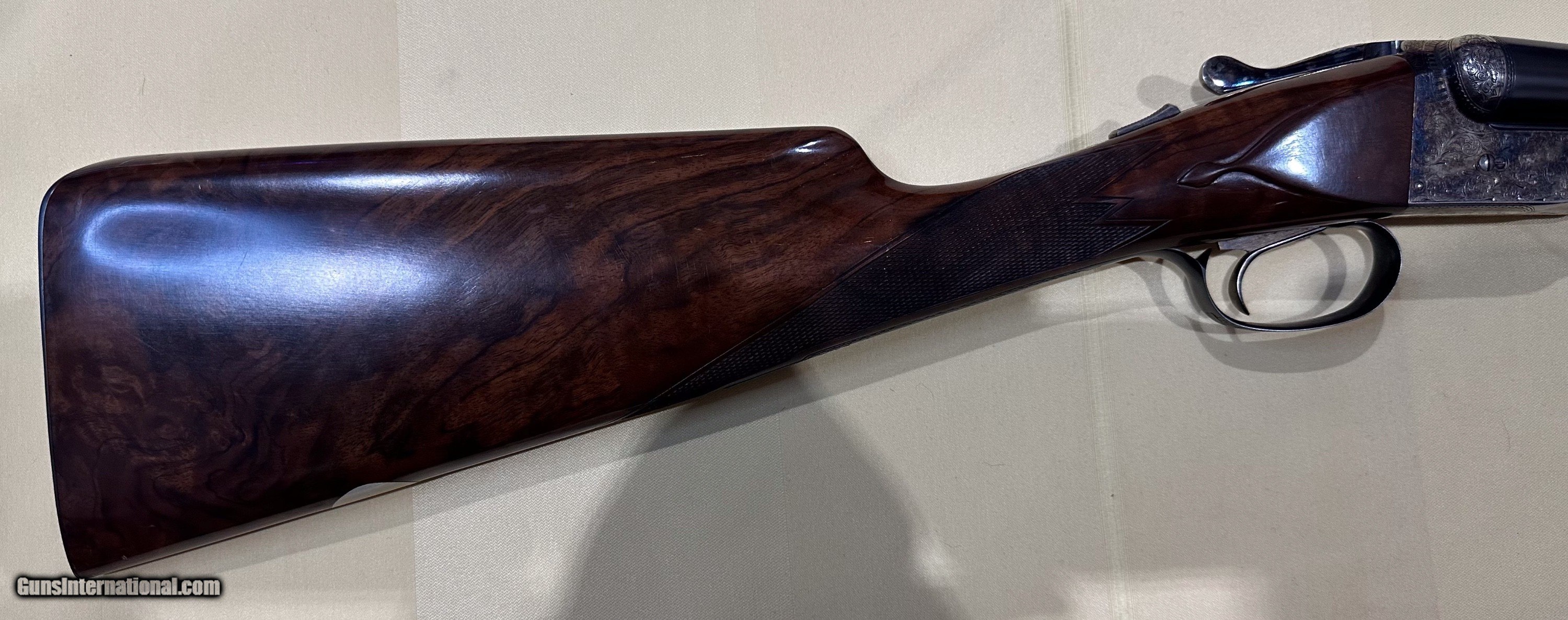 Description: Good condition Parker repoduction. Imported by Winchester in the less-produced 12 Gauge. 26" barrels, MOD/IMP chokes, 2 3/4" chambers. The gun features beautifully figured wood. Though there are some handling marks in the stock and forearm, with the worst being some scratches on the top and bottom of the stock near the base (pictured). The checkering remains crisp on the straight-gripped stock and splinter forend. The metal is in very good condition with both the bluing and case coloring remaining bright. Typical intricate engravings are present on the barrels, receiver, screws, and skeletonized butt plate. I estimate the gun to be in 95% or better condition overall. The original italian-made leather luggage case and keys are included. It too is in overall good condition, though there is some staining/discoloration at one end (pictured). The original "Parker" branded snap caps and canvas cover for the case are abesnt. Condition evaluation has been made to the best of my abilities in consultation with the 44th edition of the "Bluebook of Gun Values". It is my intention to provide an accurate description, documented with attached photographs. Should you have any specific questions, please do not hesitate to contact me to request additional information or photographs. Shipping w/ Insurance: $75 SOLD Shotgun Gauge: 12 Gauge Serial Number: 12-312 Barrel Length: 26 Choke Left: MOD Choke Right: IMP |
