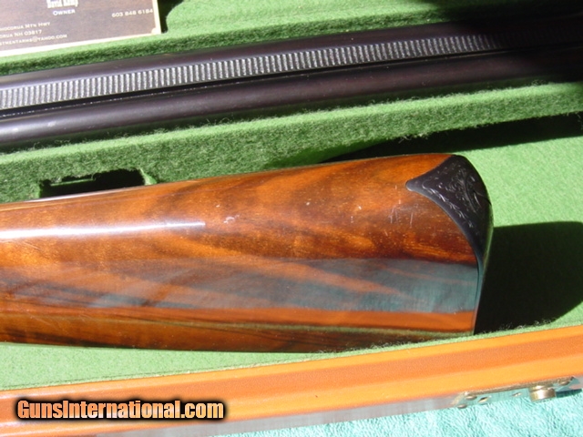 Description: SOLD-Shipped and delivered ! Parker Reproduction (by Winchester) DHE 20 ga with 26" matted rib barrels IC/M with the leather case.keys and snap caps ! Great deal on one you can enjoy hunting with.Its been used but still in nice shape,nice wood too ! The,engraved-Setter on left side ,Pointer on right with flying Pheasants on bottom, frame has toned nicely-as typical with these, the case on these wears quickly and is in just protected areas now. The Wood is all there and nicley figured,skeleton buttplate and checkering is excellent, there are few minor handling marks here and there on the buttstock and forend. LOP 14 1/2, DAC and DAH 1 1/2" and 2 3/8 " weighs 6 lbs 7 oz. The barrels are all of 95-97% with a small rub just above foreend on right side(have close up pics available).Lever is still right of center,bores are fine,the leather case with the Parker By Winchester Label intact, has several rub marks and couple small cuts on the corner pieces but both keys are present as are the snap caps ! A neat Parker DHE to use and enjoy and not worry about losing money if you do. with the leather case/keys and snap caps-,plus shipping and insurance (probably around $40-50) at cost.Best priced Parker Repro 20 listed for sale ! Happy to send along more pics,answer questions over phone or email.Please email your phone number so I can call back if I miss the call,thanks Be sure to look at my other offerings for more Colt Saa's,Colts, Rugers, Brownings,Uberti and other guns. Local New Hampshire Buyer can view/purchase gun in person-after 4473/ NICS check, at Investment Arms business premise in New Hampshire Country Store, Rt 16 Chocorua NH.Please email/call (603.323.8200 ) first to be sure its not sold. We also Buy and Consign Guns Be sure to check my other guns for sale for sale.Colts Brownings,Rugers,Taylors Uberti's and others. Payment by bank check,USPS money order-personal check held until clear. Buyer must provide dealers signed 01 FFL-email or hard copy,I will include a copy of my FFL with shipment. 3 Day non firing/non turn inspection period (gun must be in same condition if returned) on used guns only,buyer pays shipping and insurance both ways if returned. No return of New Guns. SAFETY NOTICE: Buyer is solely responsible for determining that a used gun is safe to shoot.The firearms offered has been given a visual inspection for collection purpose only. It is a requirement that any used firearm be inspected by a qualified gunsmith before firing. By purchasing the firearm, the buyer agrees to hold seller harmless against damages, injury, or death caused by defective merchandise SOLD |
