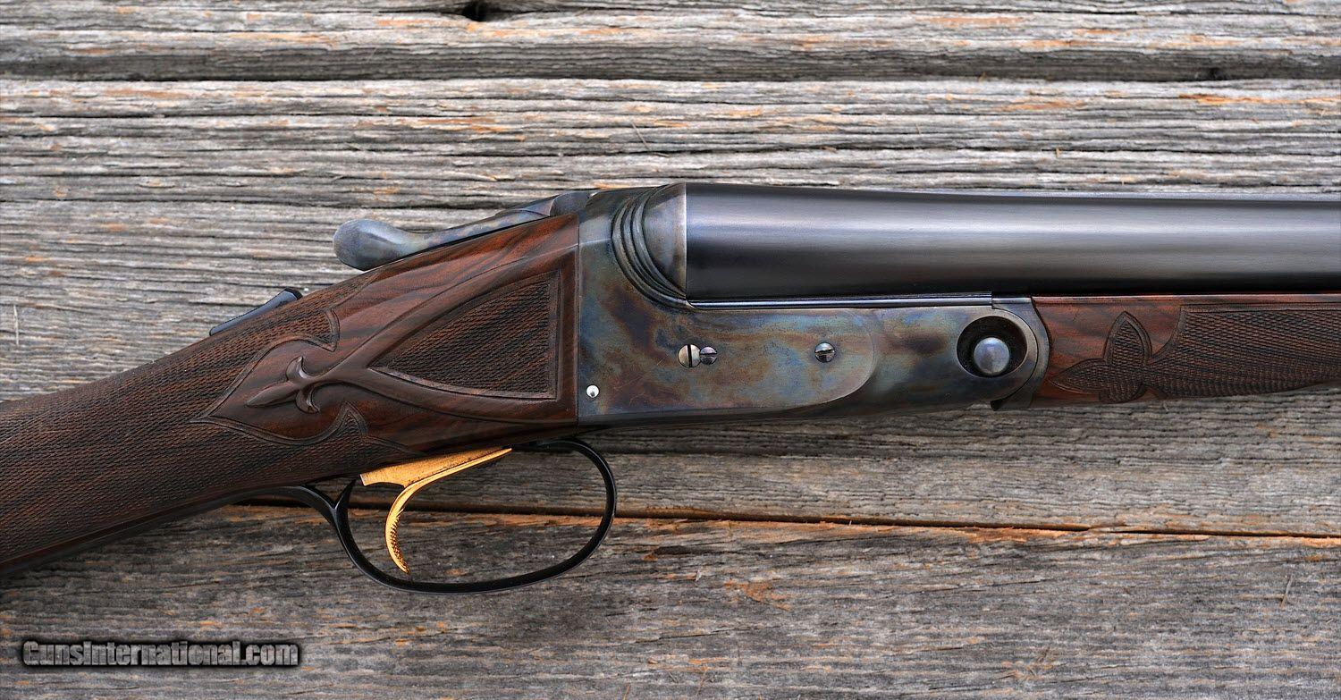Description: Parker Repro - 12 Custom - 12 ga - Item Number: PAR12-077 Shotgun type: SxS Action: Boxlock Ejectors: Yes Trigger: Single Grip: Straight Grip Forend: Checkered Lop: 14 3/16 " Type of butt: Skeleton Buttplate Drop comb: 1 3/8 " Drop heel: 2 1/8 " Cast amount: 0 " Weight: 7 lbs, oz Manufactured in: Japan Finish: Case Colored Overall condition: Very Good Stock condition: Very Good Metal condition: Very Good Stock: Original finish Metal: Original finish Type of Case: none Extra barrels: 0 Barrel info: Gauge: 12 ga Chamber: 2 3/4 " Length: 26 " Chokes: IC/M Rib type: Concave Comments : Beautiful gun with a few light blemishes. SG-77 SOLD |