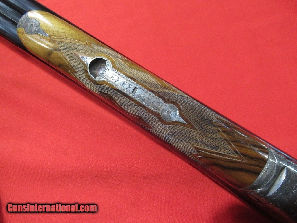 Description: Factory original and in near new condition. This gun measures 1 3/8" x 2 1/8" x 14 3/4" over the skeleton butt. It is equipped with double triggers, pistol grip stock, and splinter forend. Factory case included. 20ga/26" IC/Mod and 16ga/28" Mod/Full. SOLD |