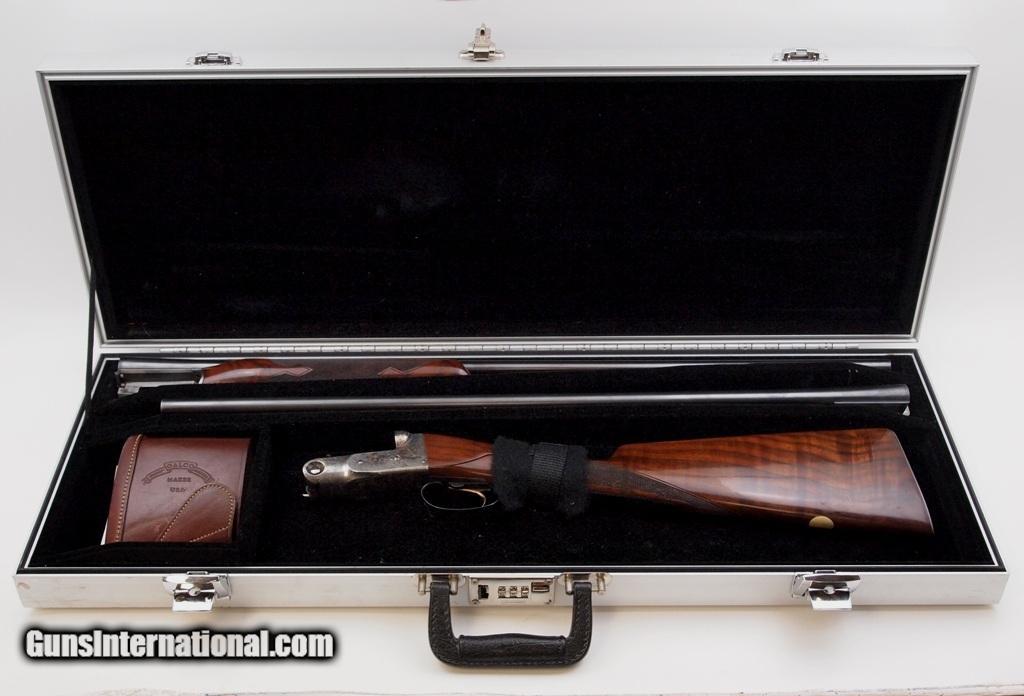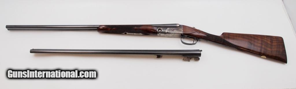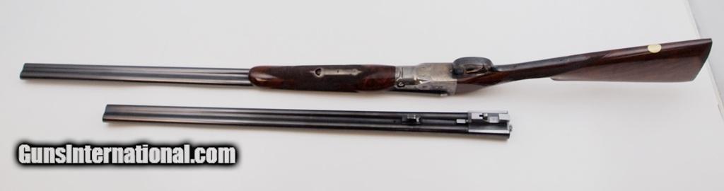 Description: Parker Repro DHE S/S 28 GA 2 3/4", 2 Bbl Set With Americase aluminum Case, barrel 1 has 28" with fixed FULL/MOD choke bbls, barrel 2 has 26" MOD/IMP CYL choke bbls, engraved receiver with hunting dogs on both sides and pheasants on bottom - trigger guard - butt plate, very nice checkered straight stock and forearm with light handling marks, LOP - 14", DAC - 1 1/2", DAH - 2 3/8", gold trigger, metal butt plate, and GALCO removable leather recoil pad. Reproduction by Winchester, fabricated in Japan to original Parker specifications and so authentic that most parts are interchangeable with late Parkers made by Remington. Only 4,203 made in 28 GA. Add 3% for Credit Card Shipping $30.00 SOLD |