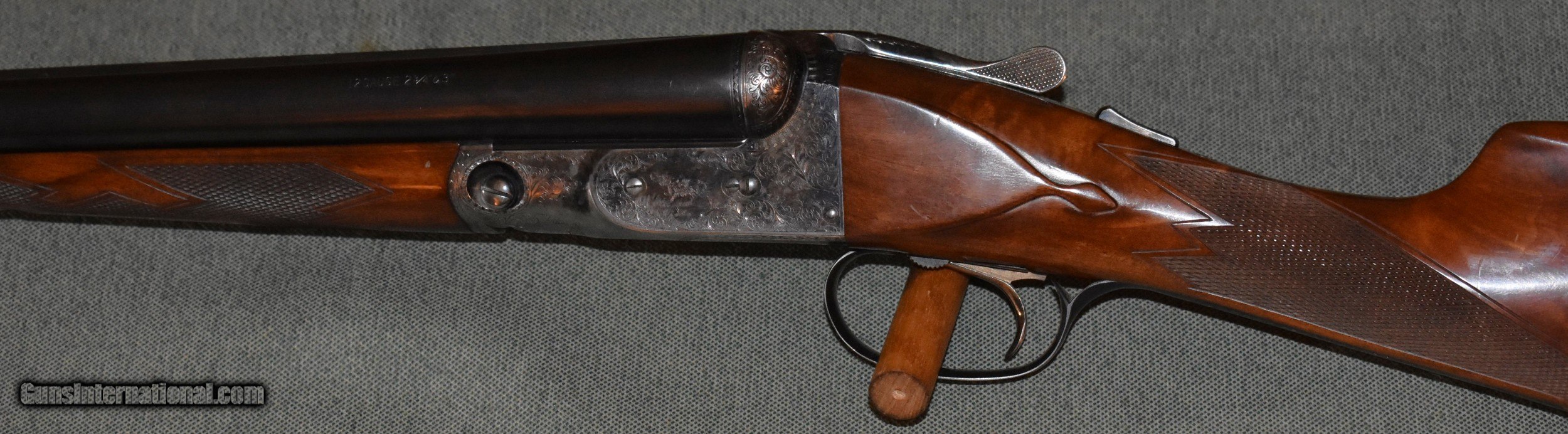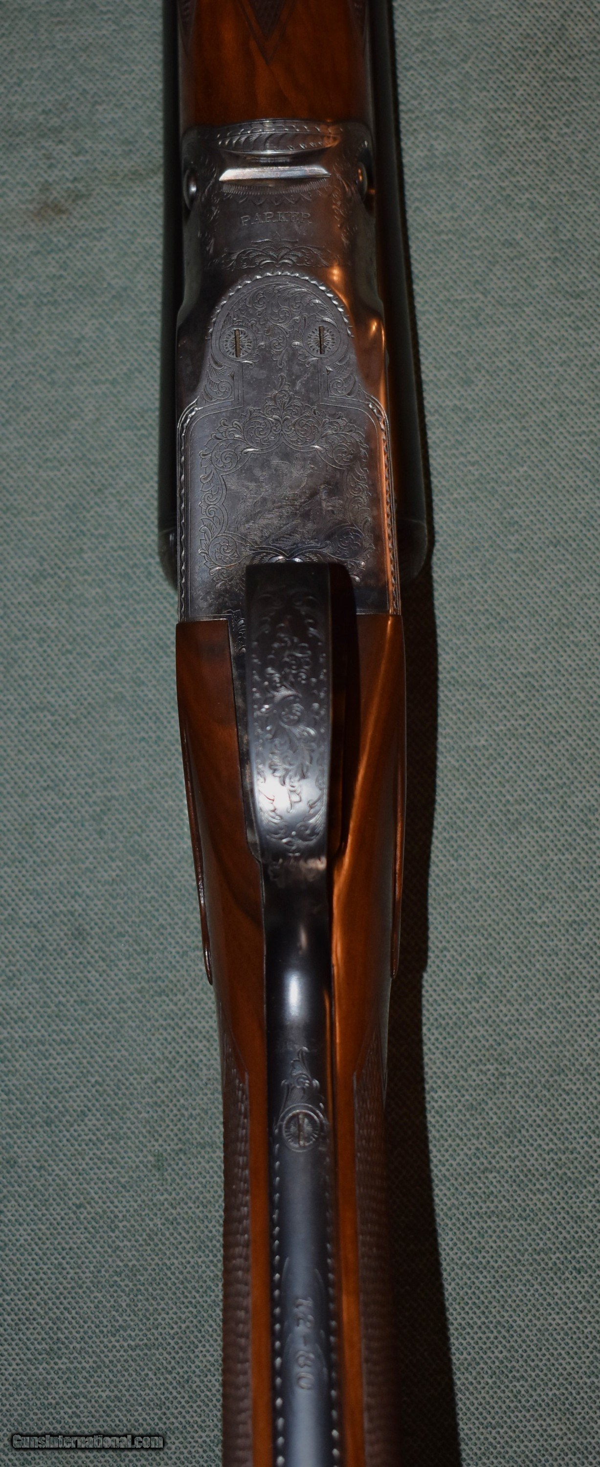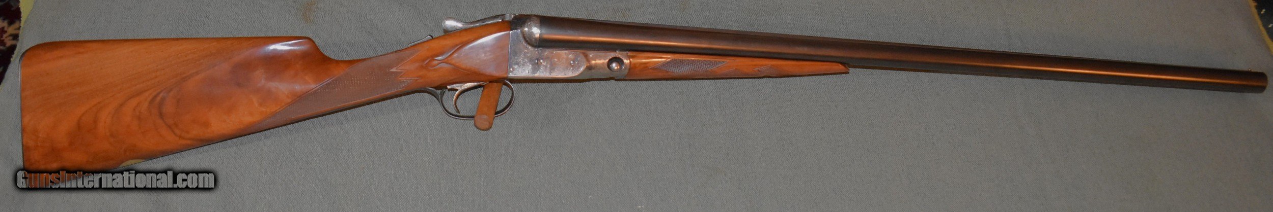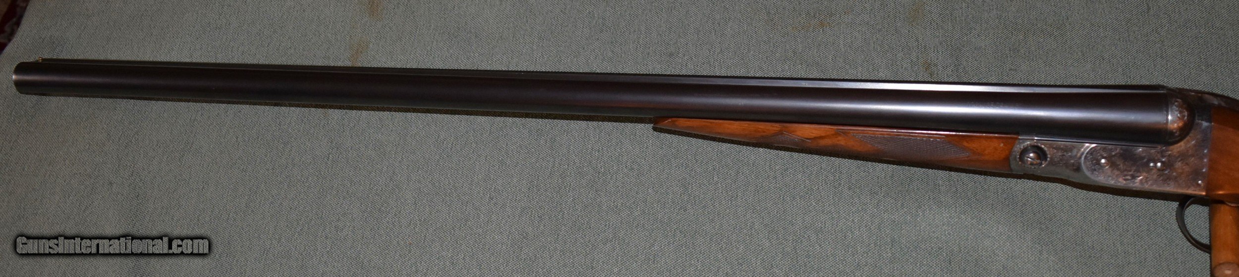 Description: Parker Reproduction 12 gauge DHE "Steel Shot Special". This gun was in the first shipment of SS marked guns shipped to Paul Jaegers in Grand Jusction Tn. It has 28" barrels choked IC (.006") and Lt modified (.016"). It has 3" chambers,straight grip stock,single selective trigger,ejectors,a skeleton buttplate,and a splinter forend. The gun is in excellent original conditon retaining 60% of the case colors,99% of the barrel blue,and 98%of the stock finish. The gun comes in the factory case with canvass cover,manual,warranty card,and snap caps. This is one of only 360 SS marked steel shot specials produced. Specially designed to shot steel shot mod and full and lead shot IC and mod. A great all around gun for ducks,pheasants,upland birds,or clays. I personally have the first one off of the line and have shot just about everything with it. It has shot ducks,geese,quail,turkeys,and clays. They are great guns and good values. SOLD Shotgun Gauge: 12 Gauge Manufacturer: Parker Reproduction Model: Steel Shot Special Serial Number: 12SS-00080 Barrel Length: 28 Chambers: 3 Ejectors: Yes Condition: excellent Metal Condition: excellent Wood Condition: excellent Bore Condition: mint Action: Double Barrel Triggers: Single Selective Butt Pad: Skeleton Bittplate Manufacture Date: 1985 Choke Left: modified Choke Right: improved Engraving: DHE Case: Factory Case |