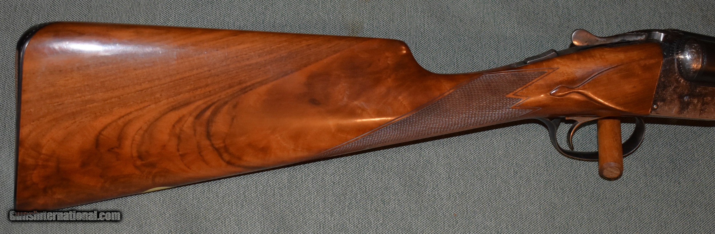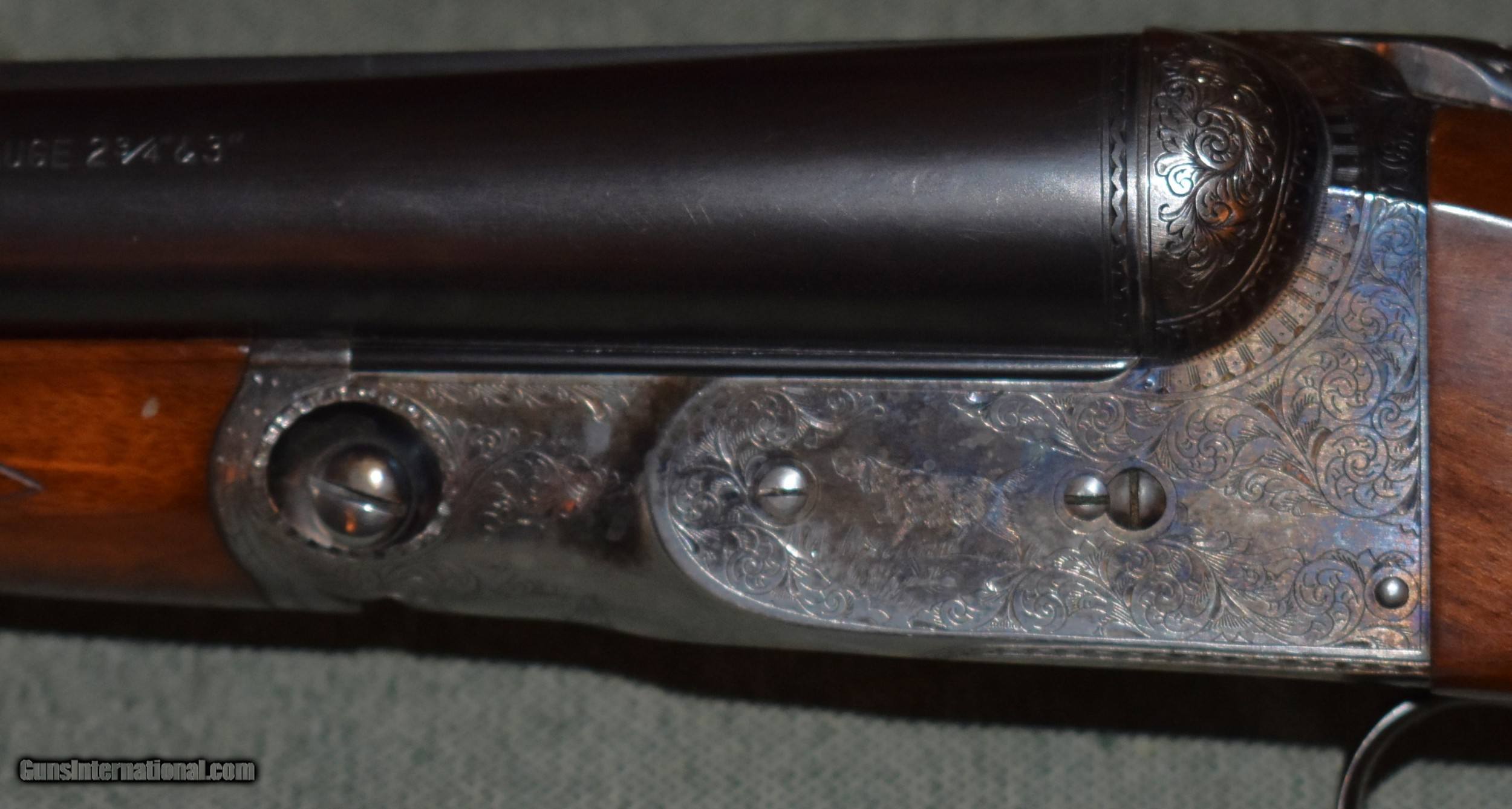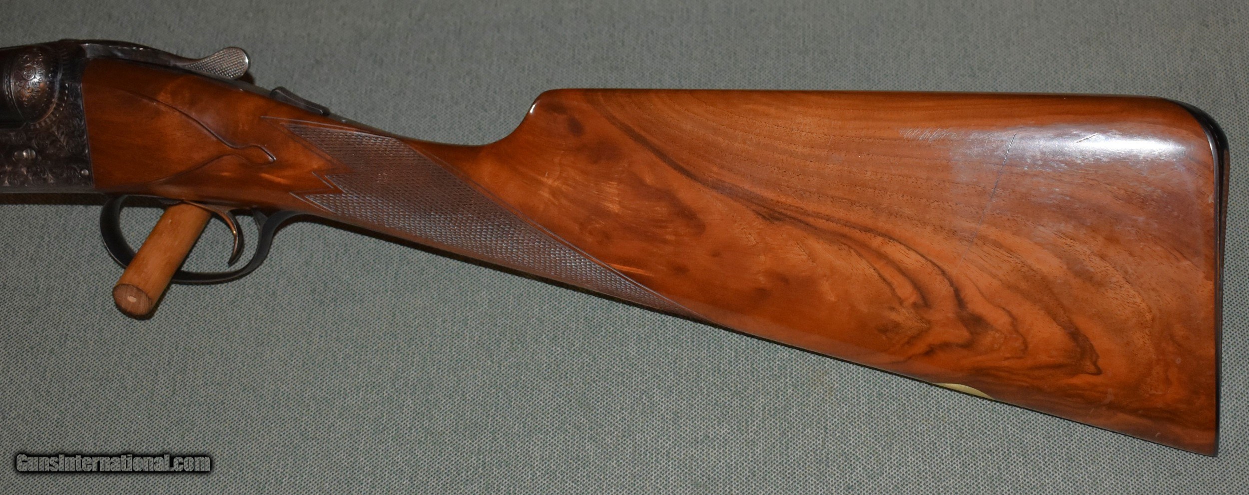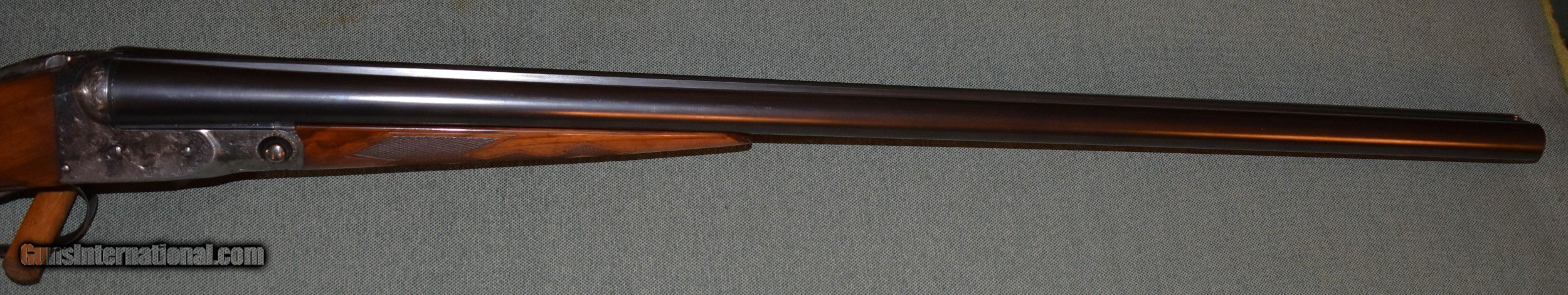 Description: Parker Reproduction 12 gauge DHE "Steel Shot Special". This gun was in the first shipment of SS marked guns shipped to Paul Jaegers in Grand Jusction Tn. It has 28" barrels choked IC (.006") and Lt modified (.016"). It has 3" chambers,straight grip stock,single selective trigger,ejectors,a skeleton buttplate,and a splinter forend. The gun is in excellent original conditon retaining 60% of the case colors,99% of the barrel blue,and 98%of the stock finish. The gun comes in the factory case with canvass cover,manual,warranty card,and snap caps. This is one of only 360 SS marked steel shot specials produced. Specially designed to shot steel shot mod and full and lead shot IC and mod. A great all around gun for ducks,pheasants,upland birds,or clays. I personally have the first one off of the line and have shot just about everything with it. It has shot ducks,geese,quail,turkeys,and clays. They are great guns and good values. SOLD Shotgun Gauge: 12 Gauge Manufacturer: Parker Reproduction Model: Steel Shot Special Serial Number: 12SS-00080 Barrel Length: 28 Chambers: 3 Ejectors: Yes Condition: excellent Metal Condition: excellent Wood Condition: excellent Bore Condition: mint Action: Double Barrel Triggers: Single Selective Butt Pad: Skeleton Bittplate Manufacture Date: 1985 Choke Left: modified Choke Right: improved Engraving: DHE Case: Factory Case |