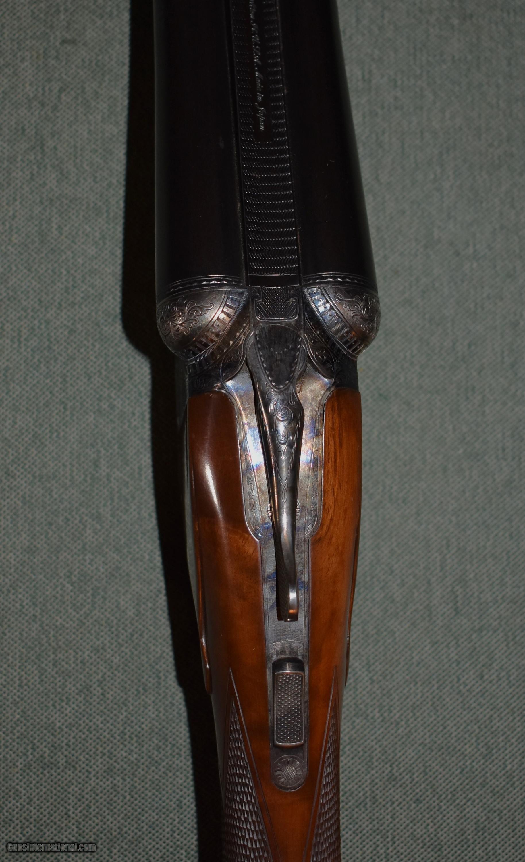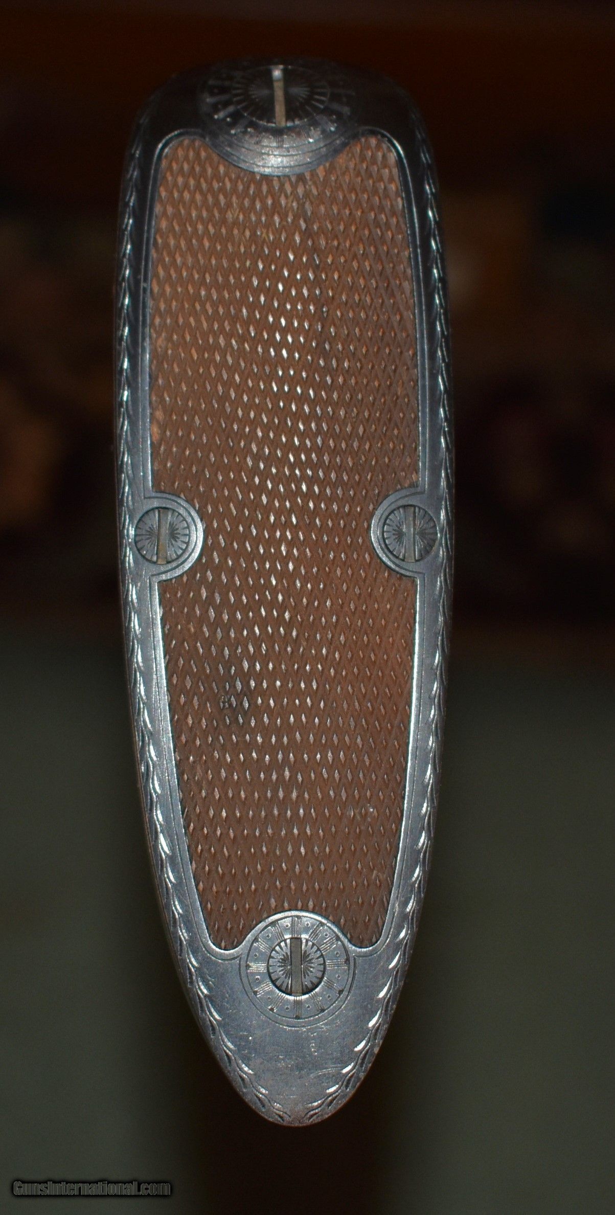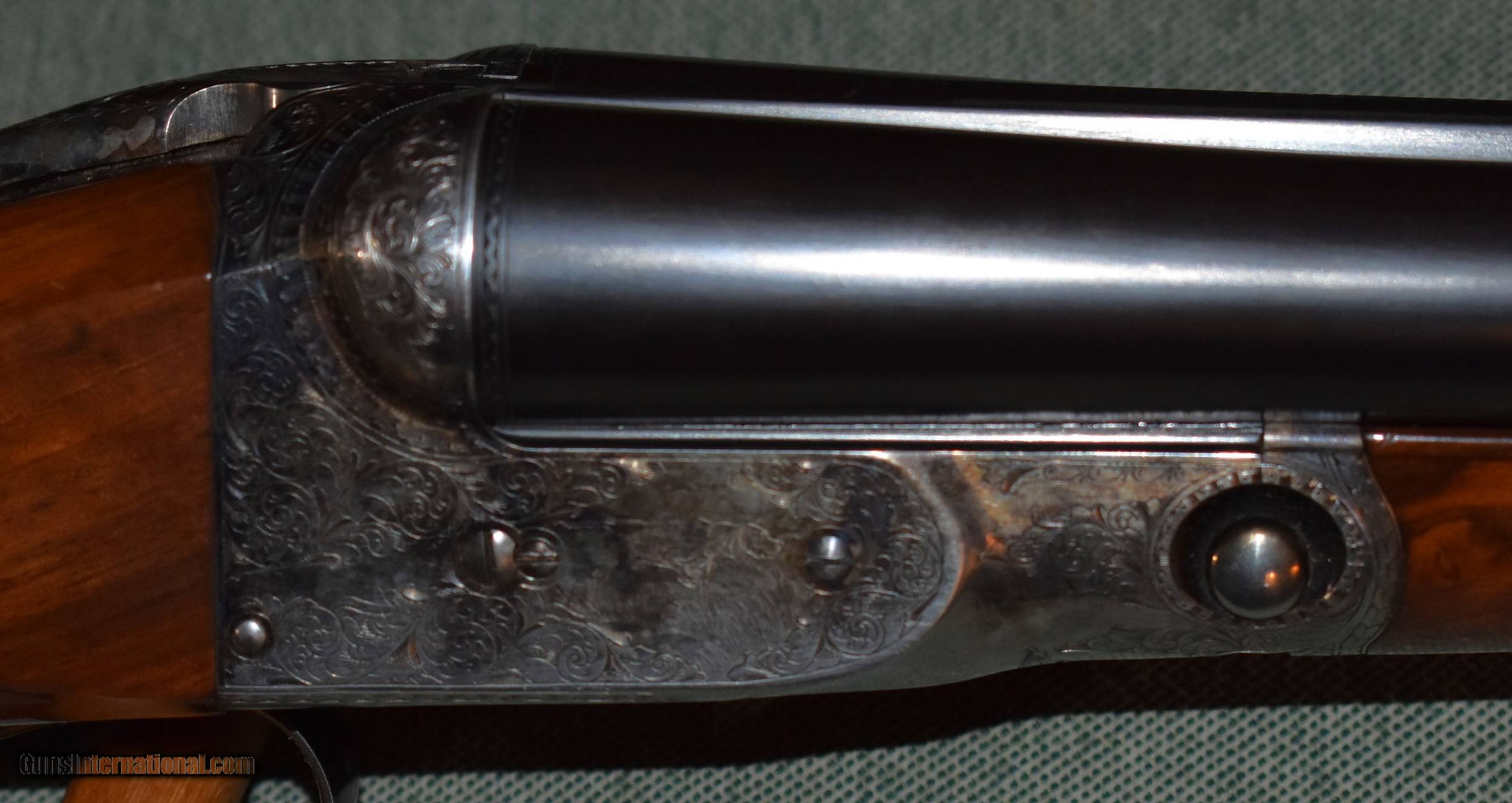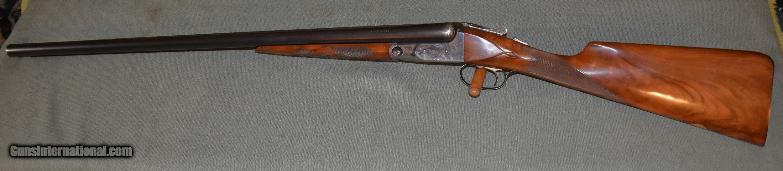 Description: Parker Reproduction 12 gauge DHE "Steel Shot Special". This gun was in the first shipment of SS marked guns shipped to Paul Jaegers in Grand Jusction Tn. It has 28" barrels choked IC (.006") and Lt modified (.016"). It has 3" chambers,straight grip stock,single selective trigger,ejectors,a skeleton buttplate,and a splinter forend. The gun is in excellent original conditon retaining 60% of the case colors,99% of the barrel blue,and 98%of the stock finish. The gun comes in the factory case with canvass cover,manual,warranty card,and snap caps. This is one of only 360 SS marked steel shot specials produced. Specially designed to shot steel shot mod and full and lead shot IC and mod. A great all around gun for ducks,pheasants,upland birds,or clays. I personally have the first one off of the line and have shot just about everything with it. It has shot ducks,geese,quail,turkeys,and clays. They are great guns and good values. SOLD Shotgun Gauge: 12 Gauge Manufacturer: Parker Reproduction Model: Steel Shot Special Serial Number: 12SS-00080 Barrel Length: 28 Chambers: 3 Ejectors: Yes Condition: excellent Metal Condition: excellent Wood Condition: excellent Bore Condition: mint Action: Double Barrel Triggers: Single Selective Butt Pad: Skeleton Bittplate Manufacture Date: 1985 Choke Left: modified Choke Right: improved Engraving: DHE Case: Factory Case |