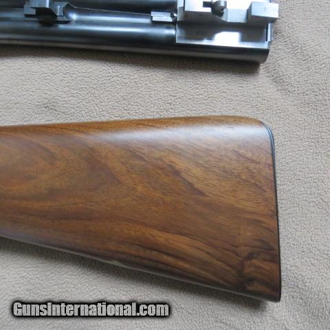 Description: Offered for sale is an exceptional Parker Reproduction 20 ga. with an extra set of 16ga. barrels with double triggers. The barrels are 20ga. 26" IC/M, and 16ga. 28" IC/IC. This sweet little gun is absolutely mint in case with all accessories including the Parker repro oil bottle and wooden cleaning rods. It has been fired very little, and is as new. I can not see a mark on this one anywhere either. The gun was an original 20ga. that was also fitted with 16ga. Galazan barrels that are numbered to the gun as well. The original owner paid over $2100. for the 16ga. barrels and the cost to have them fitted. An exceptional set that is very scarce, and the condition would be impossible to improve upon- Don't let this one get away- THANKS SOLD Model: Parker Reproduction Chambers: 2 3/4 Ejectors: Yes Condition: Mint Metal Condition: 99% Wood Condition: 99% Bore Condition: Mint Barrels: 26"M/IC 28"IC/IC Triggers: Double Gauge Info: 20ga./16ga. LOP: 14 1/2 Item Location: Luray, VA. |