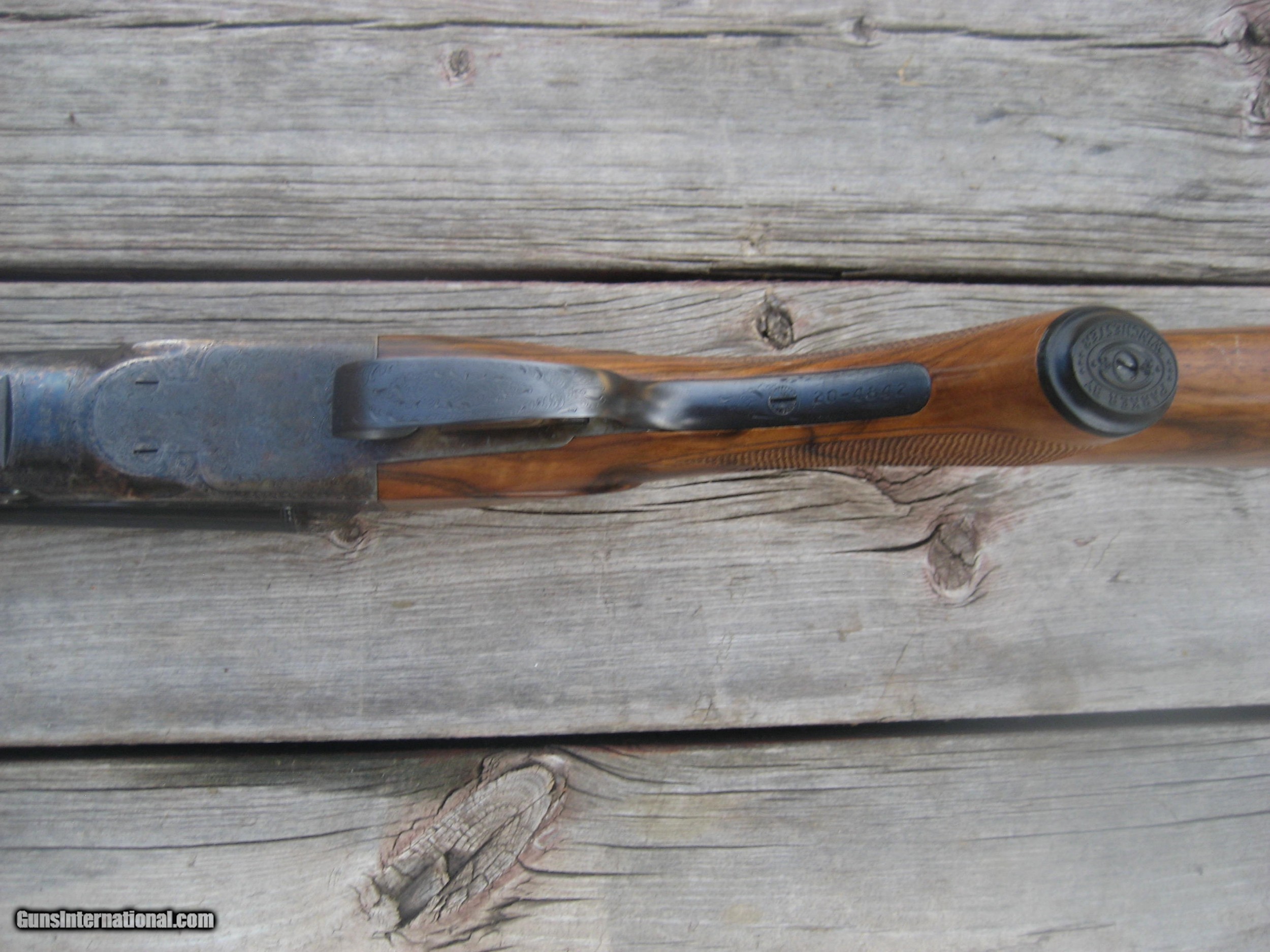 Description: Exceptional wood with hard to find beavertail forearm, pistol grip and single trigger. Excellent condition with its original case. Color case hardening in excellent condition as well. This gun has less than three boxes of shells through it and is TIGHT! I am selling this gun fore a friend. Shipping $175.00 insured. THE PRICE IS FIRM PMO OR CERTIFIED FUNDS ONLY PLEASE. SOLD Manufacturer: Winchester Model: DHE Condition: Excellent + Metal Condition: Excellent + Wood Condition: Excellent + Bore Condition: Like new Barrels: 26 Inches Gauge Info: 20 Gauge LOP: 14 1/4 Weight: 6 pounds 15 ounces Choke Left: Modified Choke Right: Cylinder Engraving: Yes |